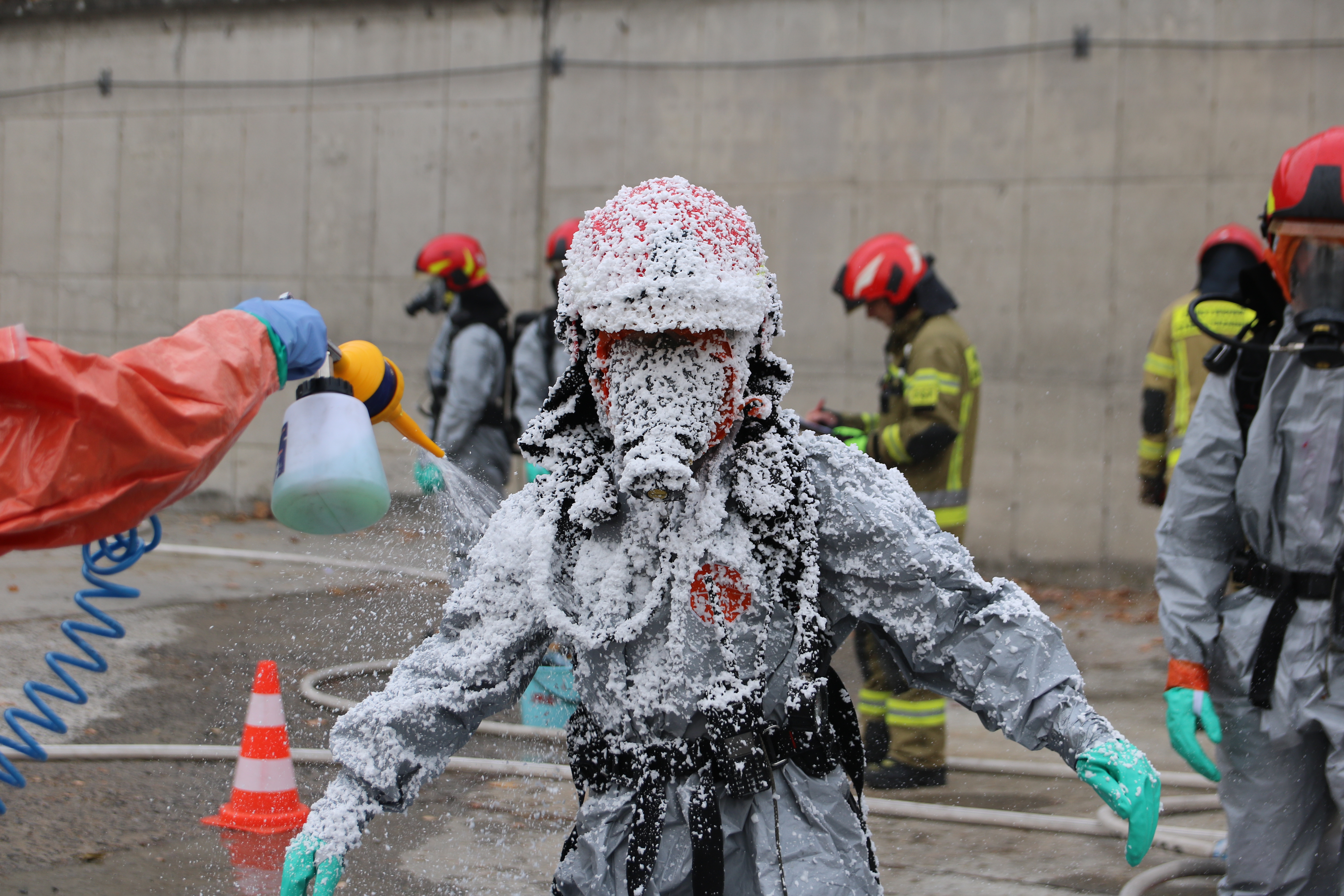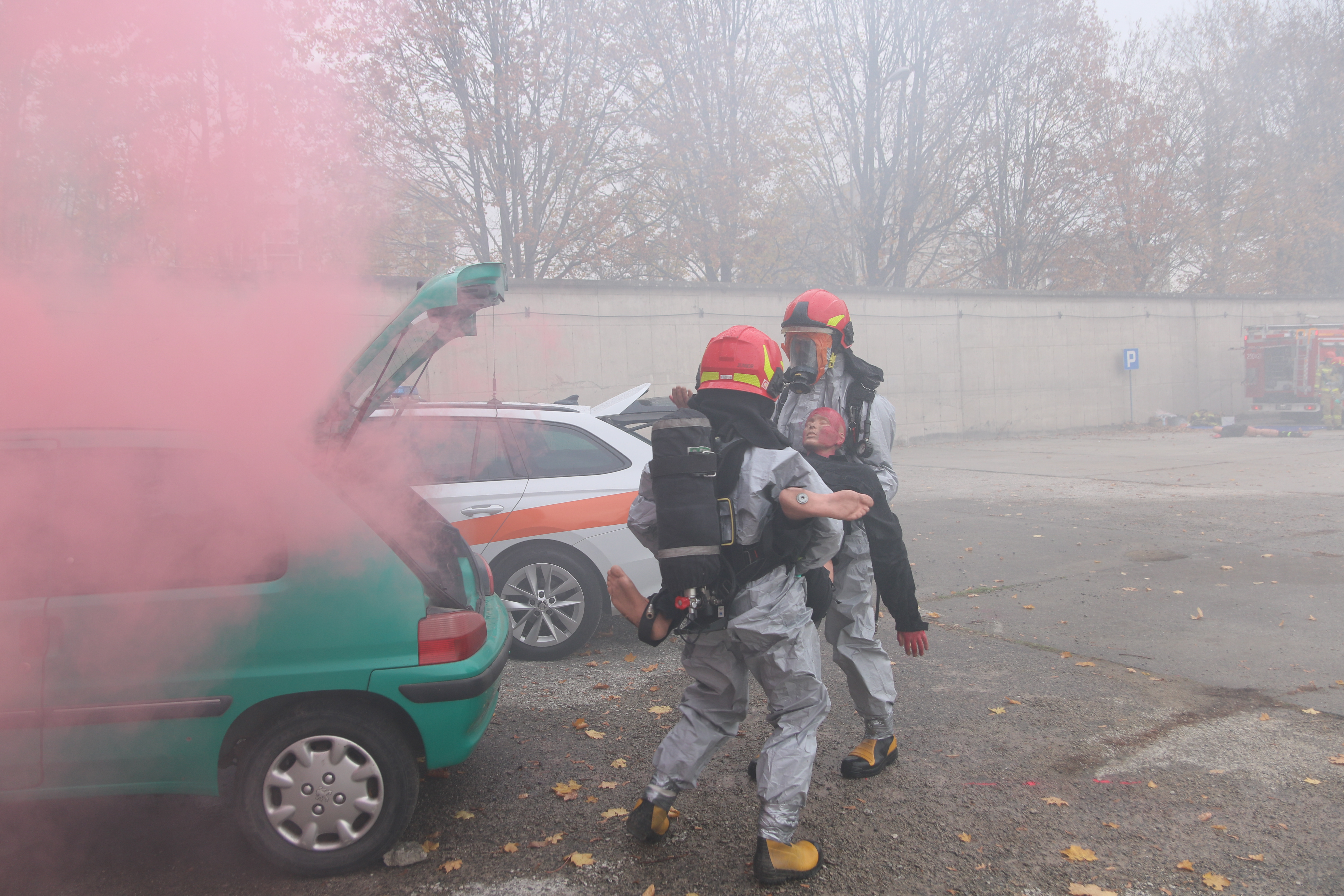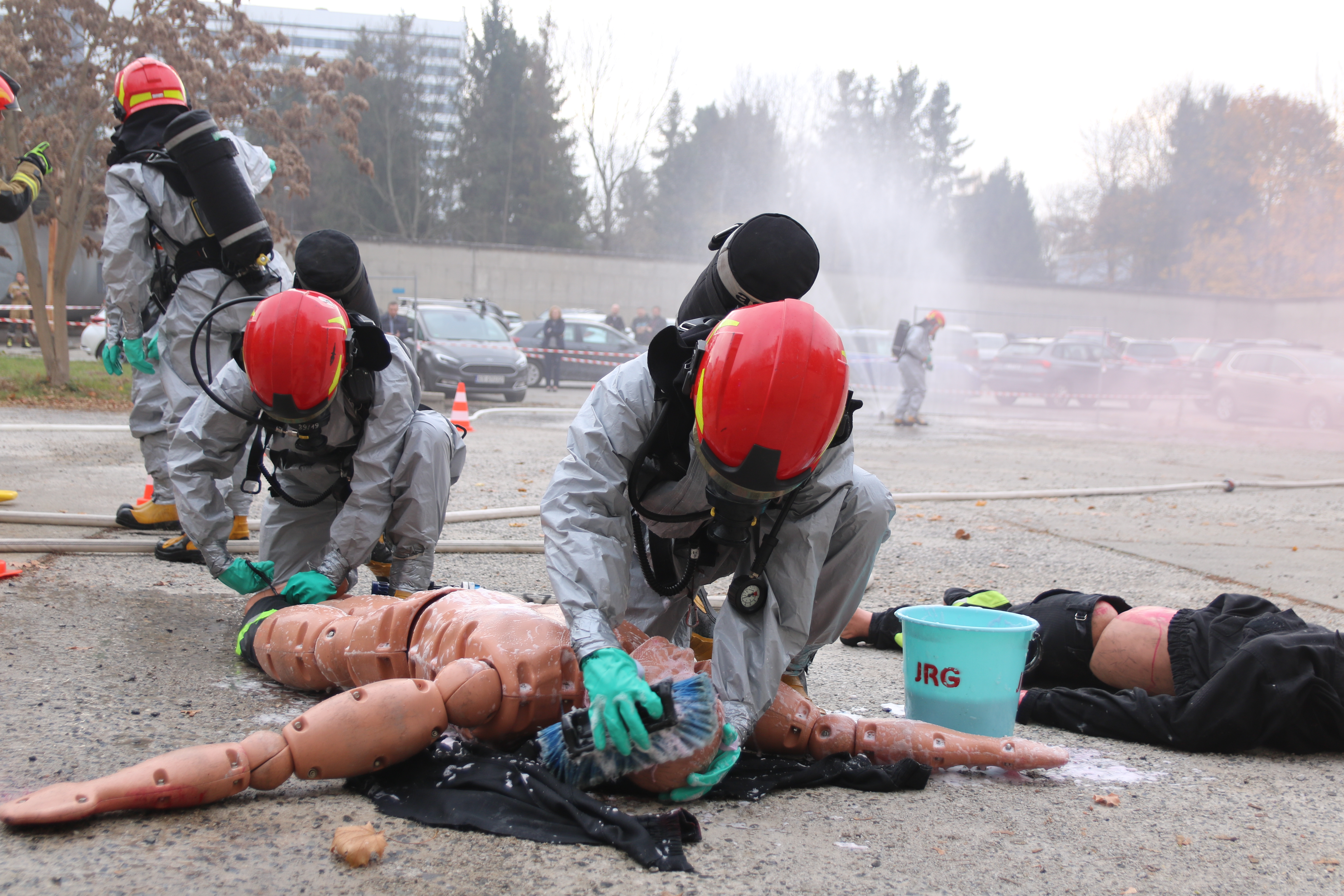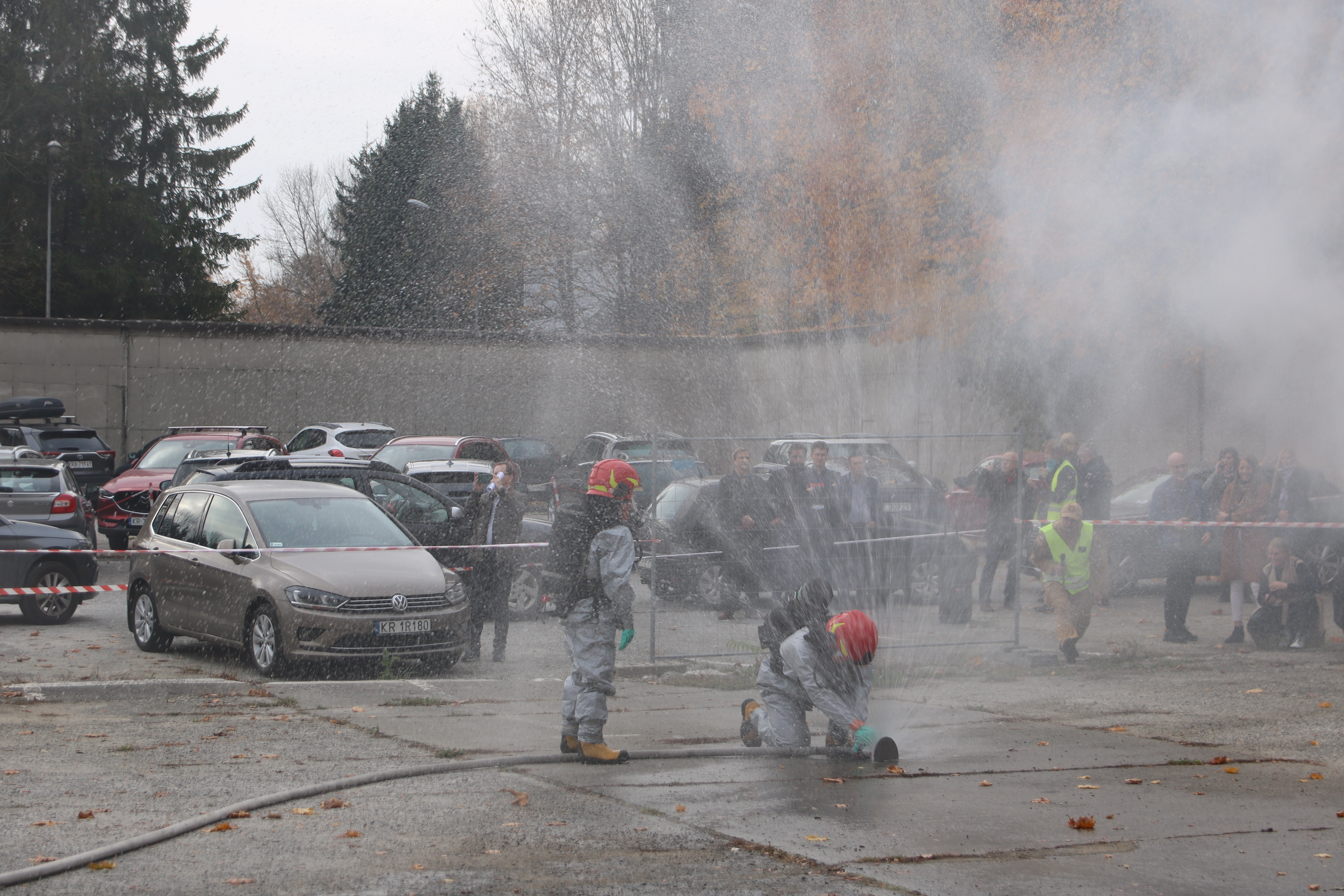 W ćwiczeniach udział wzięła szkolna jednostka ratowniczo gaśnicza wraz z zadysponowanymi przez stanowisko kierowania zastępami z Komendy Miejskiej PSP w Krakowie w tym specjalistycznej Grupy Ratownictwa Chemiczno Ekologicznego z JRG6 .