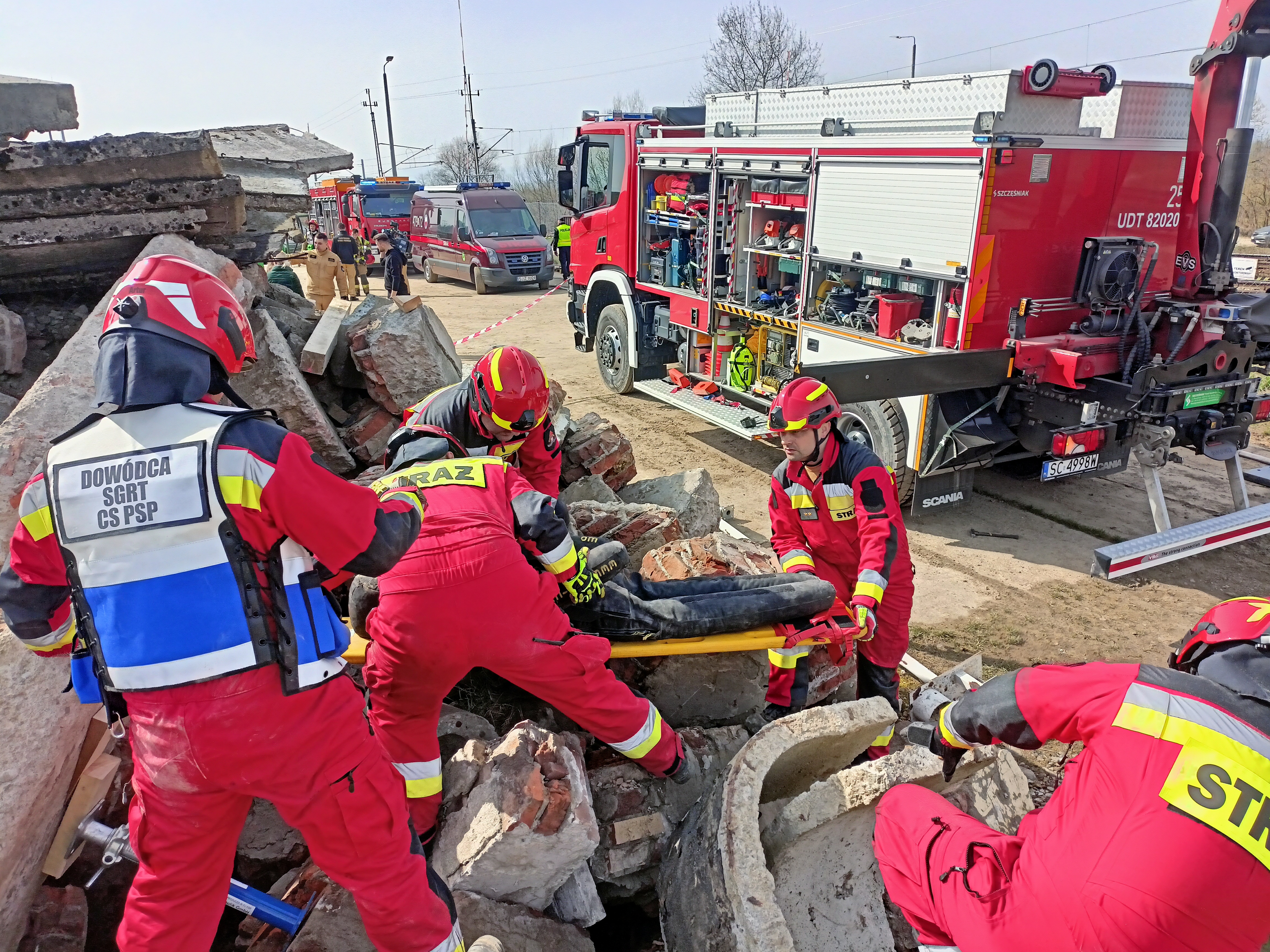 W ćwiczeniach udział brali także funkcjonariusze Wydziału Szkolenia Specjalistycznych Grup Ratowniczych wchodzący w skład Specjalistycznej Grupy Poszukiwawczo Ratowniczej „Nowy Sącz”, psy ratownicze oraz sprzęt specjalistyczny. Część ratowników SGPR „Nowy Sącz” na miejsce poszczególnych epizodów była przetransportowana przy użyciu śmigłowców. W scenariuszu ćwiczeń o bardzo rozbudowanych epizodach w szerokiej mierze został wykorzystany cały sprzęt znajdujący się na wyposażeniu grupy poszukiwawczej. Epizod pierwszy w Szczczawie, gdzie znajdowało się nielegalne laboratorium – współpraca kilku Specjalistycznych Grup Ratowniczych PSP oraz współdziałanie z Samodzielnym Pododdziałem Kontrterrorystycznym Policji (SPKP), celem była likwidacja zagrożenia przez SPKP oraz PSP - zabezpieczenie i likwidacja potencjalnego zagrożenia chemicznego, ewakuacja osób poszkodowanych technikami linowymi, wydobycie osób poszkodowanych z pojazdu oraz z częściowo zawalonego budynku. Epizod drugi w kamieniołomie, gdzie uszkodzone podczas wybuchu taśmociągi powodują w budynku technicznym zawalenie się stropów i instalacji, co jest przyczyną zagrożenia zdrowia i życia uwięzionych pracowników. Osoby poszkodowane są w pojazdach oraz budynku. Do działań skierowane Specjalistyczne Grupy Ratownicze, Zespoły Ratownictwa Medycznego, Policja, śmigłowiec oraz bezzałogowe statki powietrzne.