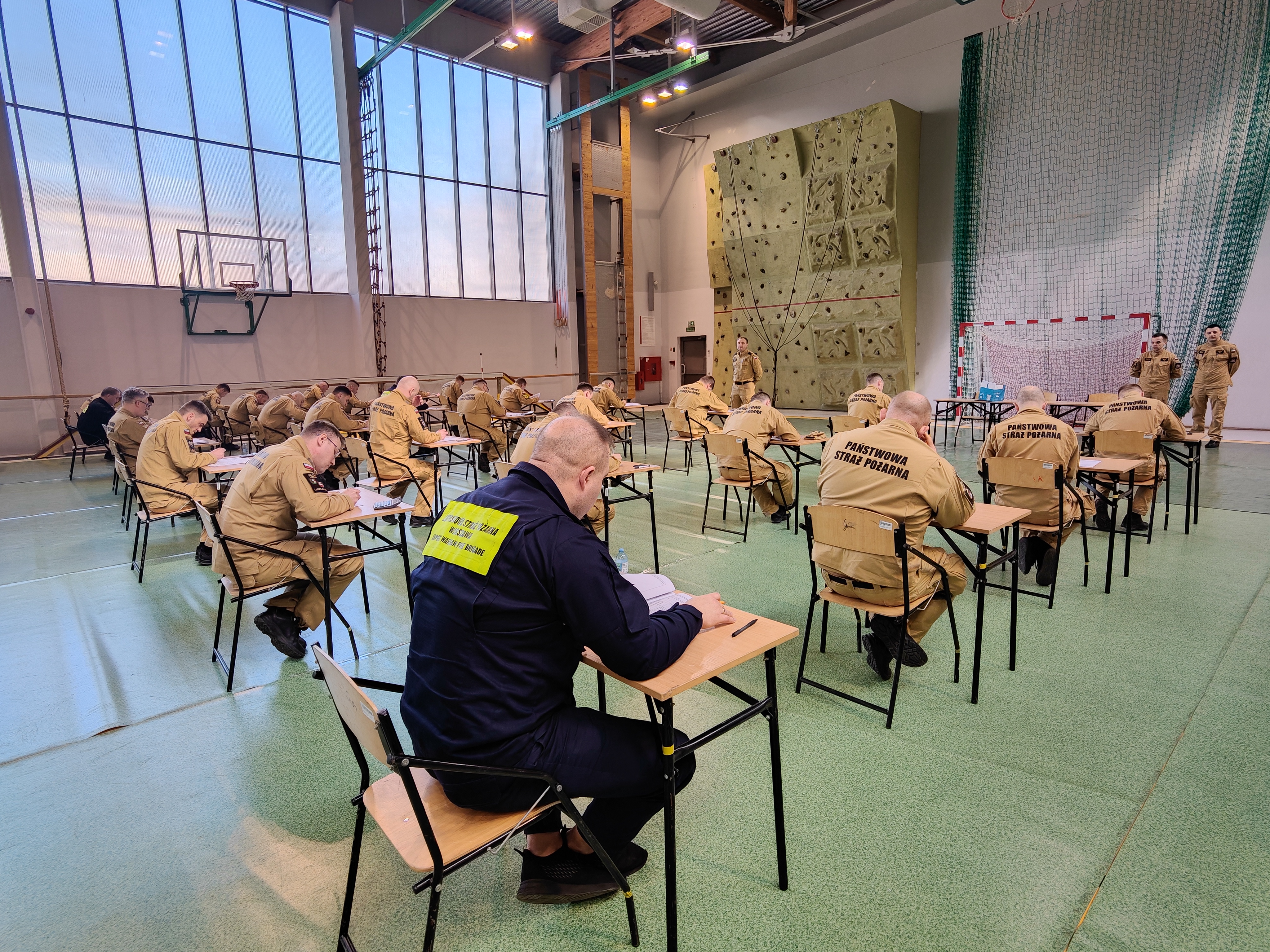Nad prawidłowym przebiegiem przeprowadzonego w hali sportowej egzaminu czuwała powołana przez Komendanta Szkoły komisja, której zgodnie z rozkazem, przewodniczył mł.bryg. Dariusz Ruchała. We wszystkie meandry i sprawy techniczne zdających wtajemniczył Naczelnik Wydziału Kształcenia Zawodowego – mł.bryg. Łukasz Wolak.