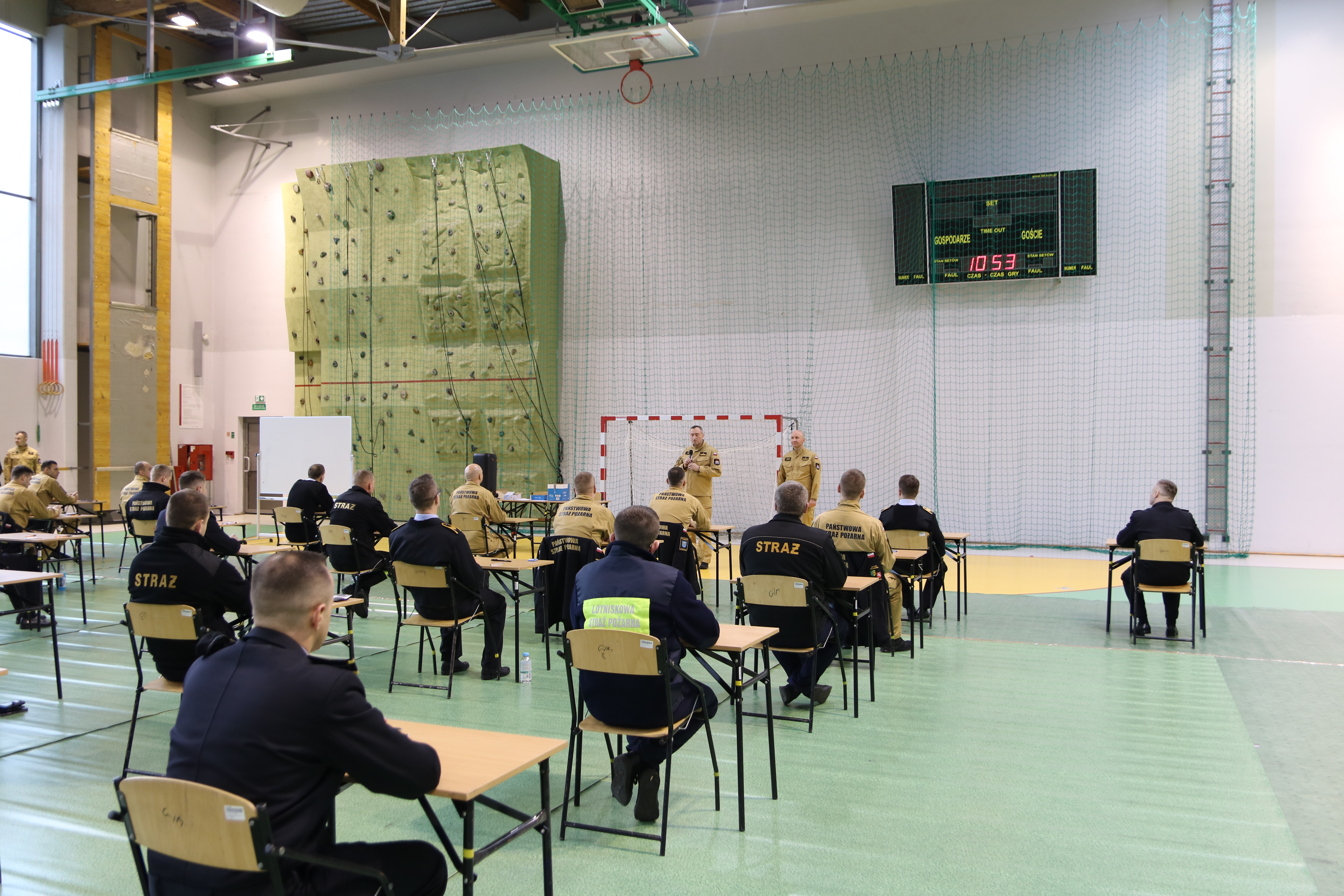 Z uczestnikami egzaminu spotkał się Komendant Szkoły nadbryg. Piotr Filipek, dziękując za wybranie „krakowskiej aspirantki” do zdobycia kolejnych kwalifikacji pożarniczych wszystkim uczestnikom życzył powodzenia, a pracującej pod przewodnictwem Naczelnika Wydziału Kształcenia zawodowego mł.bryg. Łukasza Wolaka komisji, spokojnej pracy.