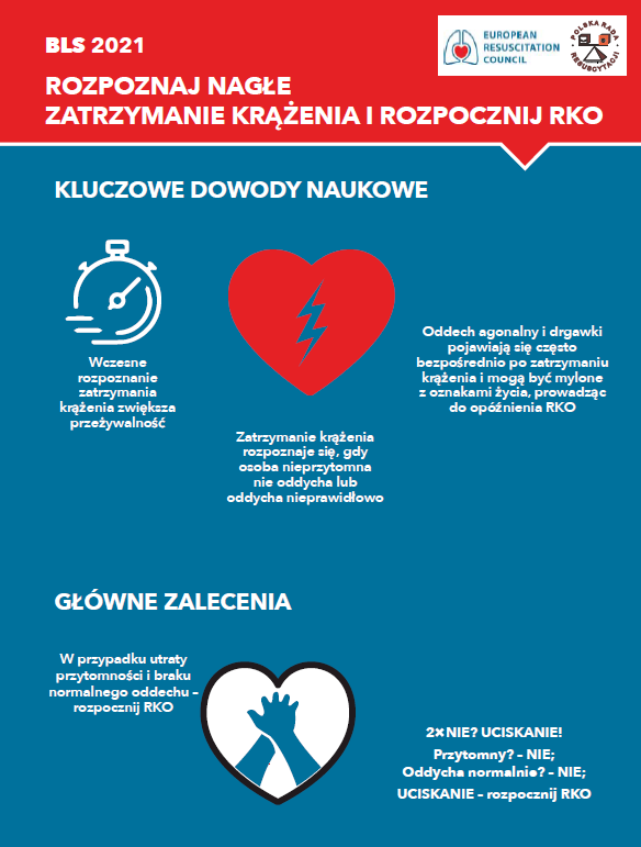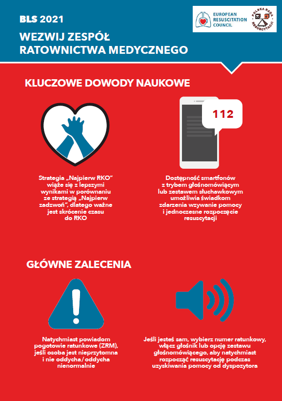 - Wczesne rozpoznanie zagrożenia lub ustania funkcji życiowych i wezwanie pomocy (tel. 112 lub 999).