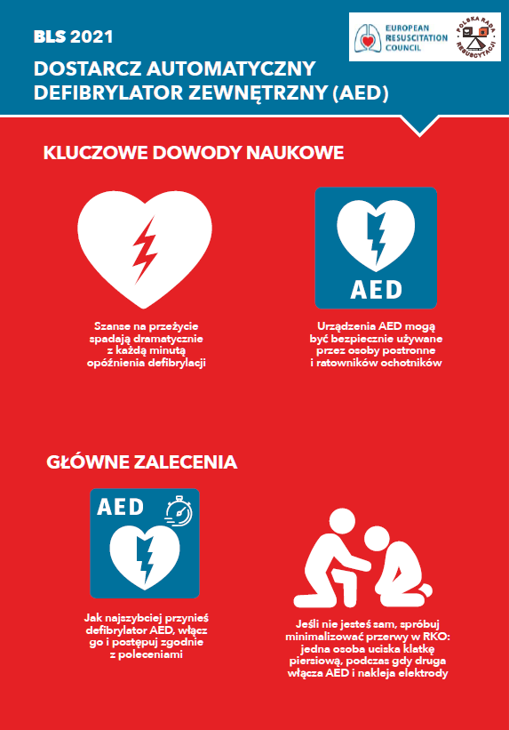 - Zastosowanie już w pierwszych sekundach (minutach) defibrylatora AED.