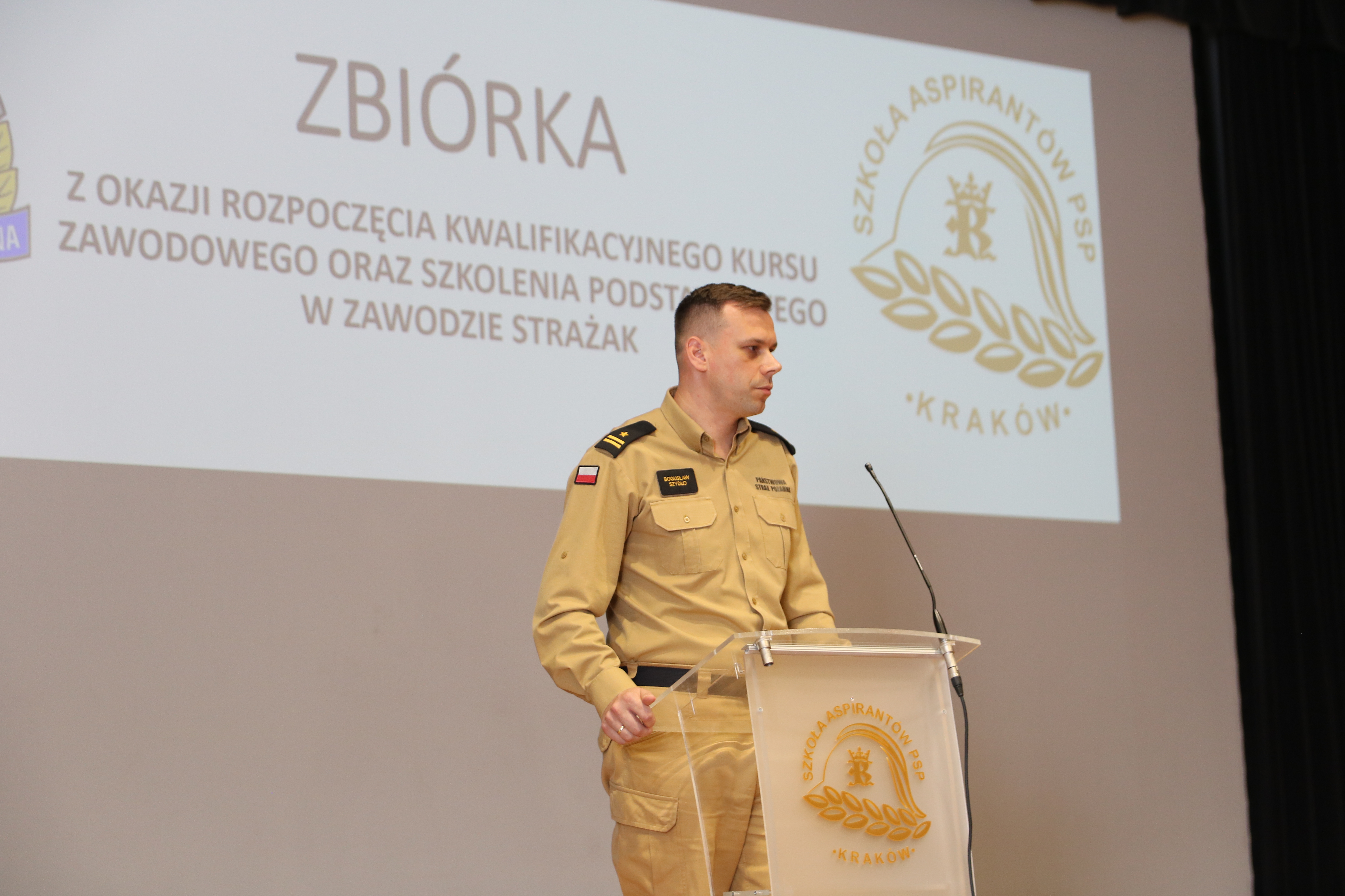 16 września 2024 roku, podczas uroczystej zbiórki przeprowadzonej w szkolnej auli, Zastępca Komendanta Szkoły Aspirantów PSP w Krakowie mł. bryg. Bogusław Szydło wraz z Zastępcą Małopolskiego Komendanta Wojewódzkiego PSP st. bryg. Arkadiuszem Kielinem, przywitali w naszych murach słuchaczy XLII turnusu kwalifikacyjnego kursu zawodowego oraz szkolenia podstawowego w zawodzie strażak – edycja 5/24, które przeprowadzone zostanie na bazie Ośrodka Szkolenia KW PSP w Krakowie. Pierwsza pozaszkolna forma kształcenia dedykowana jest strażakom w służbie stałej (lub osobom zatrudnionym w innych jednostkach ochrony przeciwpożarowej) i daje możliwość zdobycia tytułu technik pożarnictwa, a w następstwie awansu na stopień młodszego aspiranta PSP, druga przeznaczona jest dla osób dopiero rozpoczynających swoją służbę i pożarniczą edukację.