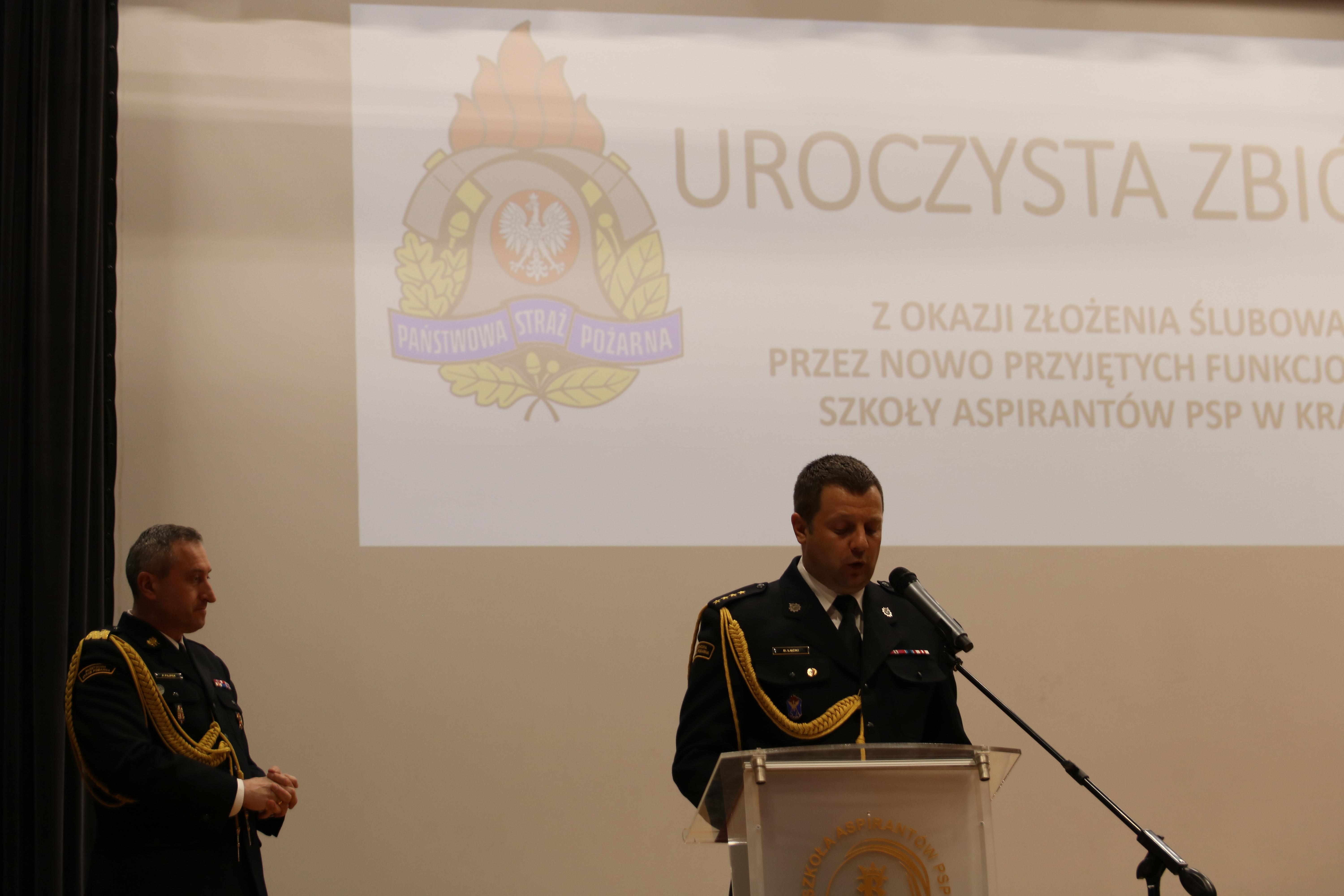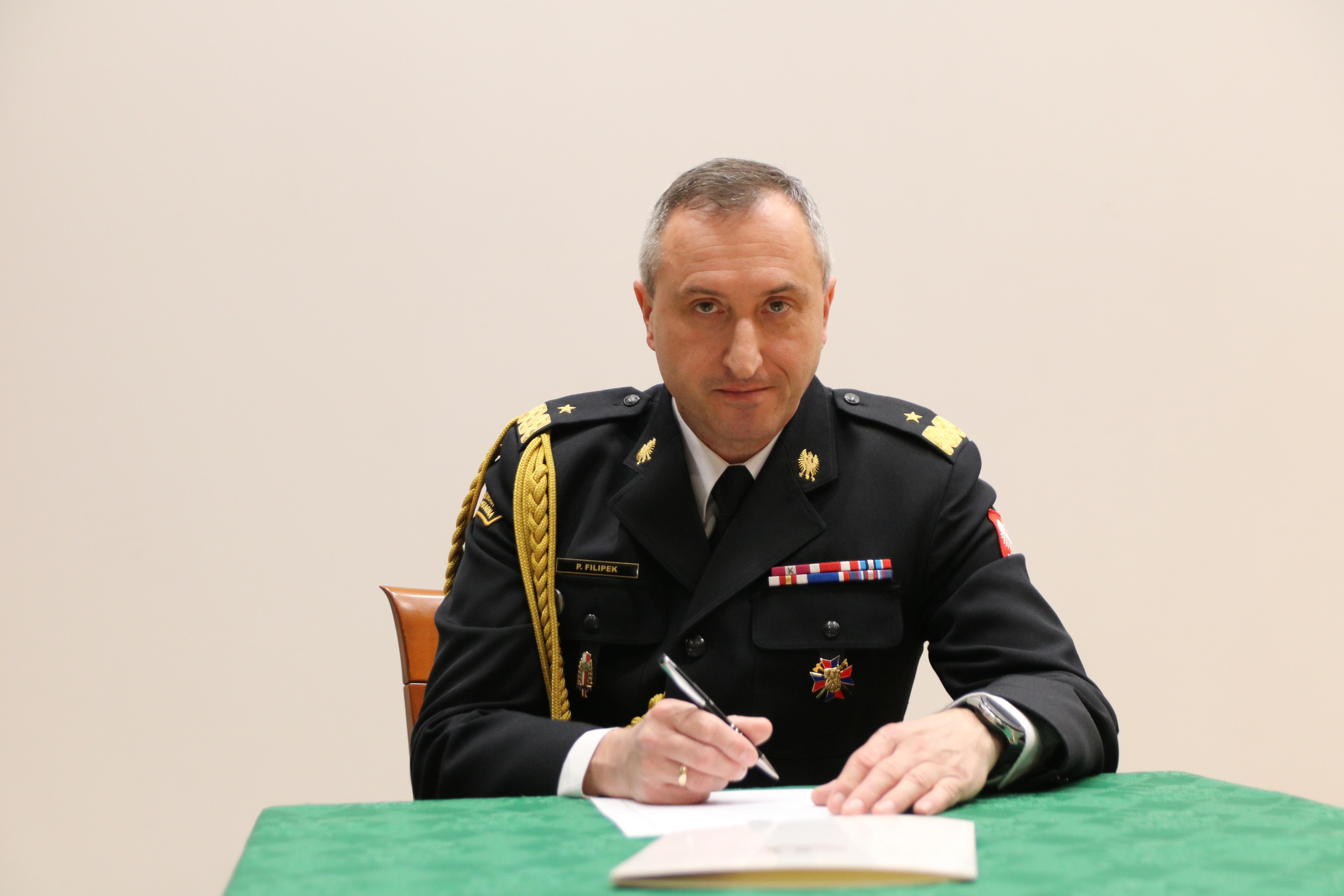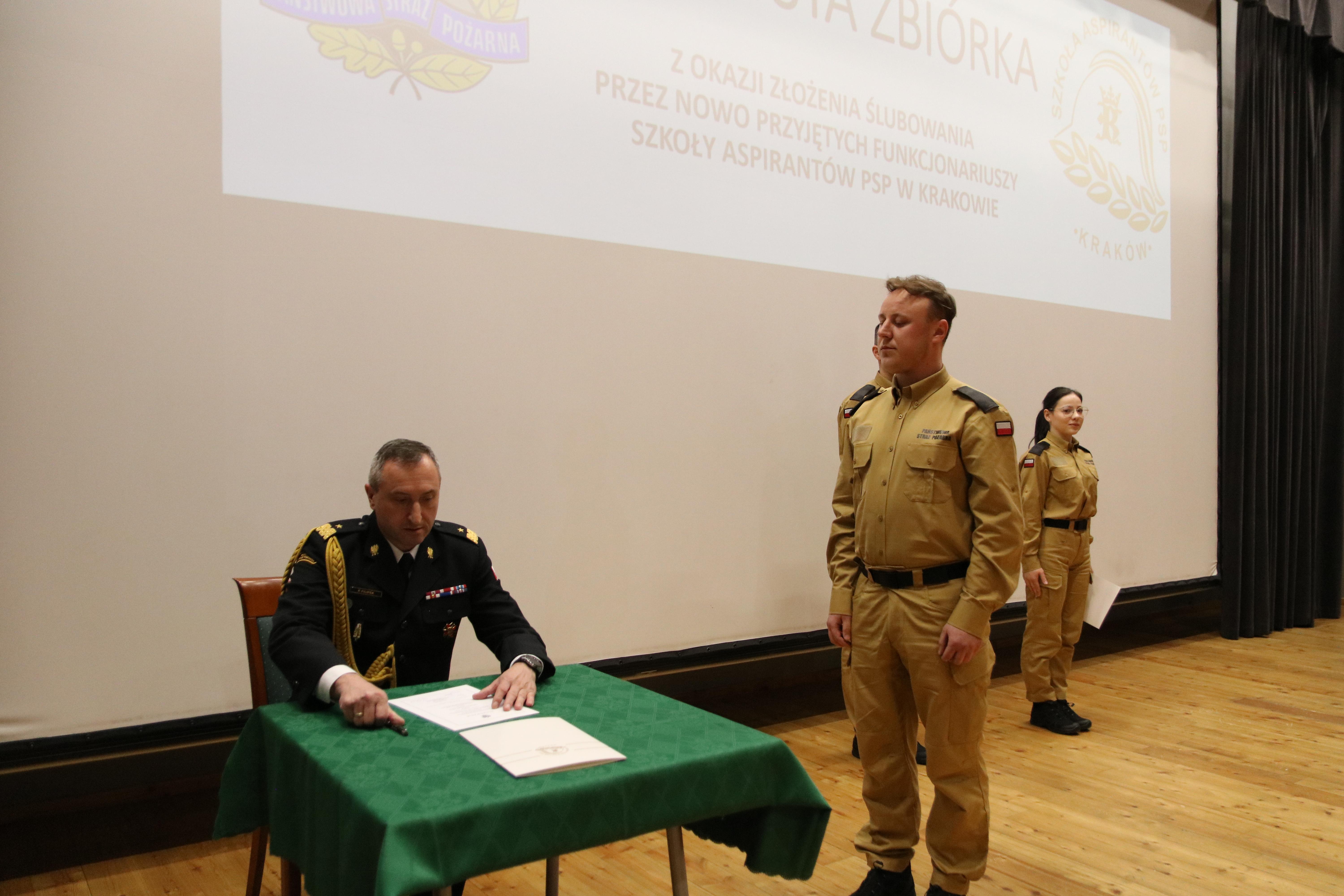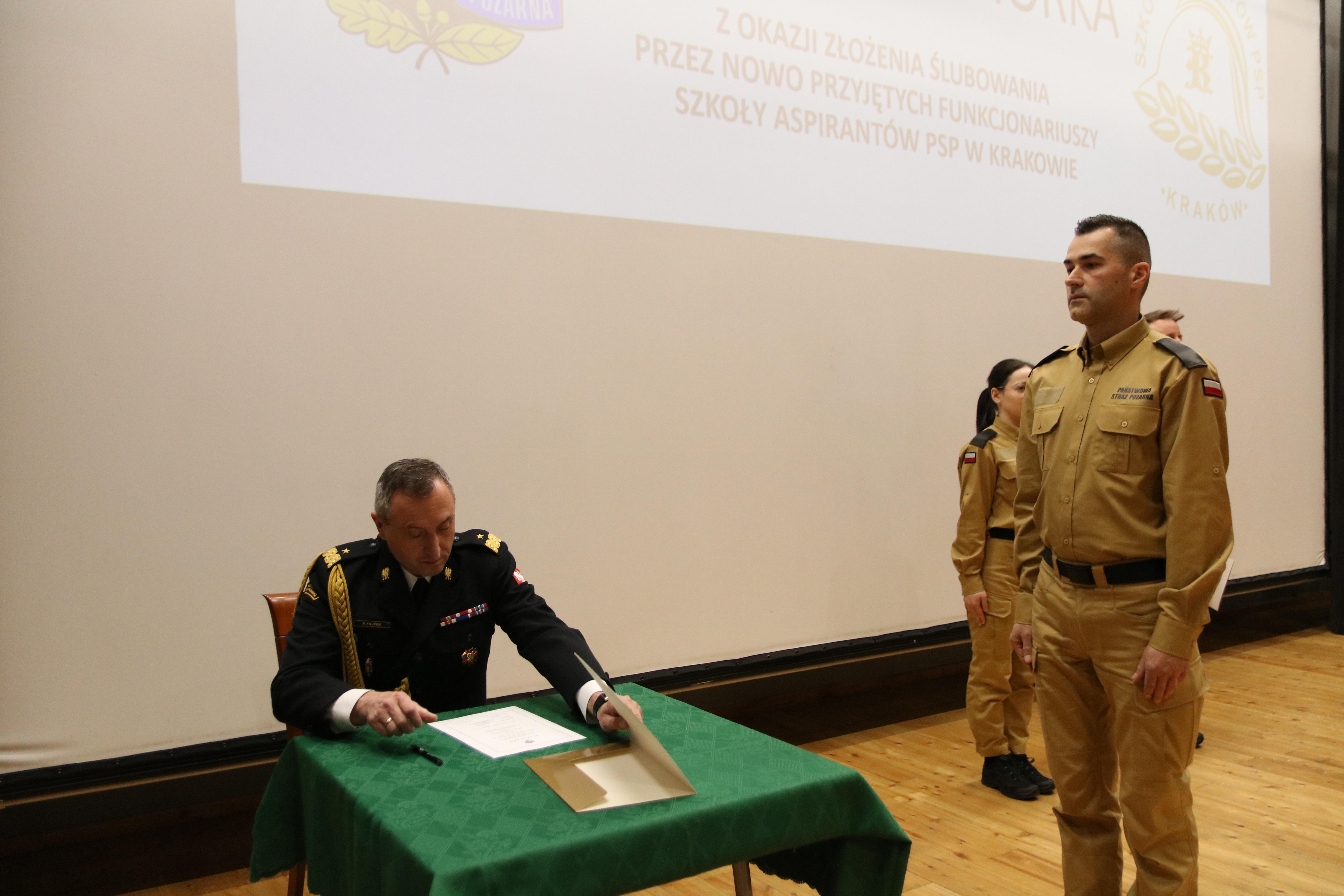 a przyjął i mocą swojego urzędu poświadczył - Komendant Szkoły Aspirantów PSP w Krakowie nadbryg. Piotr Filipek.