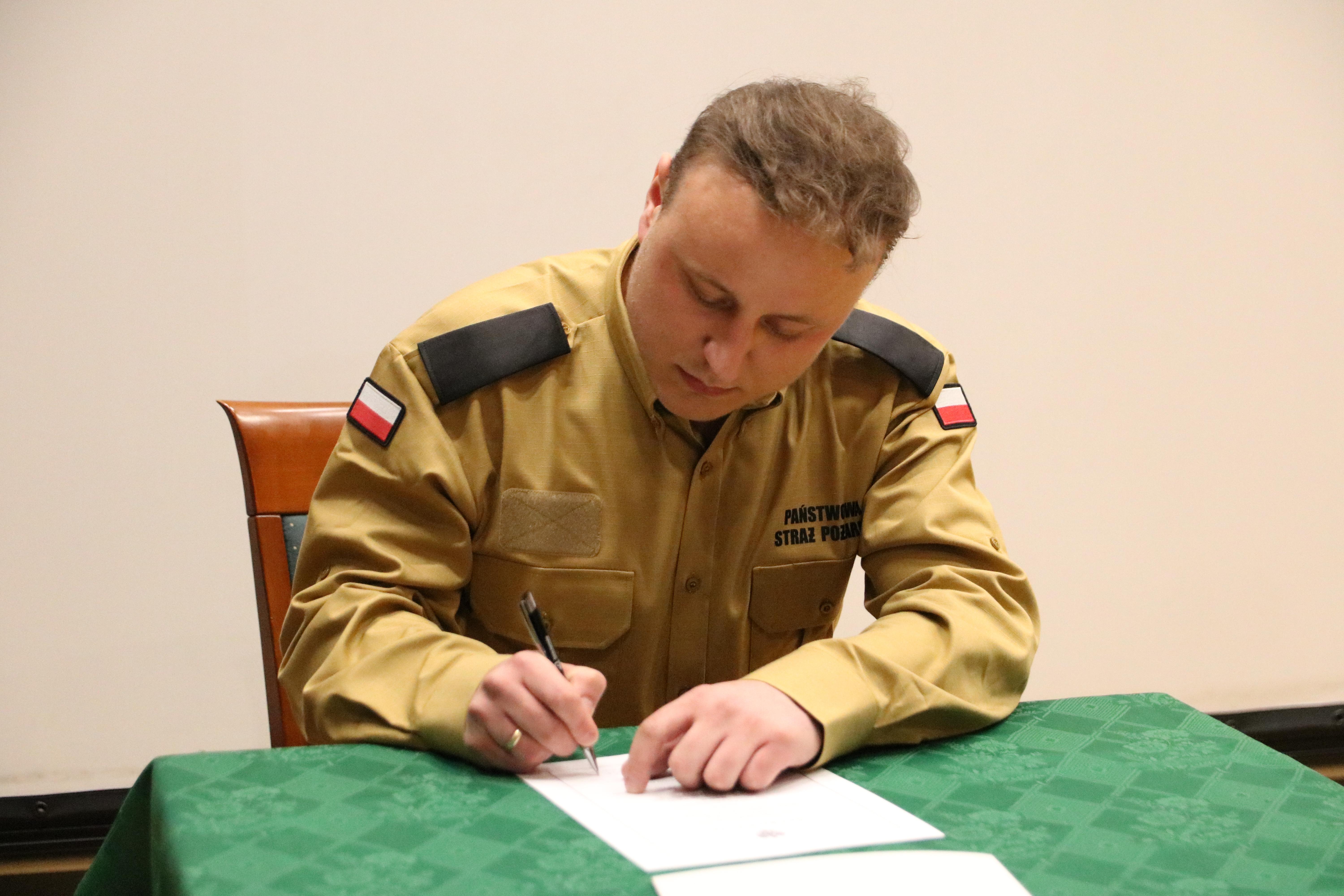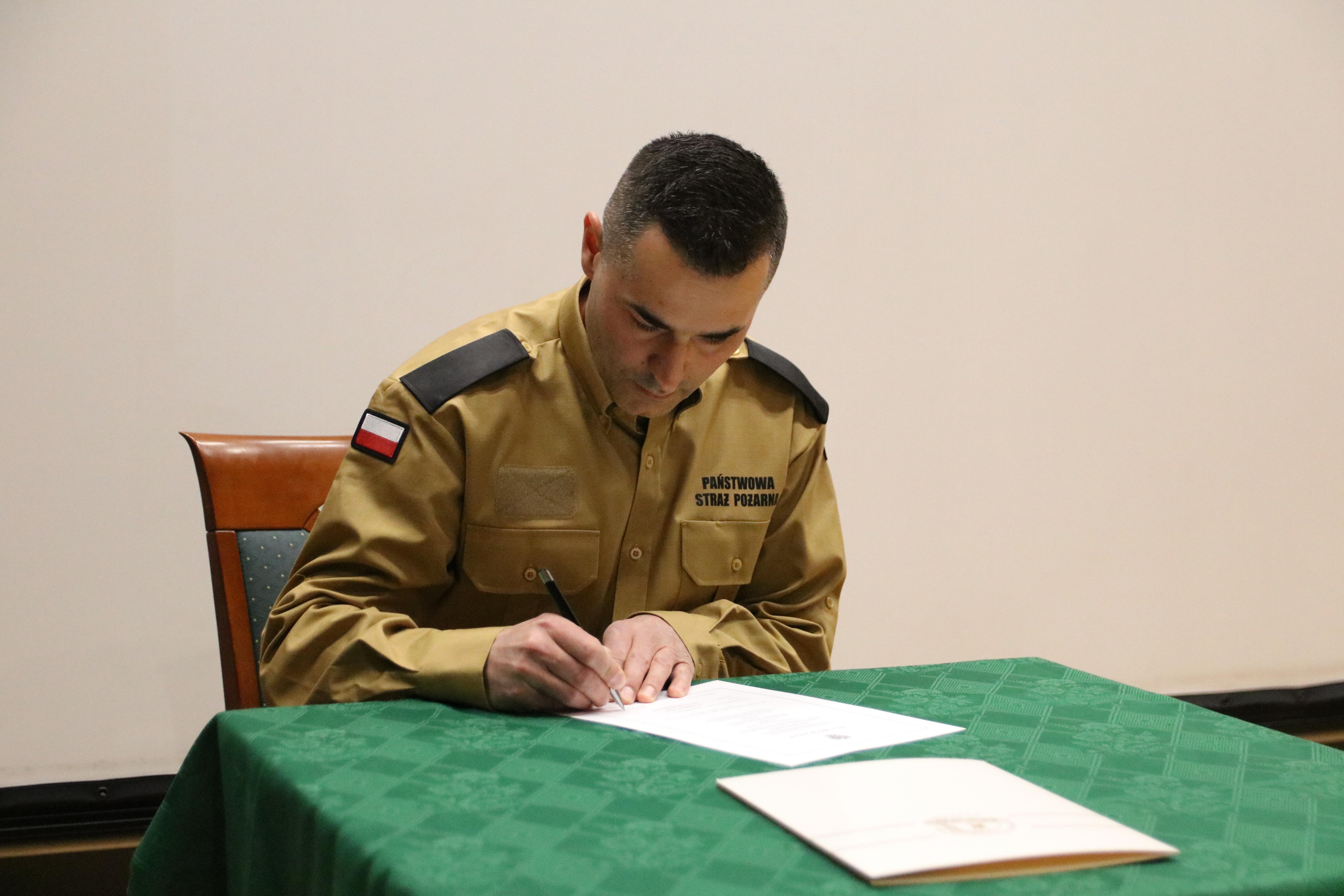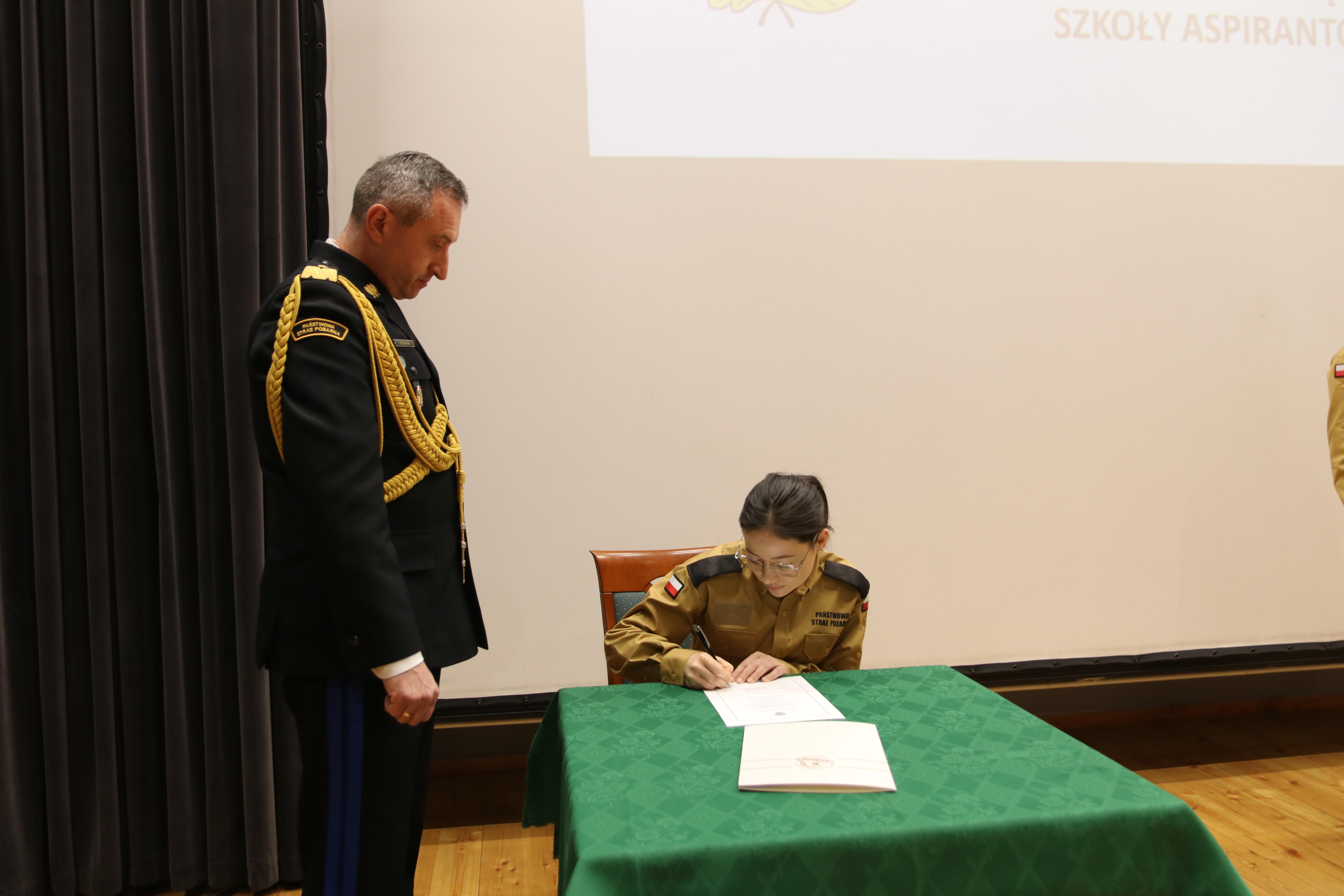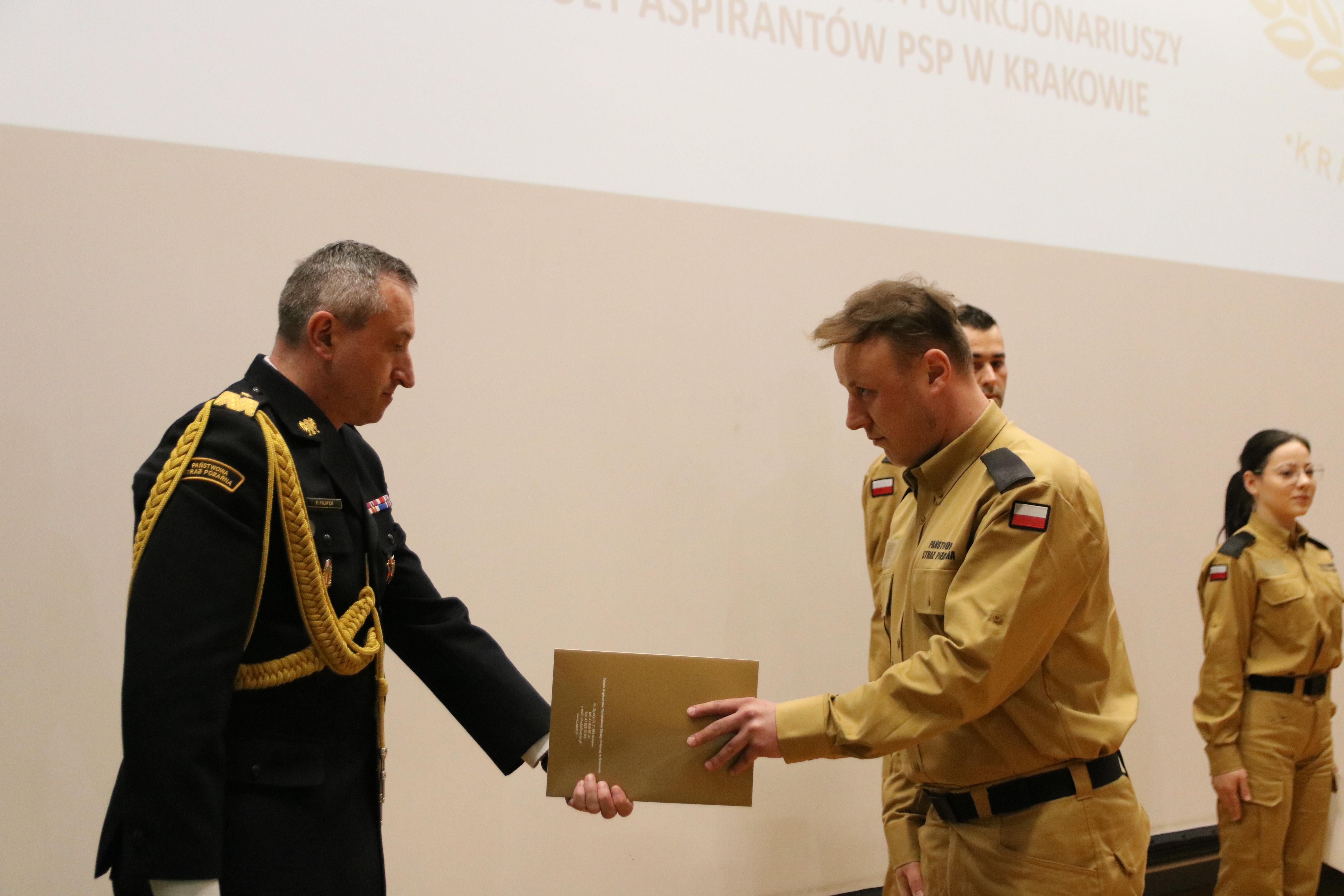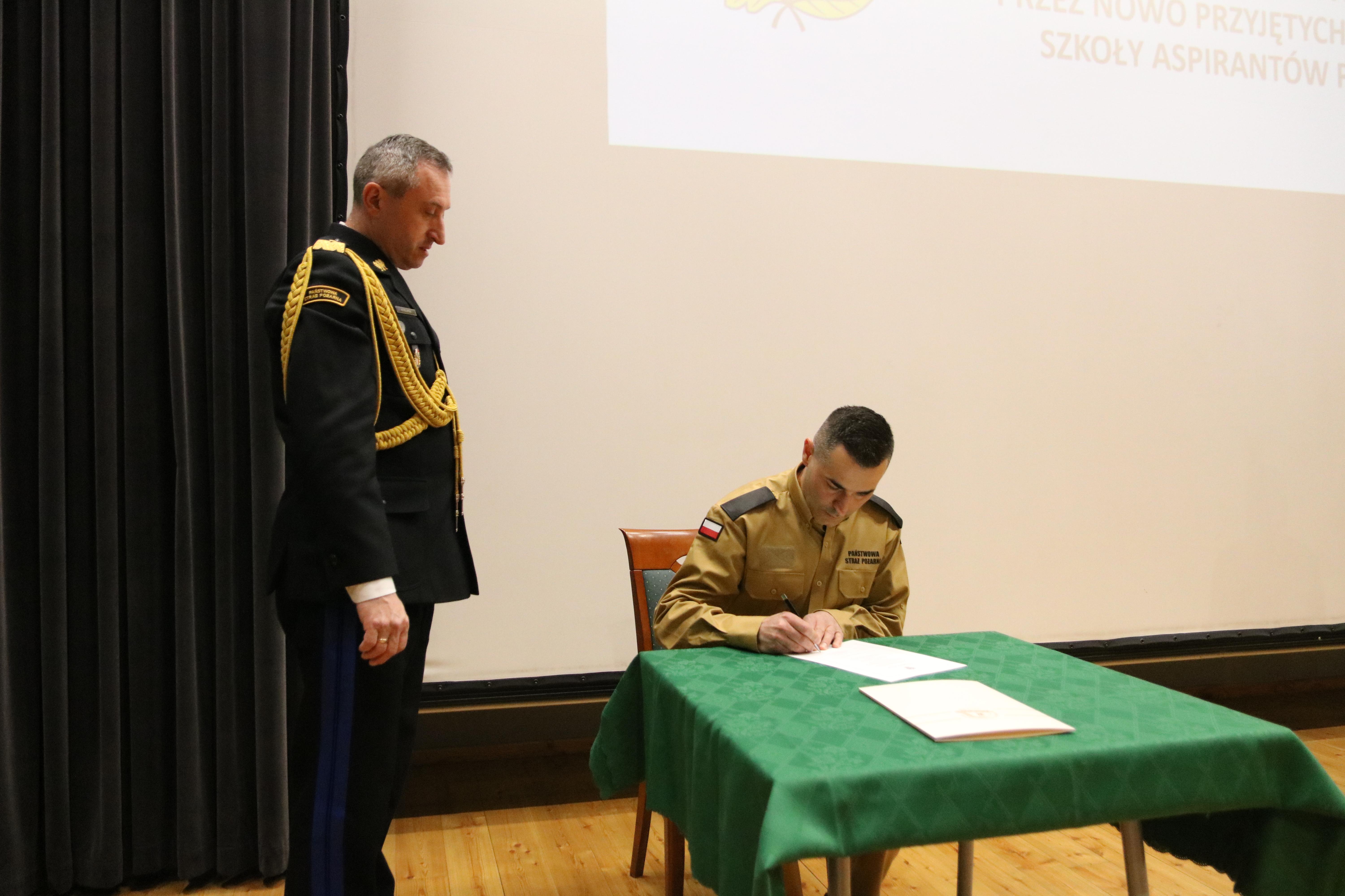 a przyjął i mocą swojego urzędu poświadczył - Komendant Szkoły Aspirantów PSP w Krakowie nadbryg. Piotr Filipek.