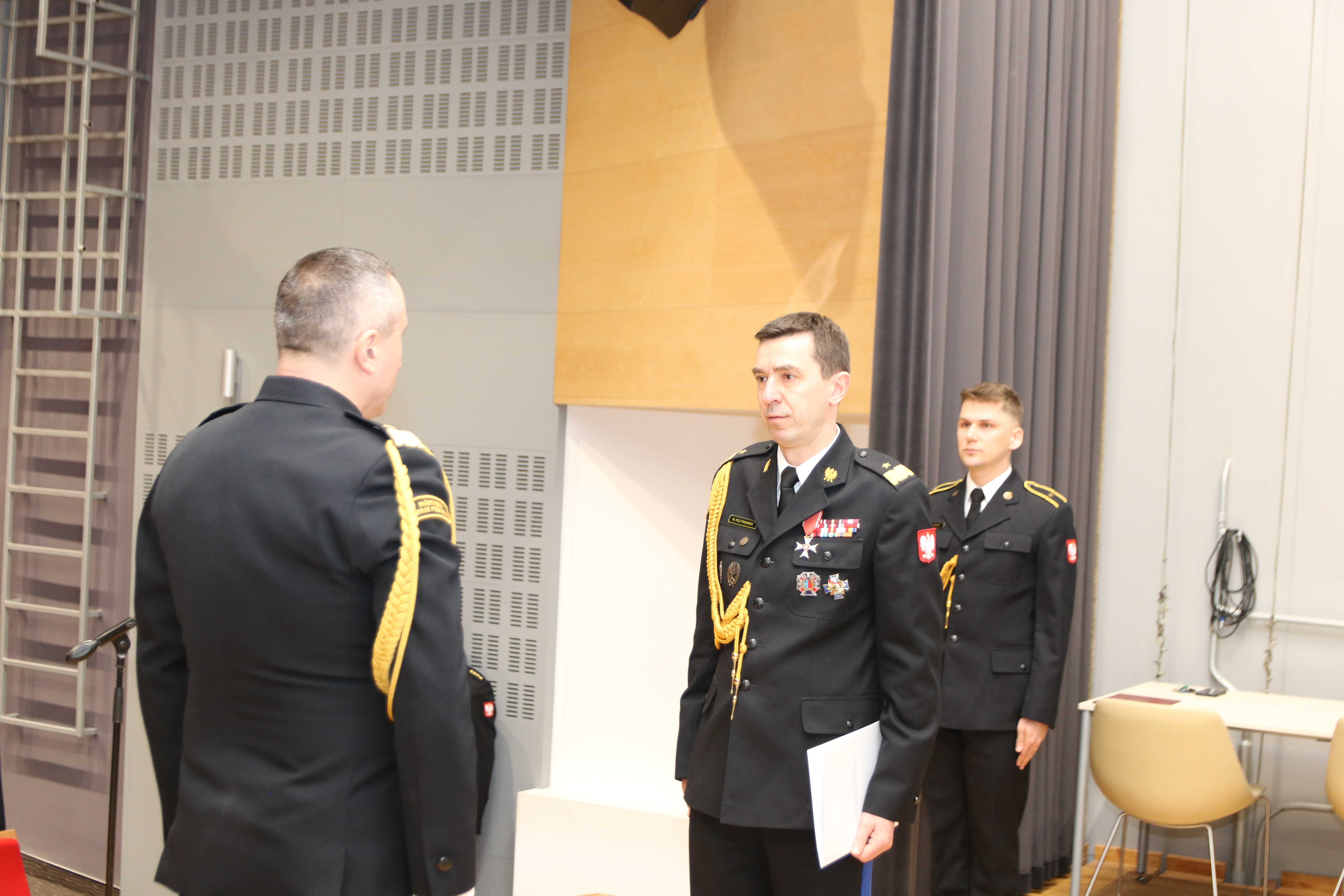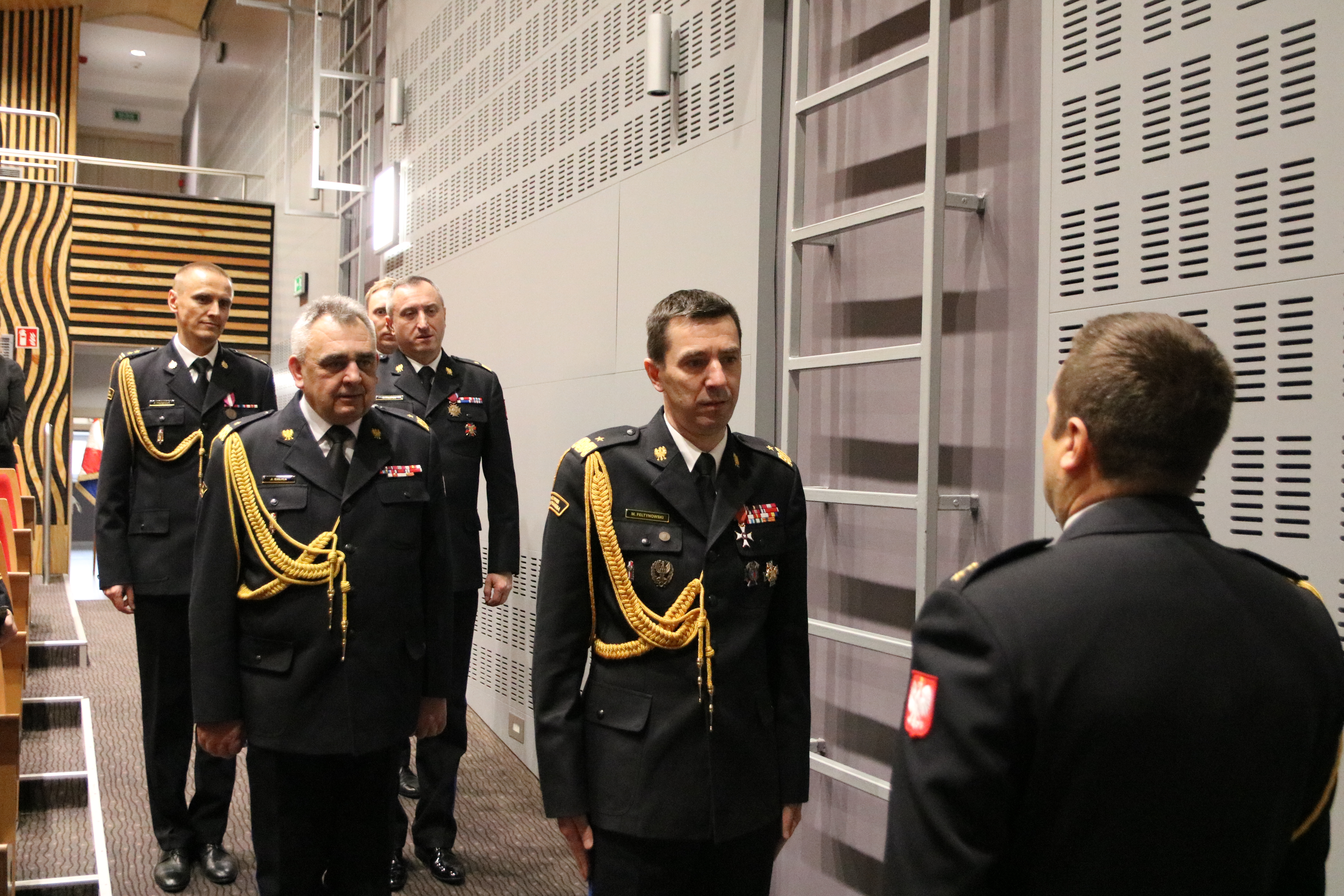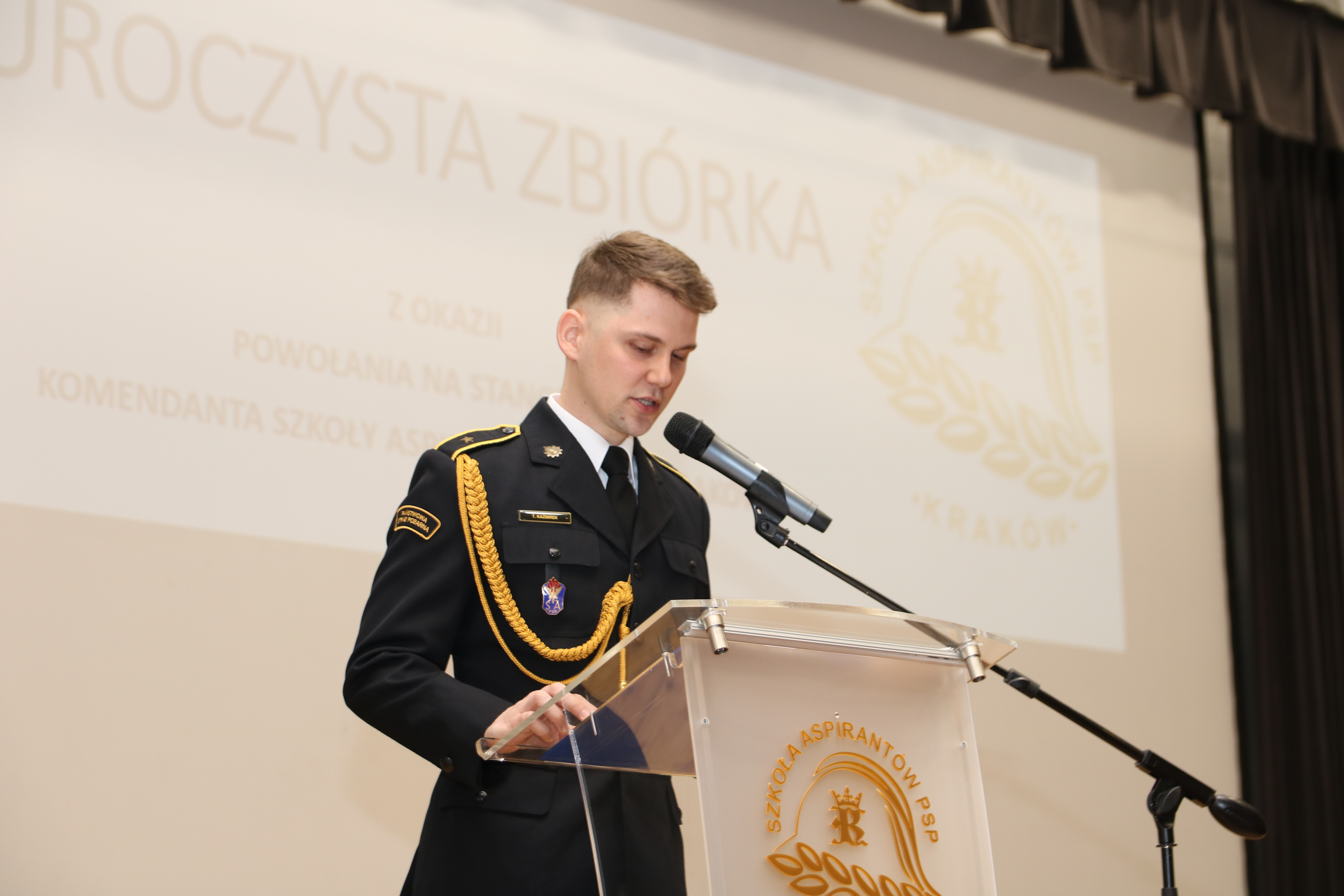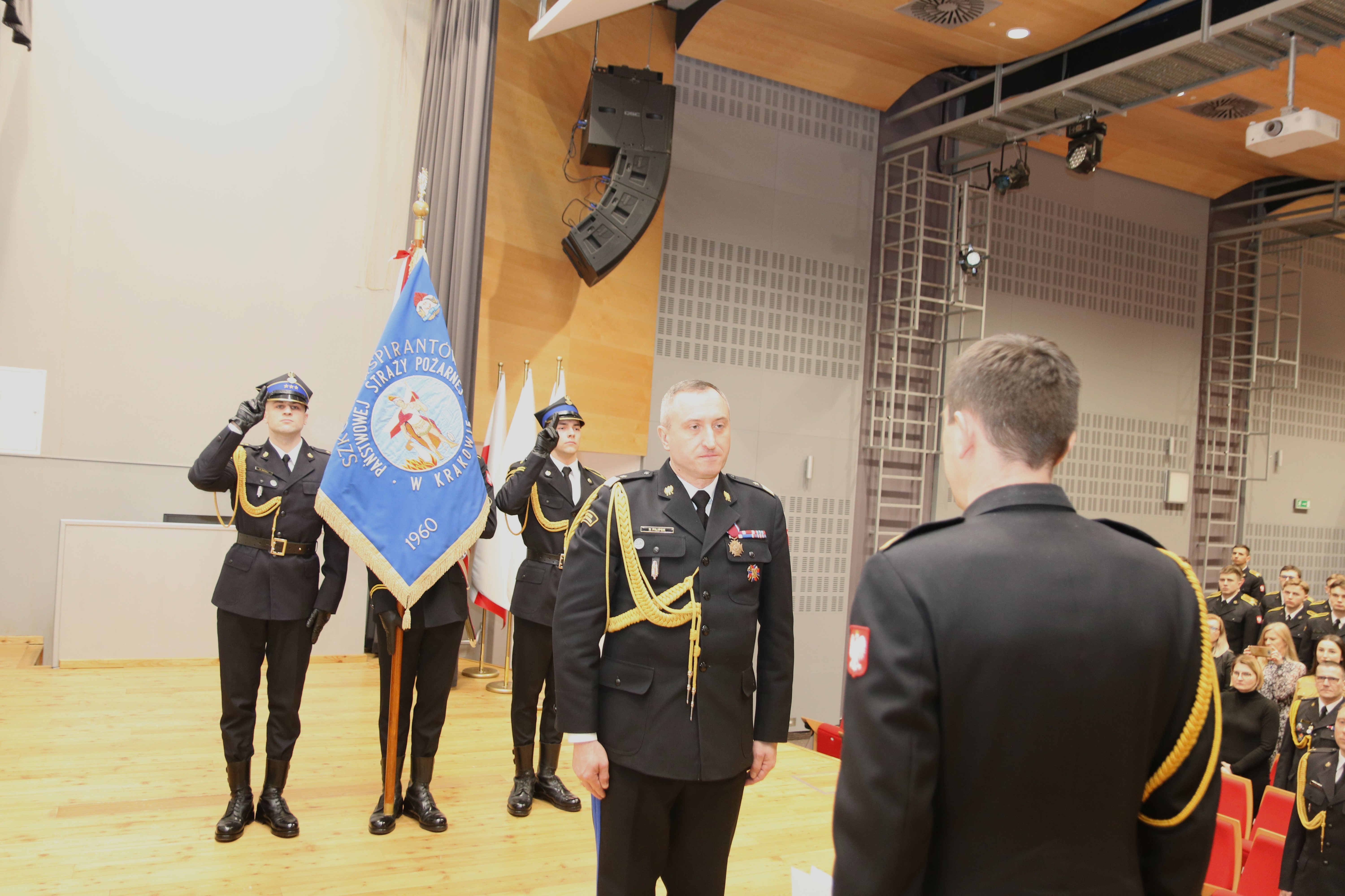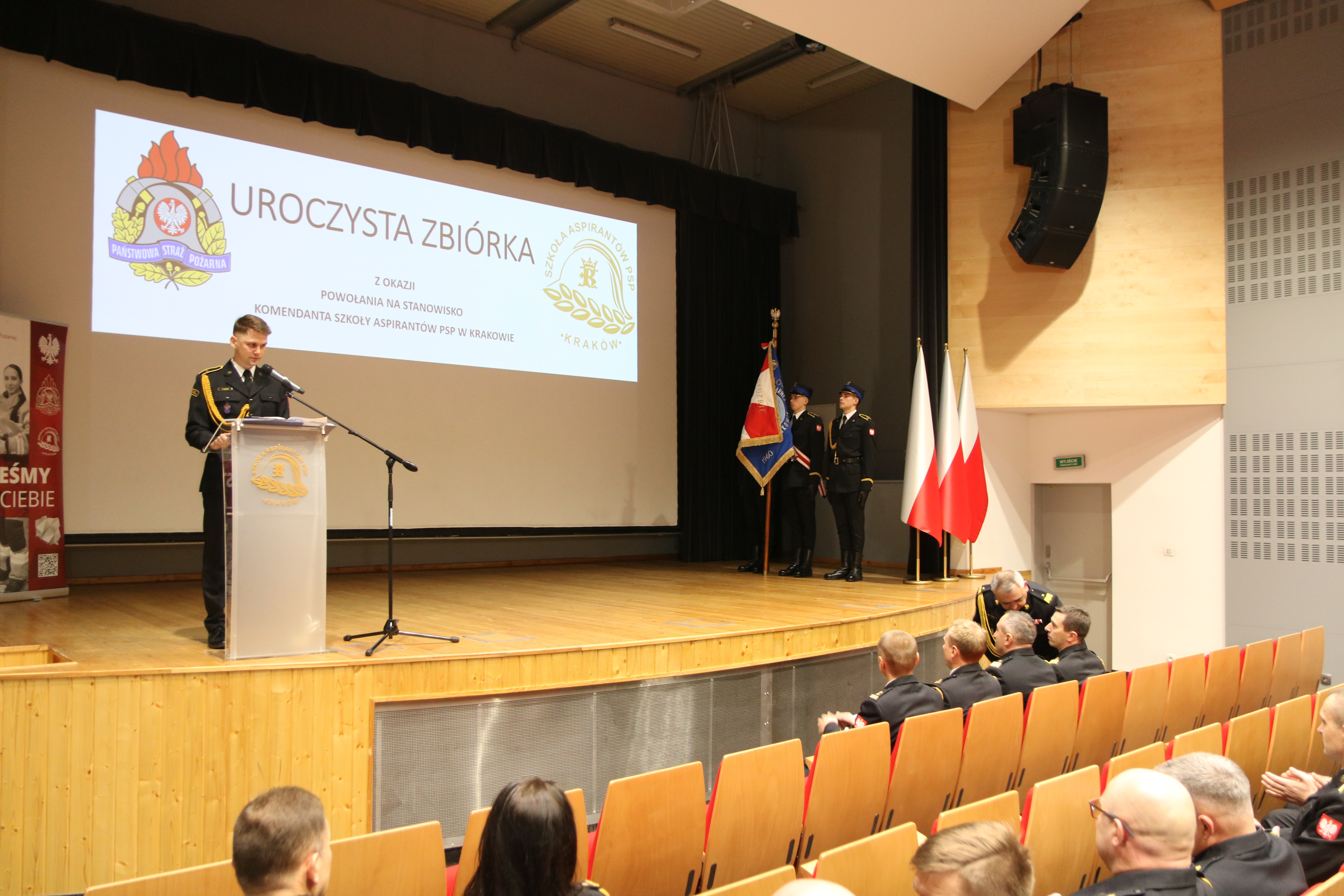W związku z ważnym interesem służby i w trosce o to, by zachować jej ciągłość, już dzień wcześniej w naszej auli odbyła się uroczysta zbiórka z okazji przekazania i przyjęcia obowiązków, w której udział wzięli znamienici goście na czele z: nadbryg. Mariuszem Feltynowskim - Komendantem Głównym PSP, jego zastępcą - nadbryg. Józefem Galicą oraz następcą Małopolskiego Komendanta Wojewódzkim PSP bryg. Przemysławem Przęczkiem.