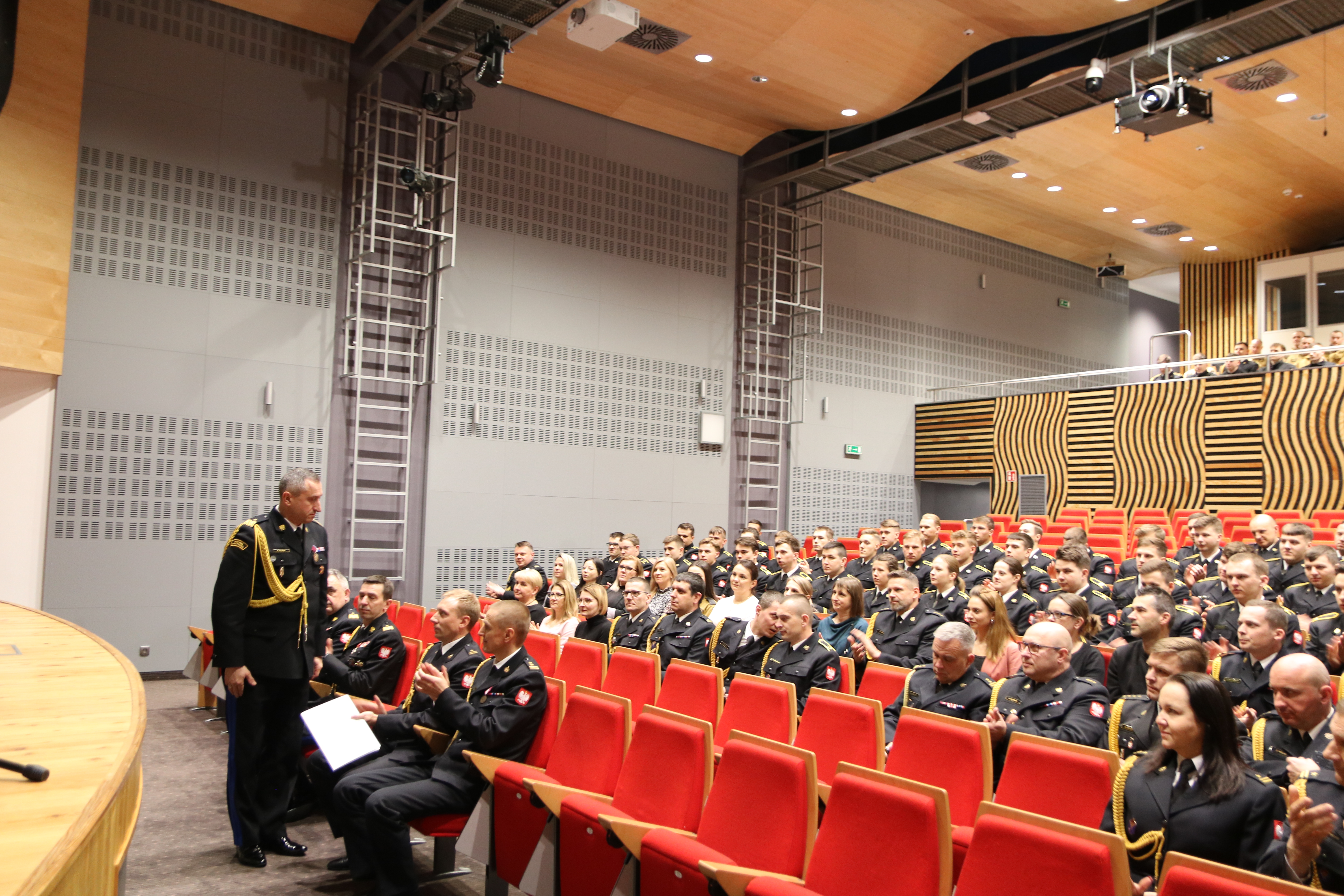 W czasie krótkich okolicznościowych przemówień nawiązywano do tradycji i budowanej na jej fundamentach przyszłości i nowoczesności, ogromnego znaczenia i wagi prowadzonej na wysokim poziomie pożarniczej edukacji oraz szacunku dla „munduru”. Padły słowa podziękowania, uznania oraz zobowiązania do dalszej wytężonej pracy, której głównym celem jest kształcenie na rzecz kadr jednostek ochrony przeciwpożarowej.