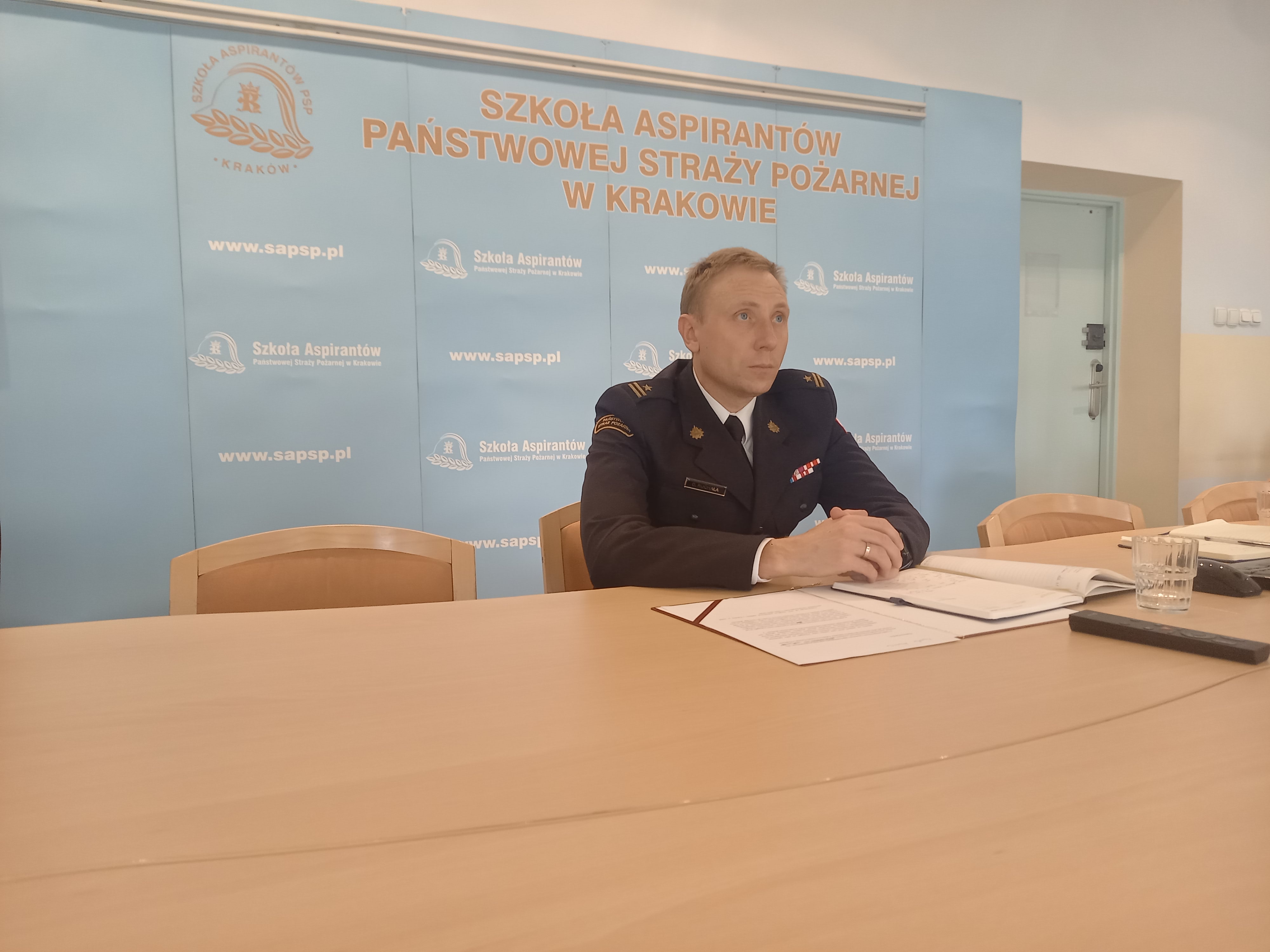 Podsumowująca funkcjonowanie Szkoły narada roczna kadry kierowniczej odbyła się 29 lutego 2024 roku i miała hybrydowy charakter. Za pomocą wideokonferencji z obradującymi w Sali G uczestnikami spotkał się zastępca komendanta głównego PSP bryg. Paweł Frysztak, który po zapoznaniu się z prezentacją dotyczącą pracy poszczególnych wydziałów i komórek organizacyjnych, na ręce p.o. komendanta SA PSP w Krakowie mł.bryg. Dariusza Ruchały, złożył podziękowania za ogrom bardzo dobrze wykonanej pracy. Doceniając wysoki poziom zaangażowania w działalność dydaktyczną i szkoleniową oraz funkcjonowanie naszej jednostki ratowniczo-gaśniczej nakreślił nowe kierunki i zadania.