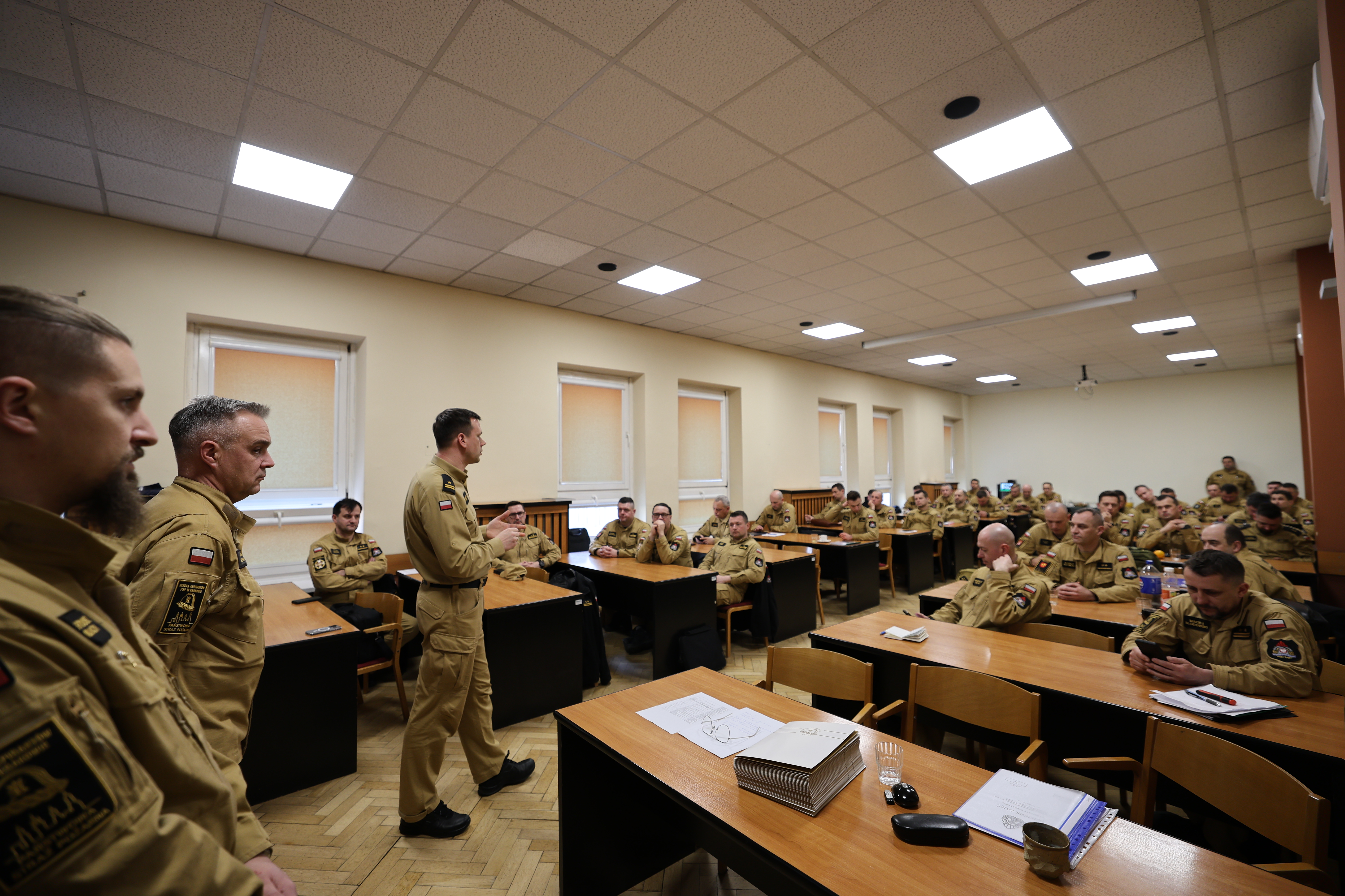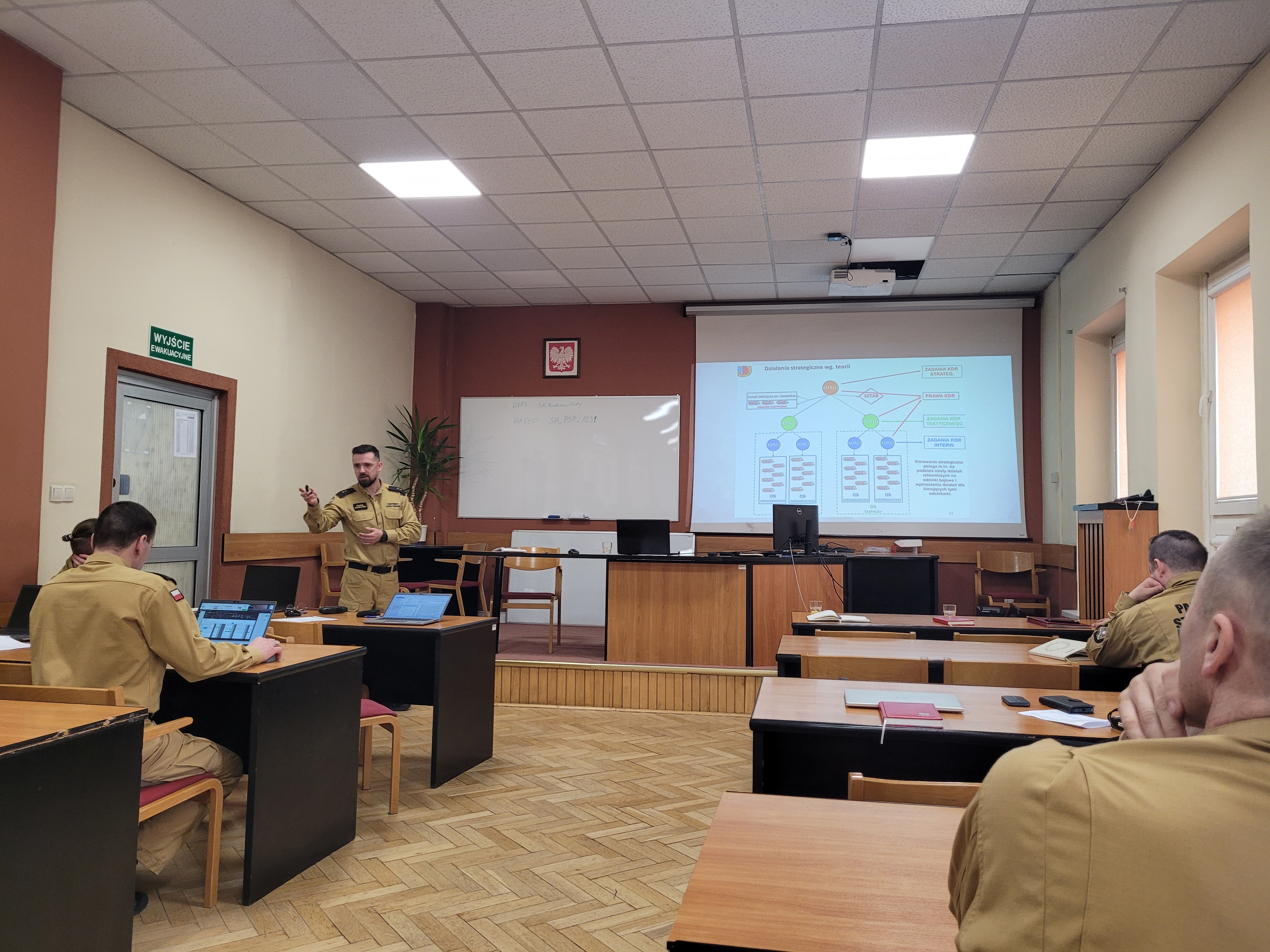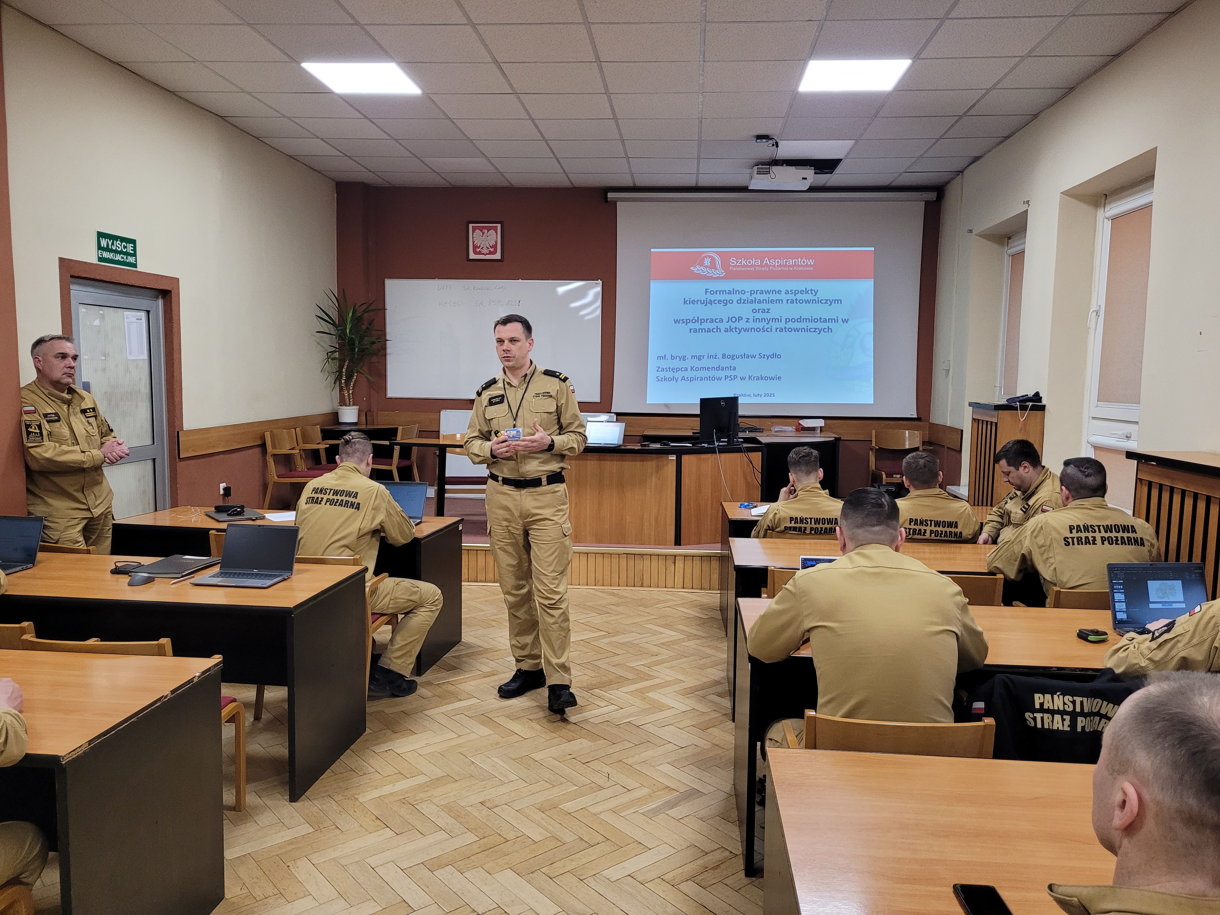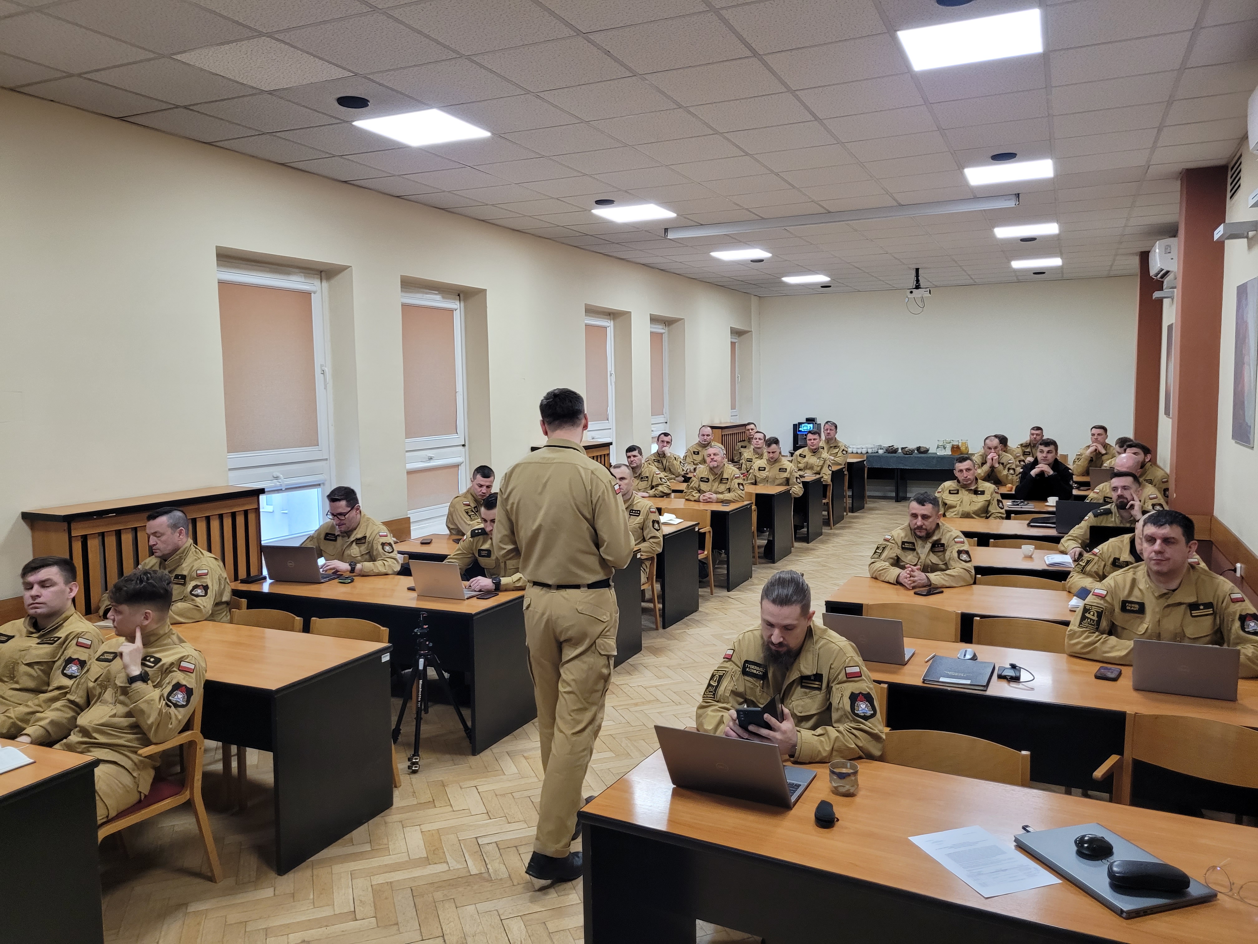 W dniach 24-25 oraz 26-27 lutego 2025 roku w Szkole Aspirantów PSP w Krakowie odbyły się dwie edycje warsztatów tematycznych z zakresu kierowania działaniami ratowniczymi na poziomie taktycznym oraz współdziałania z Kompanią Szkolną „Kraków” centralnego odwodu operacyjnego krajowego systemu ratowniczo-gaśniczego. Tym razem w szkolnych ławkach zasiedli nie nasi słuchacze, ale funkcjonariusze posiadający już ogromną wiedzę i doświadczenie funkcjonariusze. Wśród nich znaleźli się między innymi oficerowie operacyjni, dowódcy zmian, zastępów oraz osoby pełniące służbę oficerów dyżurnych Szkoły.