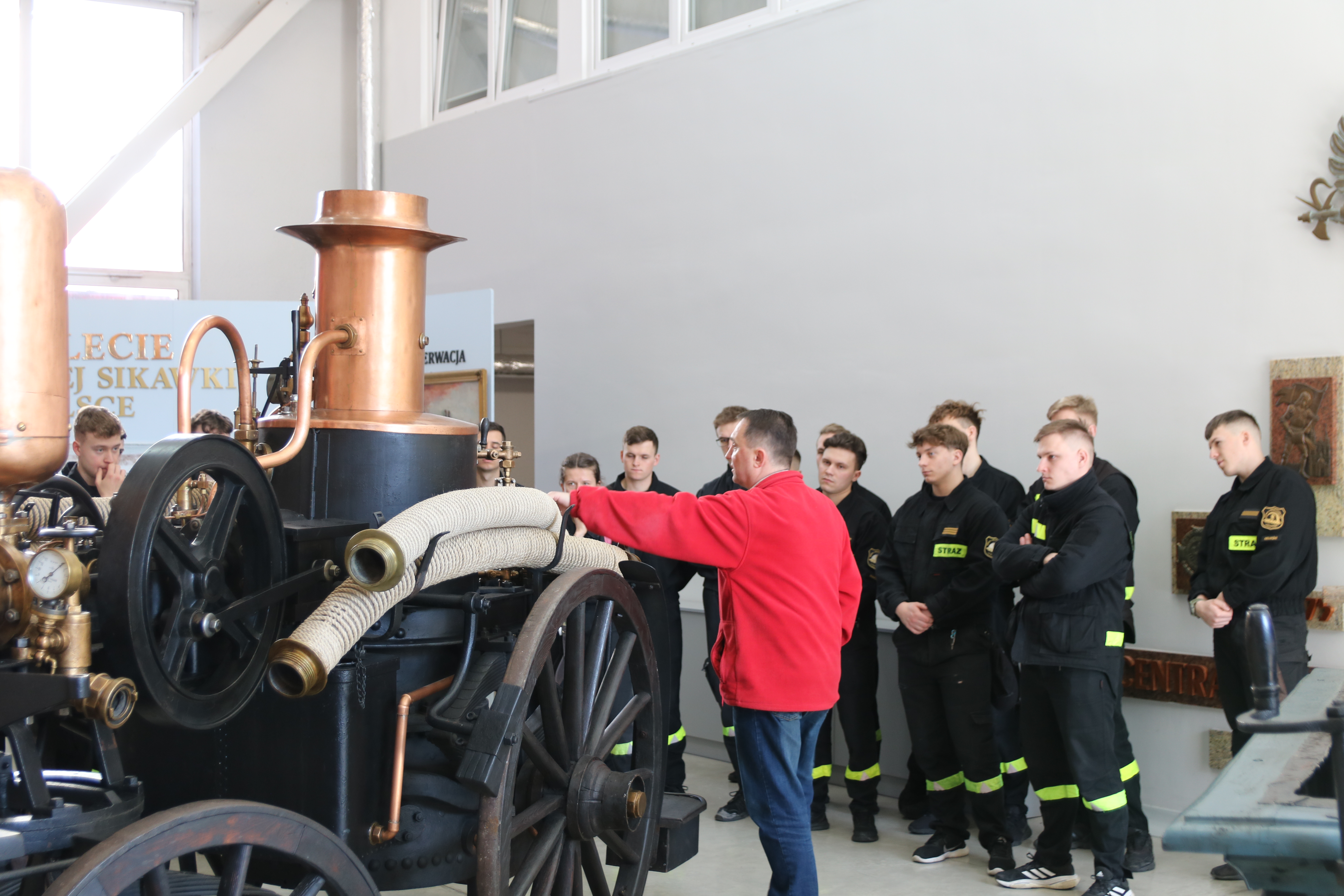 Dzięki przychylności kierownictwa i pracowników CMP 26 i 27 marca 2024 roku kadetki i kadeci II kompanii mieli okazję zobaczyć i dotknąć części naszych dziejów. Posłuchać o tym, jak często w rozwoju wyposażenia technicznego i taktyki działań ratowniczych rządziła maksyma mówiąca o tym, że „potrzeba jest matką wynalazków”, jak zmieniały się realia i możliwości skutecznego reagowania. Wystarczy wspomnieć, że do obsługi jednej z prezentowanych pomp niezbędnych było aż 37 strażaków, o ciągnących ją koniach, nie wspominając.