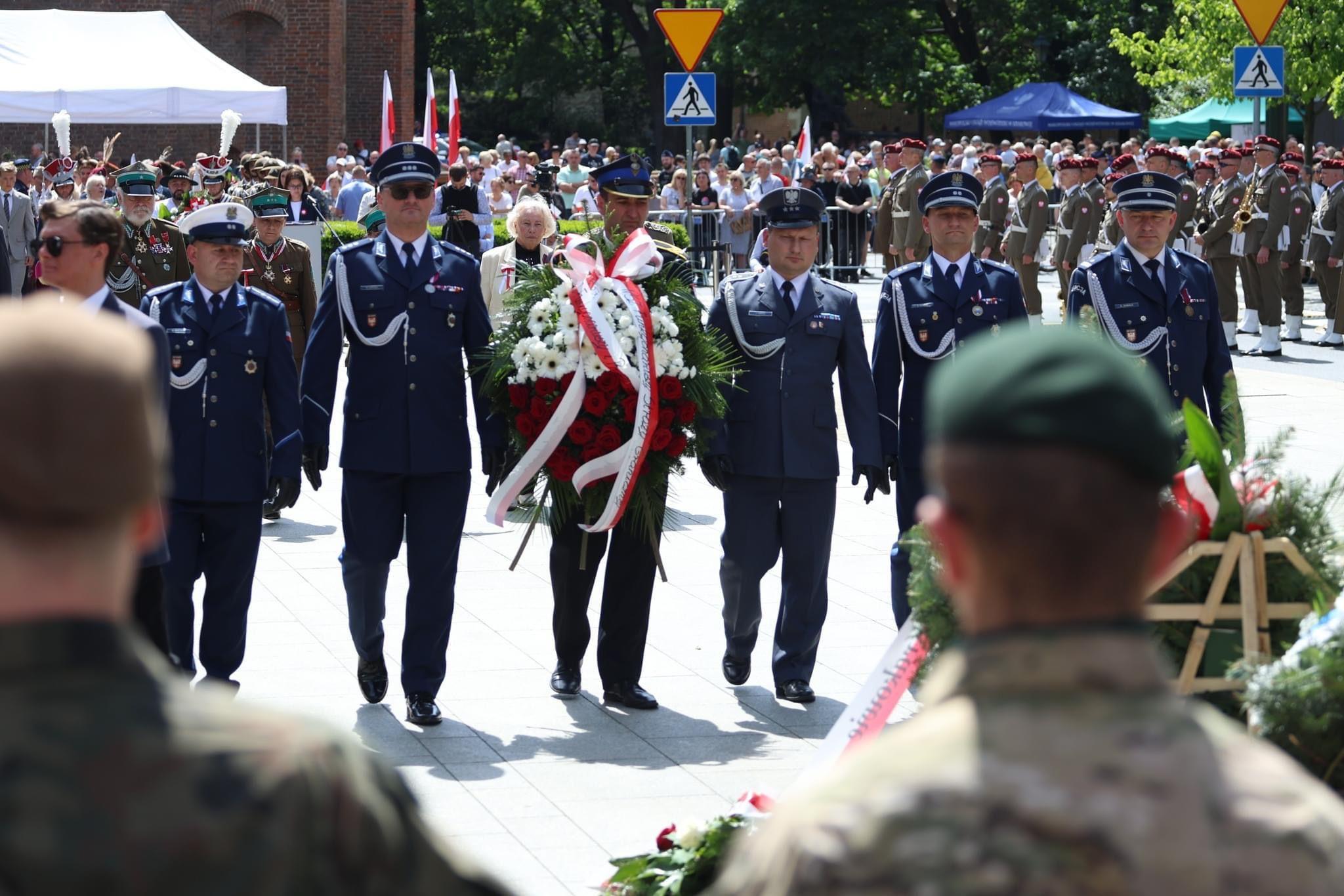 Uchwalona 3 maja 1791 roku Konstytucja była pierwszą w Europie i drugą na świecie spisaną ustawą zasadniczą, która stała się dokumentem tworzącym tożsamość suwerennego narodu. W ramach obchodów 233 rocznicy uchwalenia Konstytucji przedstawiciele Szkoły Aspirantów PSP w Krakowie, na czele z Komendantem Szkoły nadbryg. Piotrem Filipkiem, wzięli udział we Mszy Świętej w intencji Ojczyzny w Katedrze Wawelskiej. Tuż po niej z Wawelskiego wzgórza wyruszył pochód patriotyczny, który przeszedł traktem Królewskim, aż do placu Jana Matejki, gdzie nastąpił dalszy ciąg uroczystości.