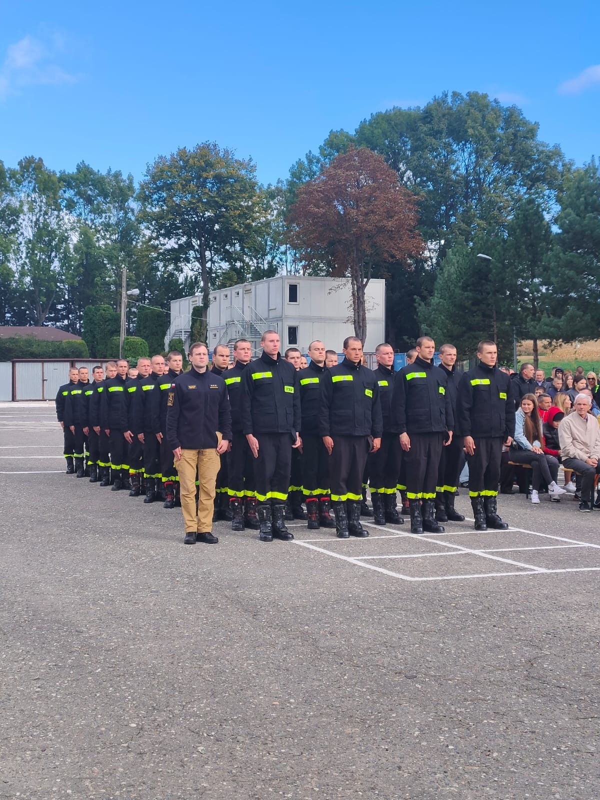 Polowa Msza Święta była pierwszą od niemalże miesiąca nauki i służby kandydackiej okazją do spotkania młodych adeptów pożarnictwa z bliskimi, nie obyło się więc bez wzruszeń i serdecznych uśmiechów.