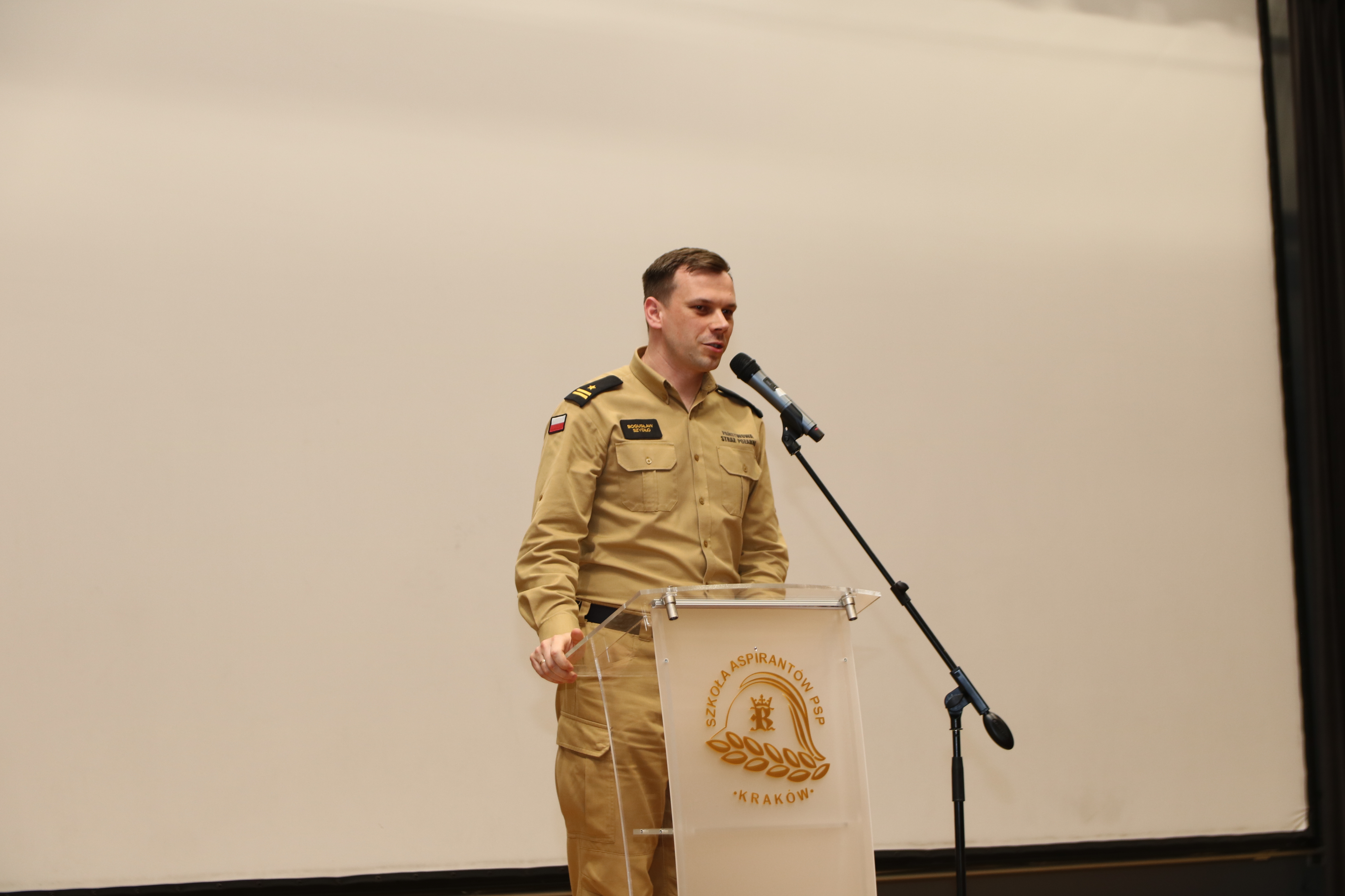 Z tej okazji z rozpoczynającymi trwające 70 dni szkoleniowych pożarnicze kształcenie spotkali się przedstawiciele kadry kierowniczej, dydaktycznej i wychowawczej. Nowych uczniów w imieniu Komendanta SA PSP w Krakowie - nadbryg. Piotra Filipka - przywitał jego zastępca - mł.bryg. Bogusław Szydło. W czasie okolicznościowego przemówienia zadeklarował, że dołożymy wszelkich starań, aby zajęcia zrealizowane były na najwyższym z możliwych poziomów, a nabyta wiedza i umiejętności korelowały z obowiązkami służbowymi przewidzianych do realizacji w czasie służby w macierzystych jednostkach.