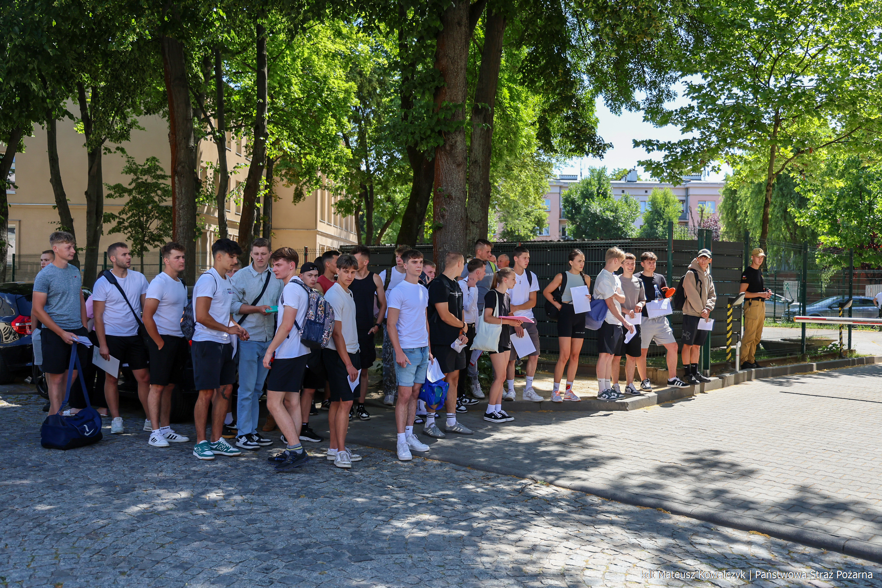 Jeszcze nie opadły emocje po piątkowej uroczystej promocji tegorocznych absolwentów, a przed bramą Szkoły już zjawiły się setki osób chcących rozpocząć naukę w „krakowskiej aspirantce” w kolejnym roku szkolnym. 30 czerwca 2025 rozpoczęły się bowiem testy sprawności fizycznej, stanowiące jeden z istotnych elementów naboru do służby kandydackiej w Państwowej Straży Pożarnej.