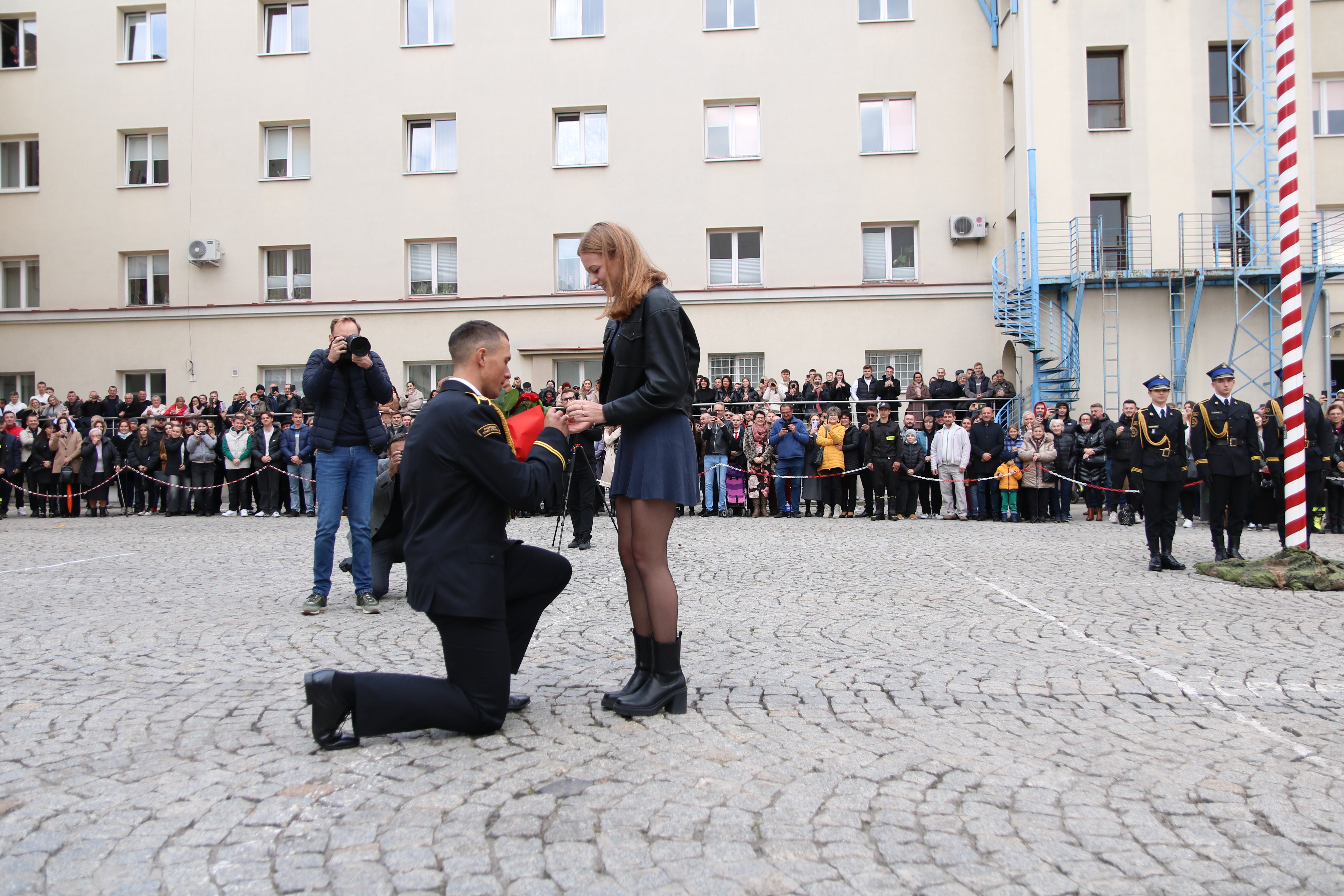 Miłym, a wręcz wzruszającym, akcentem ślubowania były przyjęte przez wybrankę serca jednego ze słuchaczy oświadczyny.