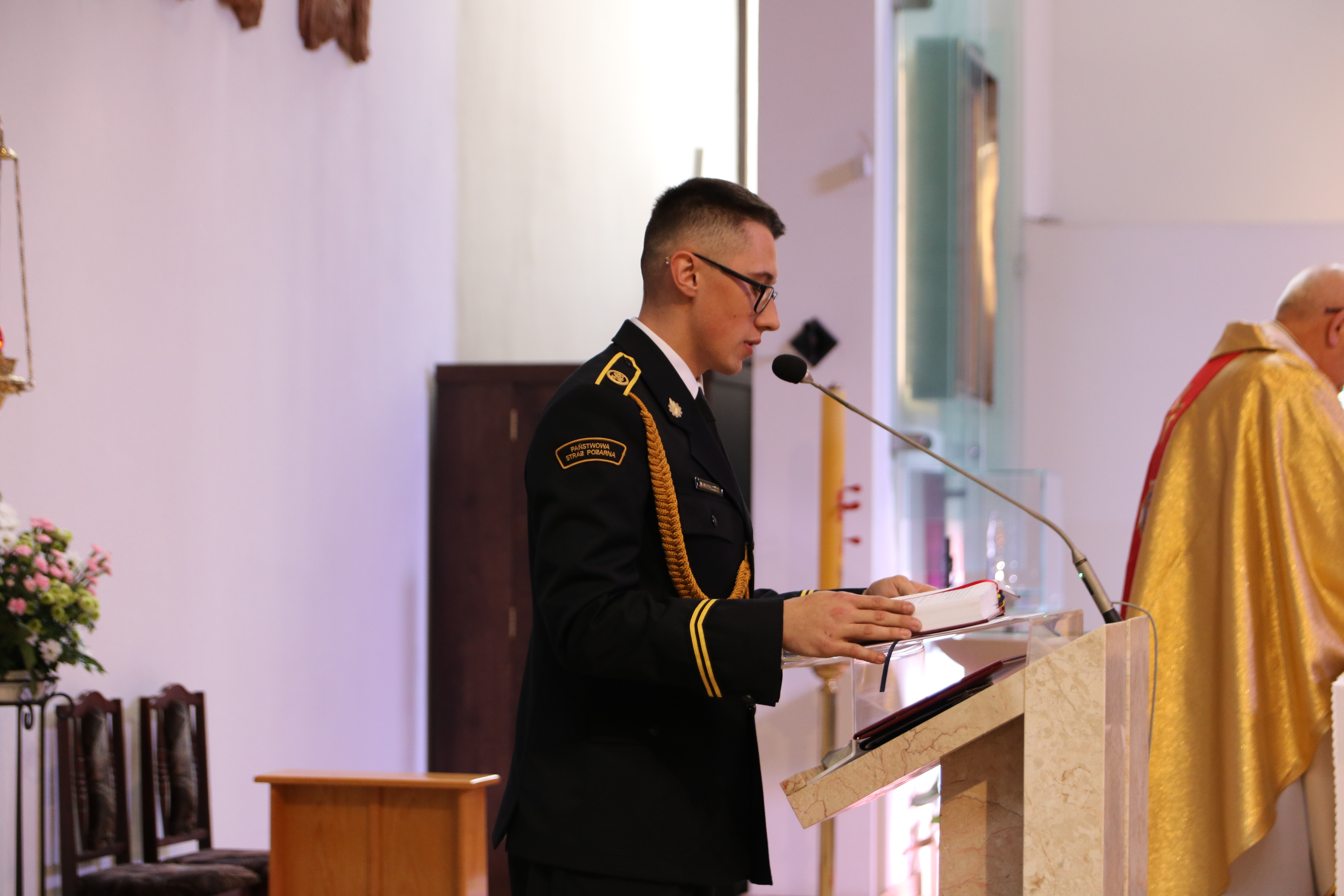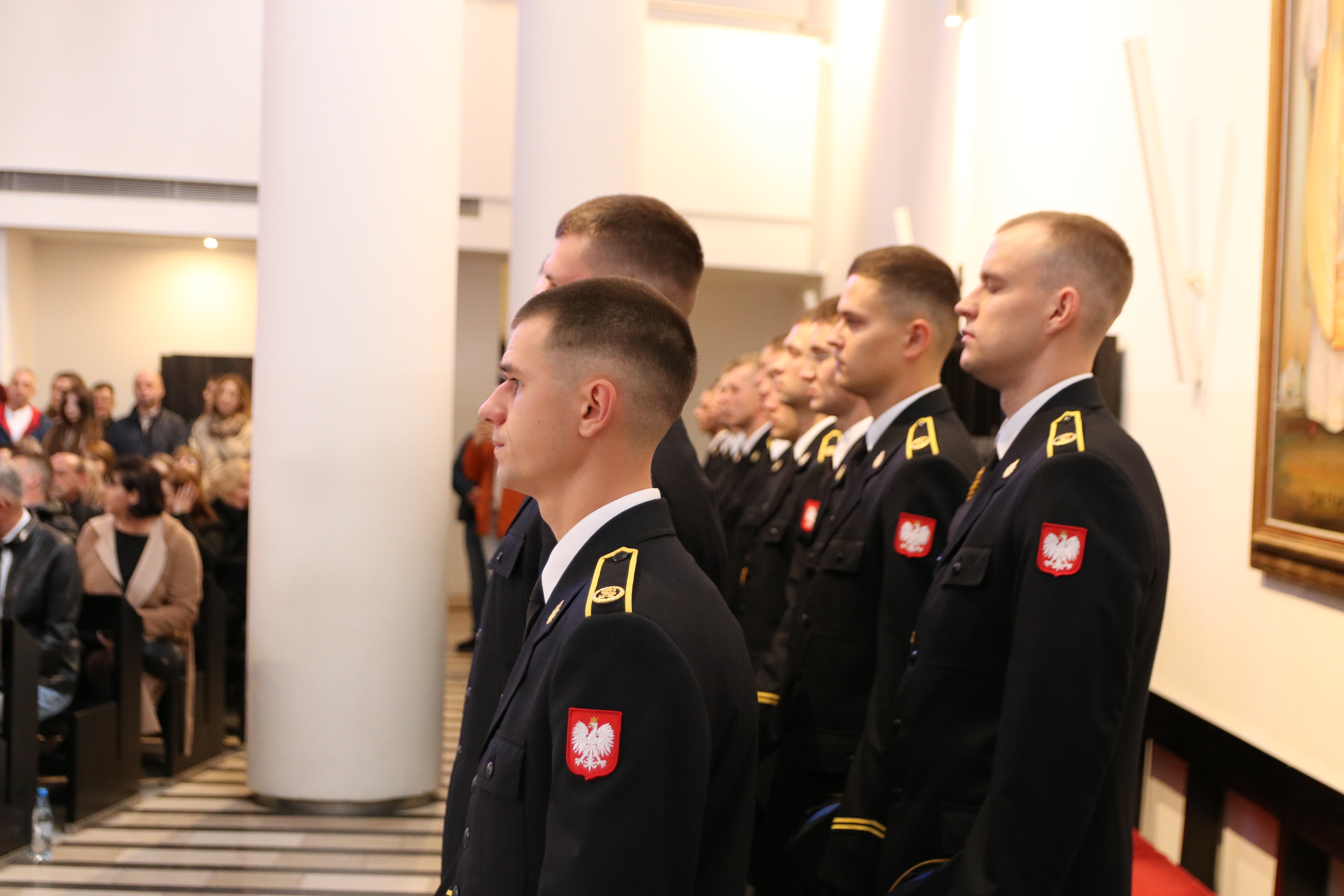 Uroczystość ślubowania przebiegła zgodnie z pożarniczym ceremoniałem, a tradycyjnie poprzedzona została odprawioną w intencji słuchaczy, ich rodzin i całej strażackiej społeczności koncelebrowaną Mszą Świętą, której przewodniczył Krajowy Kapelan Strażaków ks. st.bryg. Jan Krynicki.