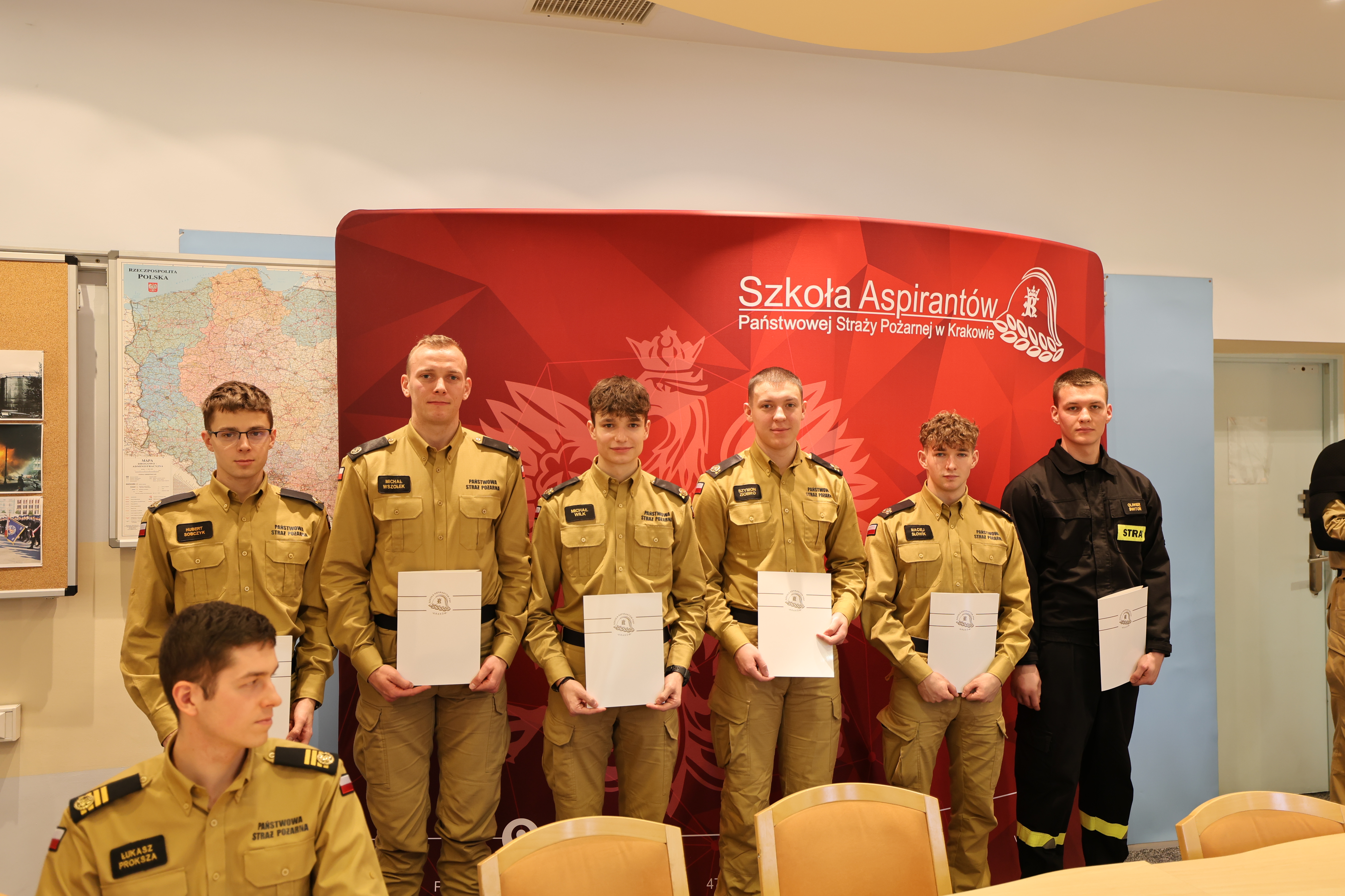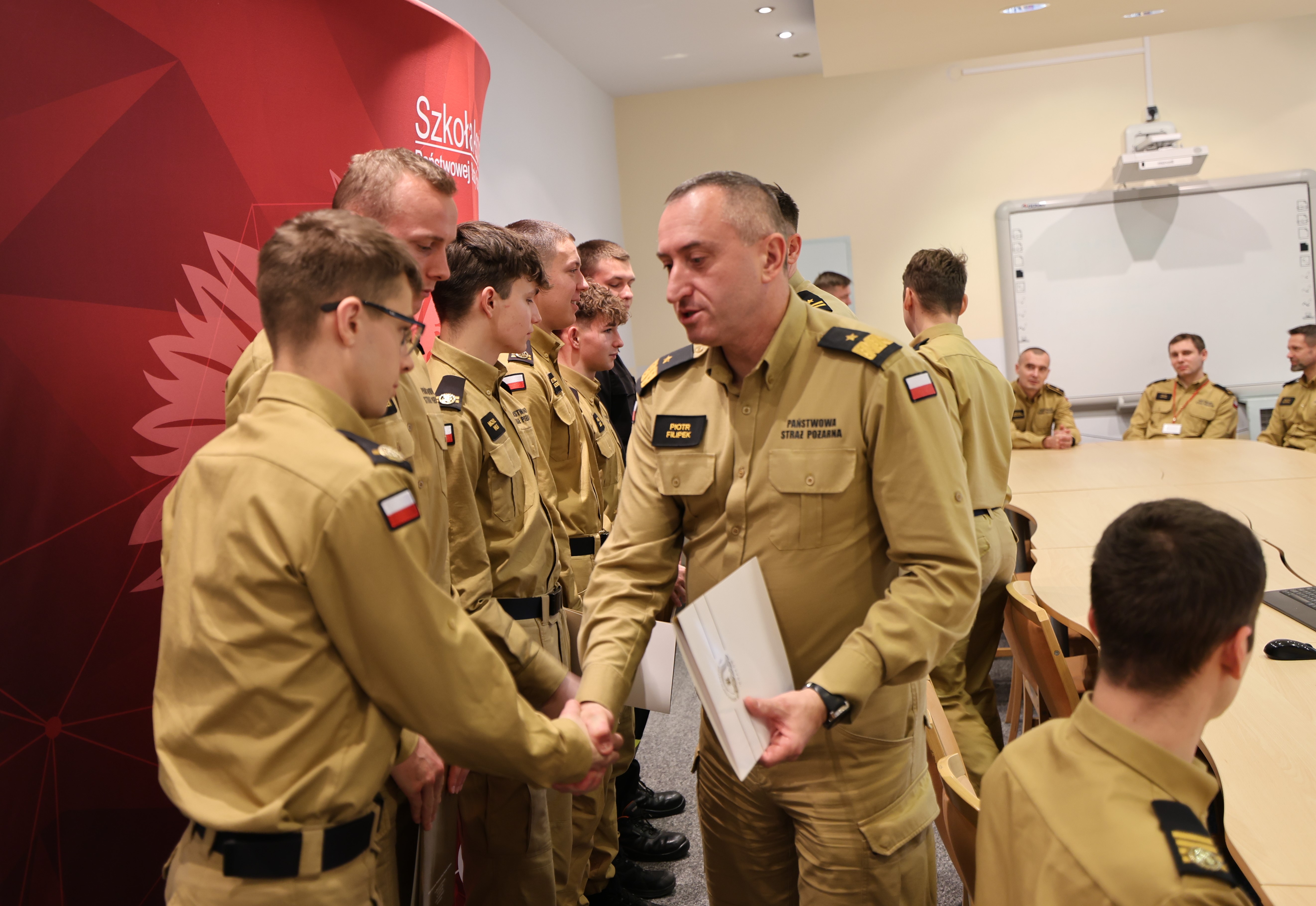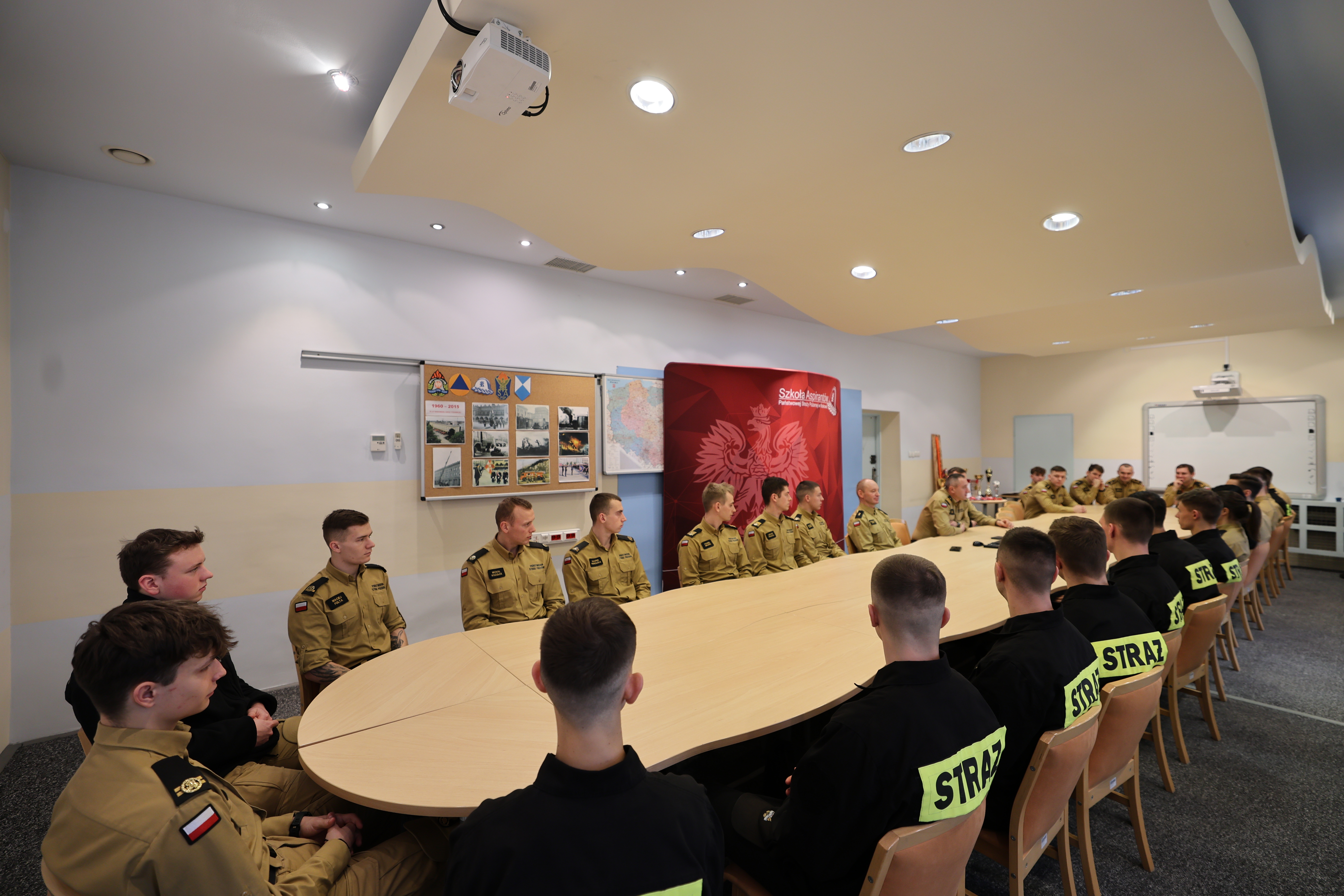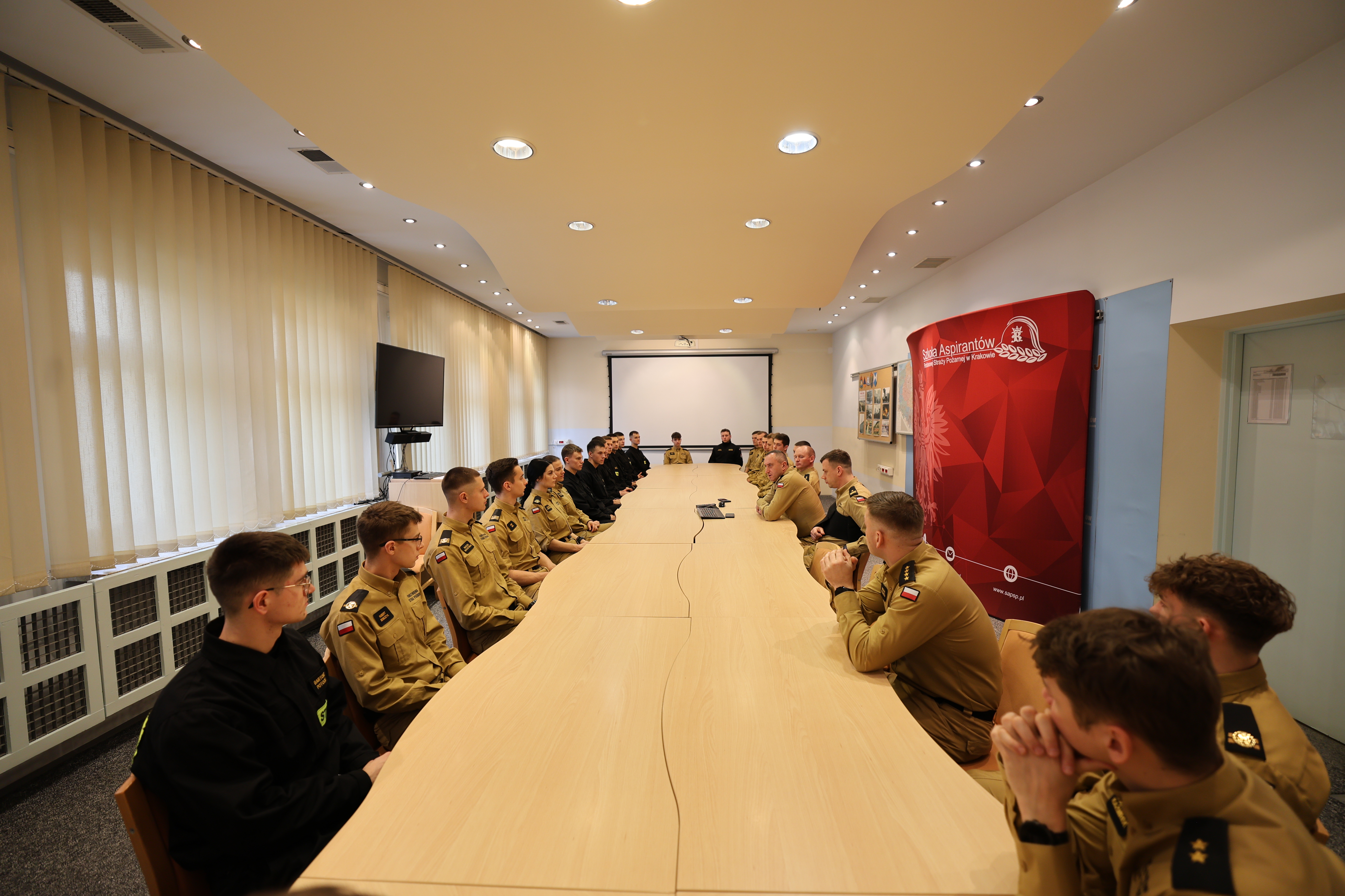 18 grudnia 2024 roku Komendant Szkoły Aspirantów PSP w Krakowie nadbryg. Piotr Filipek wraz ze swoim zastępcą mł.bryg. Bogusławem Szydło i przedstawicielami kadry dydaktyczno-wychowawczej spotkał się z osobami reprezentującymi Szkołę na arenie różnych zawodów sportowych. W czasie zbiórki w imieniu swoim i całej szkolnej społeczności podziękował wszystkim za ponadprzeciętne zaangażowanie, ciężkie treningi, starty, zdobyte medale, puchary i inne trofea. Słowa uznania przeplatały się z życzeniami osobistych, zawodowych i sportowych sukcesów na przyszły rok kalendarzowy i kolejne lata służby. Podkreślając wagę krzewienia kultury fizycznej wśród naszej grupy zawodowej komendant zadeklarował otwartość i gotowość do wspierania inicjatyw na rzecz podnoszenia sprawności fizycznej, w tym rozważenie zgłoszonej w czasie spotkania propozycji poszerzenia stanowisk do ćwiczeń o park do kalisteniki – czyli budowę stanowisk z prostymi przyrządami umożliwiającymi wykonywanie różnego rodzaju ćwiczenia z wykorzystaniem masy własnego ciała.
