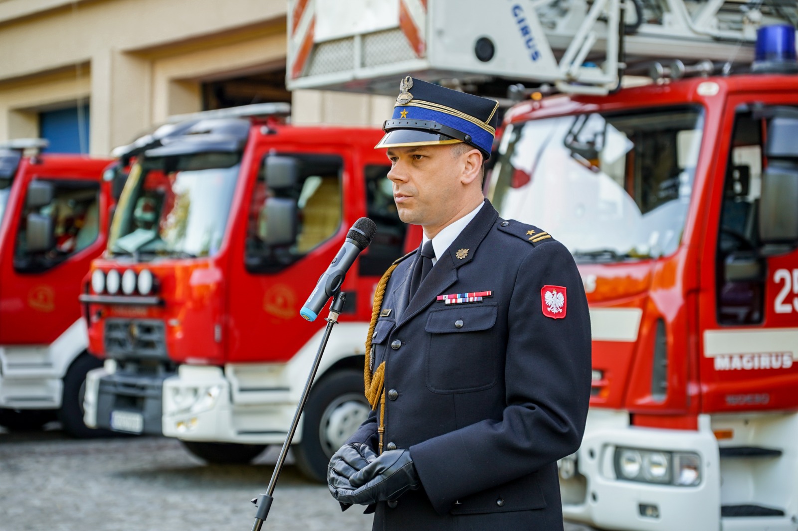 W imieniu kadry dowódczej głos zabrał Zastępca Komendanta mł.bryg. Bogusław Szydło. W okolicznościowym przemówieniu mówił o odwadze, poświęceniu i honorze, które towarzyszą codziennej służbie strażaka. Korzystając z okazji podziękował wszystkim funkcjonariuszom, kadetom i pracownikom cywilnym za ich trud i zaangażowanie, podkreślając, że flaga to nie tylko symbol – to także zobowiązanie do tego by służyć z oddaniem Rzeczypospolitej Polskiej każdego dnia.