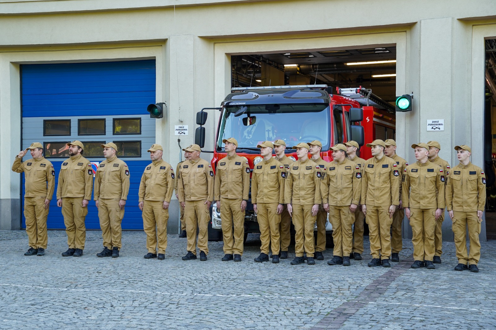 2 maja 2025 roku na placu zewnętrznym Szkoły odbyła się uroczysta zbiórka z okazji „Dnia flagi”. W wyjściowych mundurach zameldowali się na niej funkcjonariusze oraz wchodzący w skład kompanii honorowej kadeci, nie zabrakło także osób pełniących tego dnia służbę w naszej jednostce ratowniczo-gaśniczej oraz pracowników cywilnych.