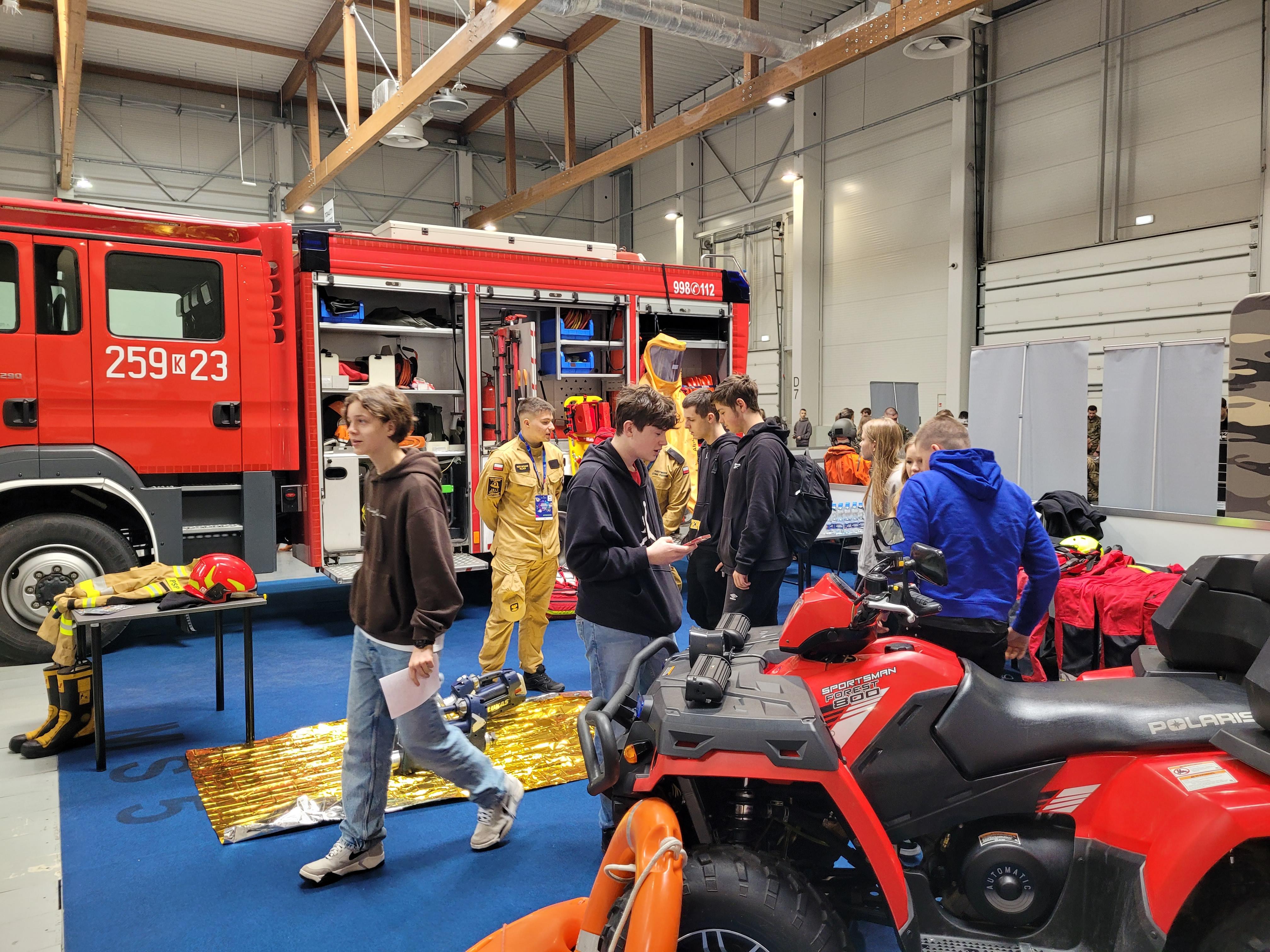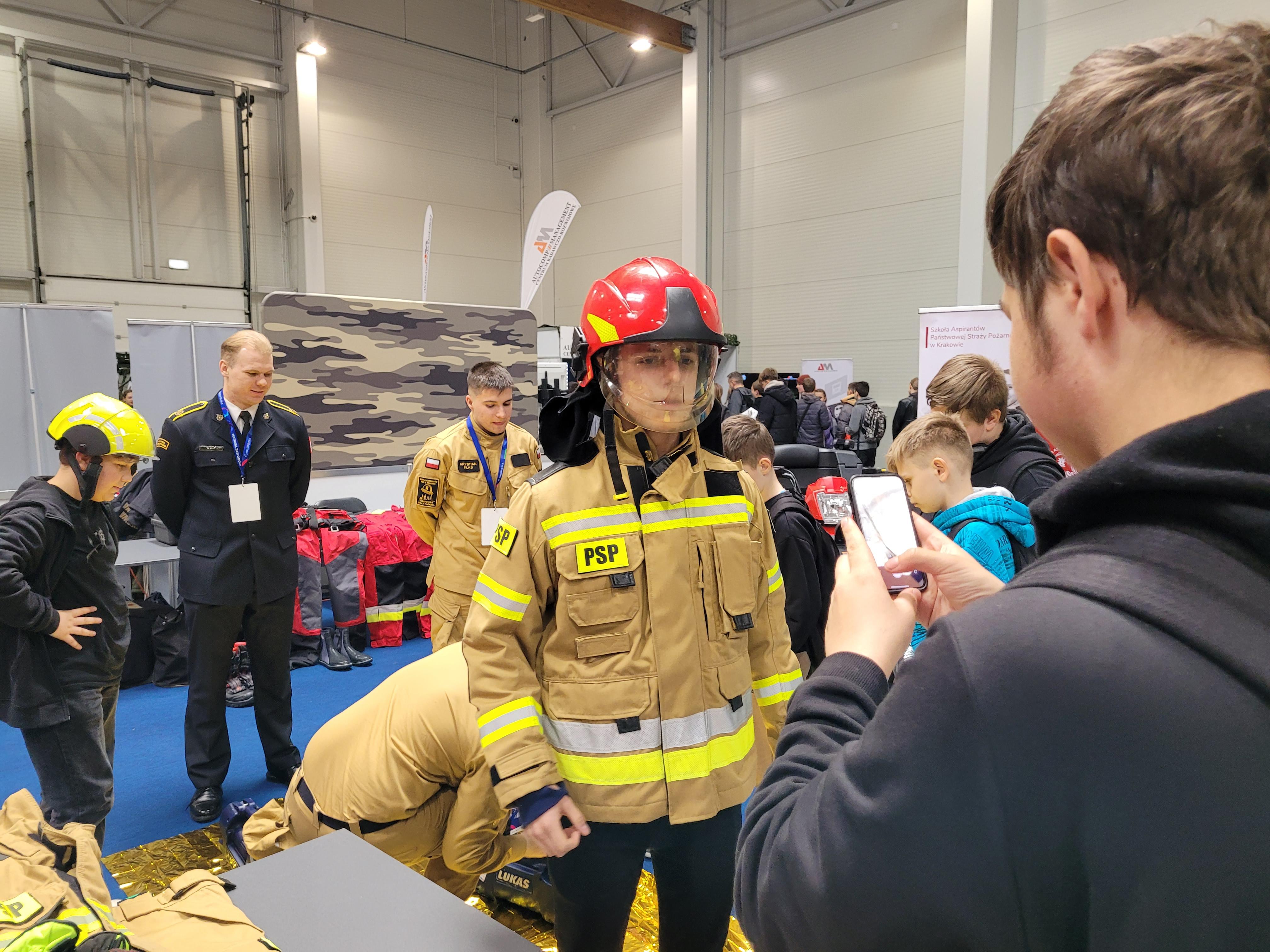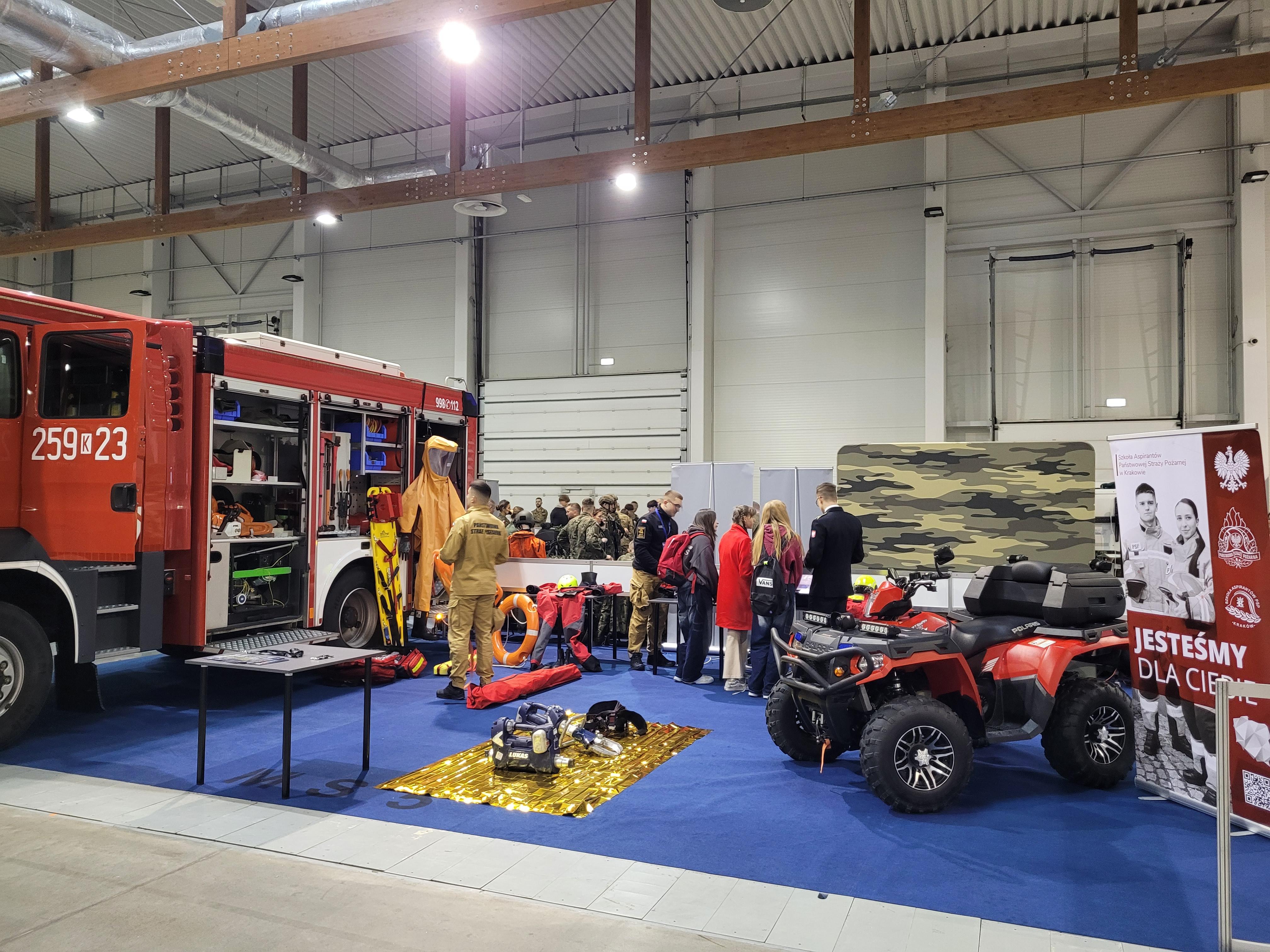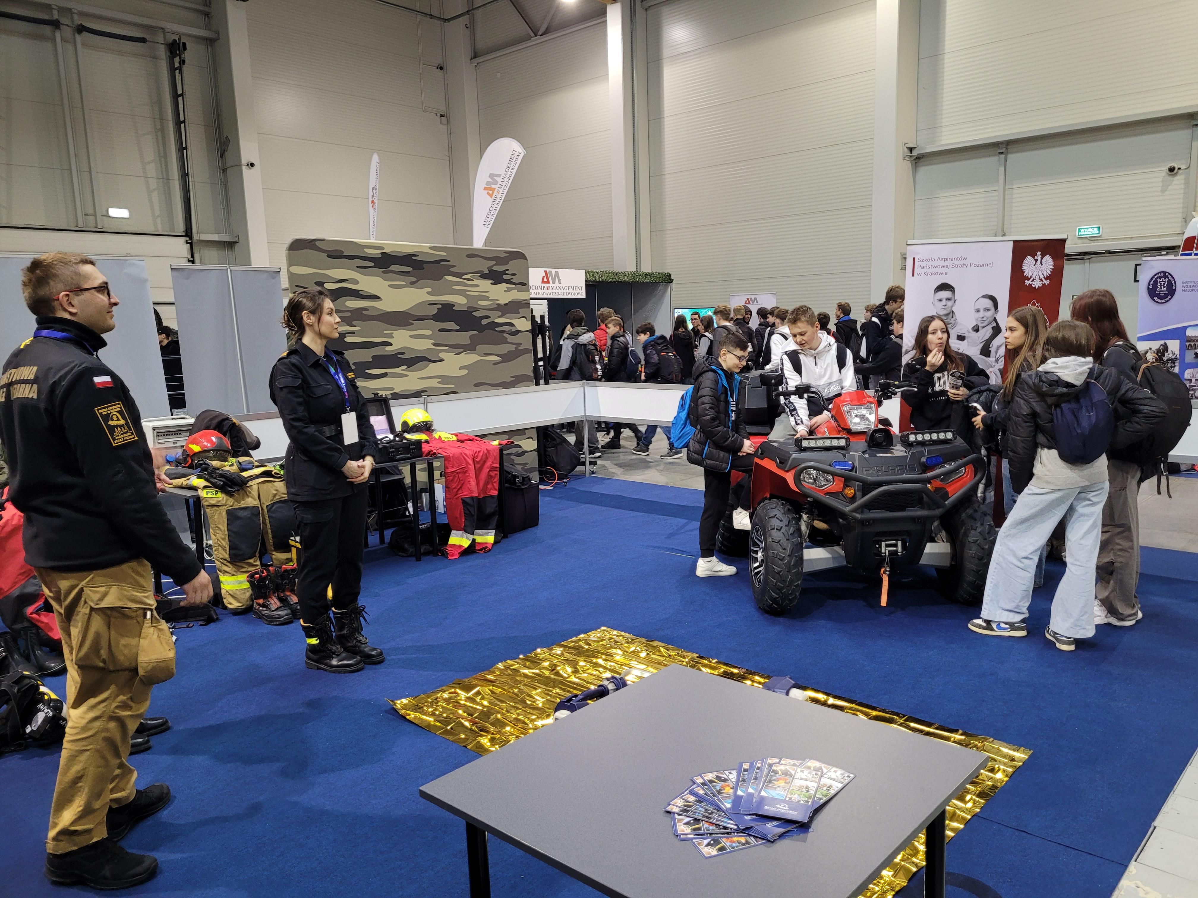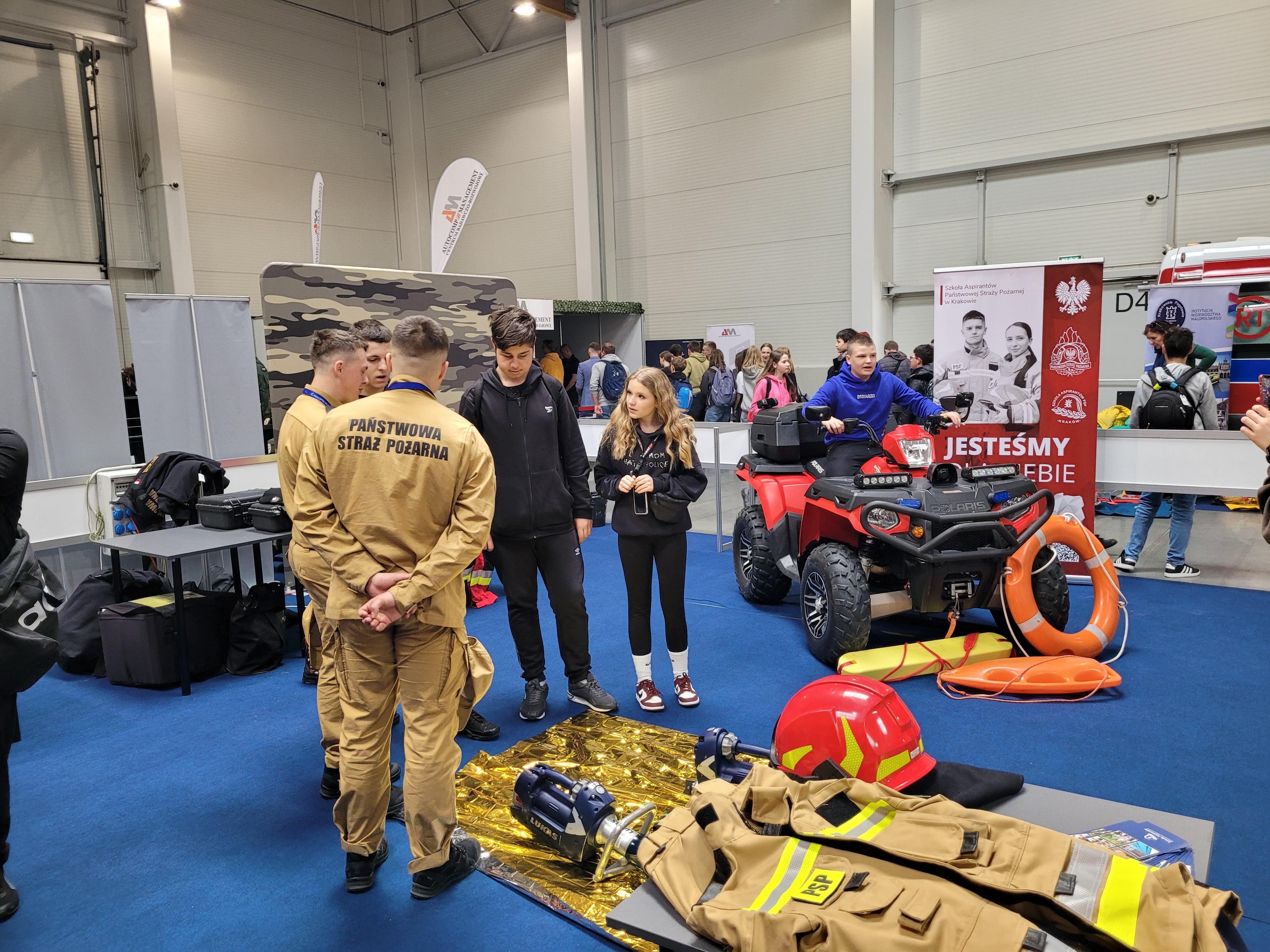 Jedną z najbardziej obleganych przez zwiedzających w krakowskiej hali Expo była strefa służb mundurowych, a w niej umiejscowione w samym centrum, stanowisko Szkoły Aspirantów PSP w Krakowie.