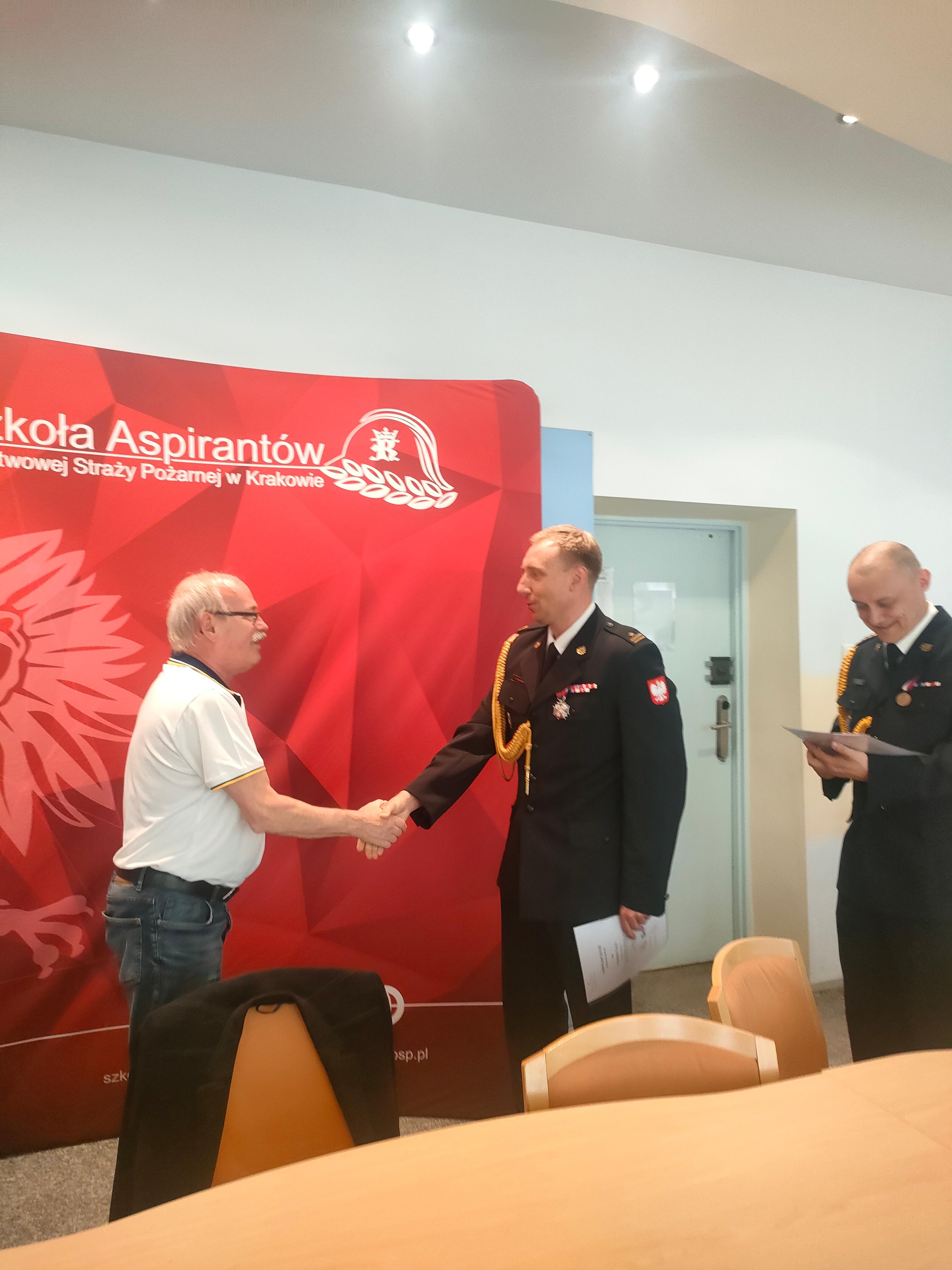 Szkolenie zakończyło się wręczeniem zaświadczeń i złożeniem gratulacji przez Zastępcę Komendanta Szkoły mł. bryg. Dariusza Ruchałę, któremu asystowali pracownicy Wydziału Centrum Szkolenia Ochrony Ludności i Dóbr Kultury.