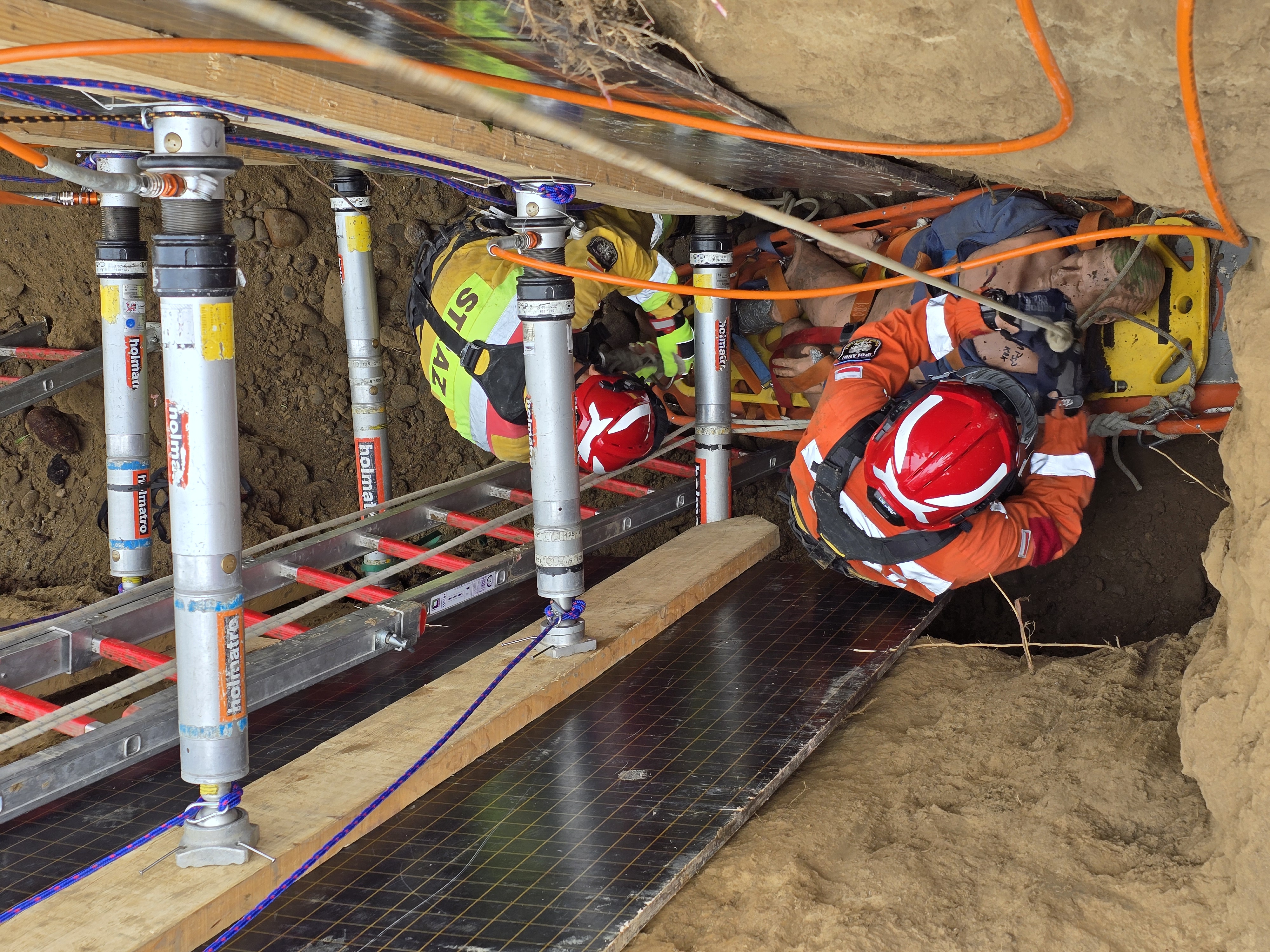 Podczas szkolenia uczestnicy zostali zapoznani ze sposobami stabilizacji wykopów budowlanych poprzez wykonywanie zabezpieczeń ratowniczych wykopu prostego, wykopu w kształcie litery „L” oraz wykopu w kształcie litery „T”. Stabilizacja wykonywana była przy wykorzystaniu systemu podpór aktywnych, systemu stempli budowlanych oraz systemu podpór drewnianych.