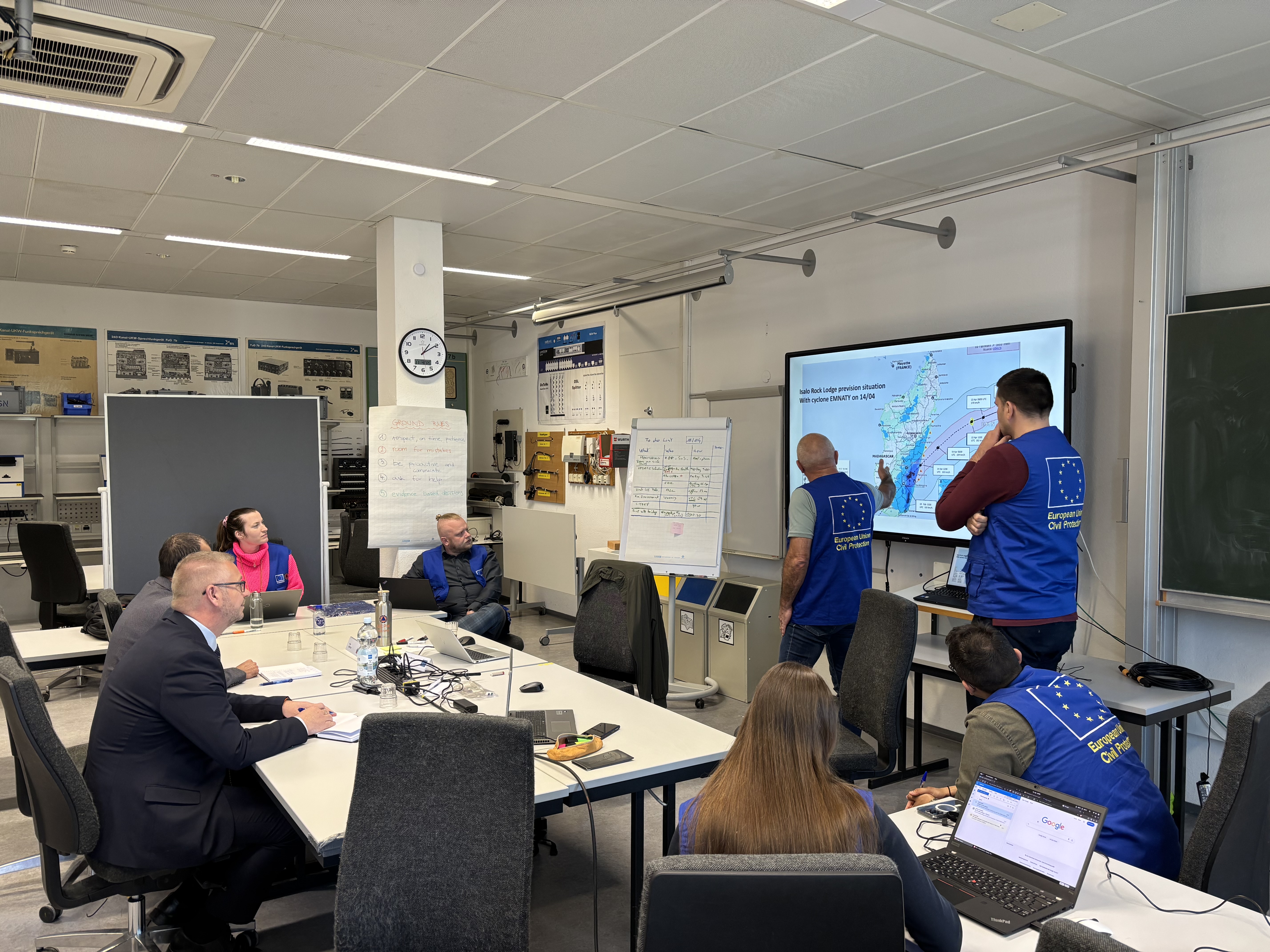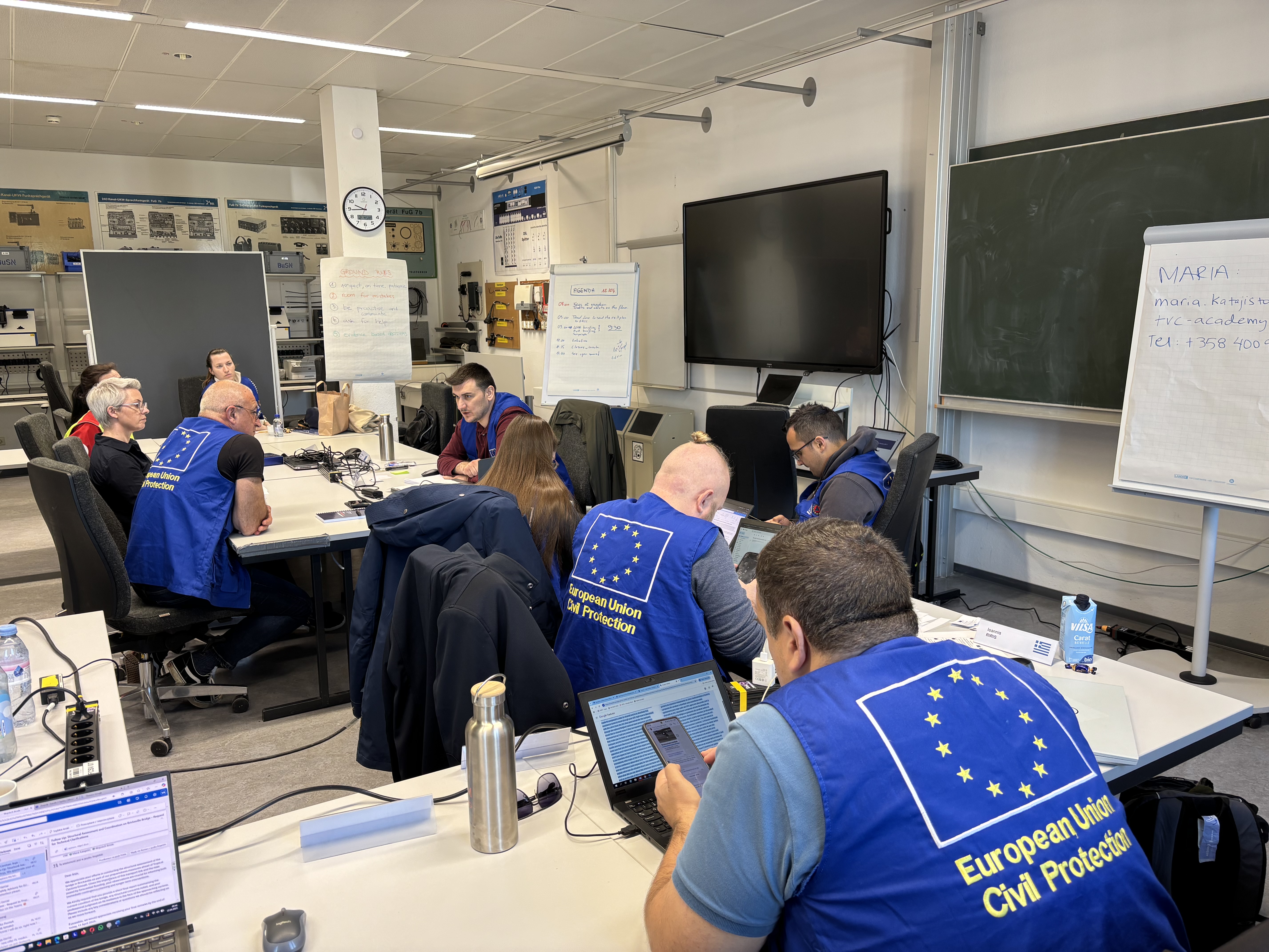 Druga część kursu odbywała się w wersji stacjonarnej, w miejscowości Neuhausen koło Stuttgartu w Niemczech, w THW - centrum szkoleniowym Federalnej Służby Ratownictwa Technicznego. Na uczestników czekał tam przygotowany scenariusz katastrofy naturalnej, jaka dotknęła jedną z wysp kontynentu afrykańskiego. Do zadań zespołu należało odpowiednie przygotowanie misji oraz późniejsza koordynacja pomocy międzynarodowej. Działania realizowano poprzez przygotowanie i kilkudniowe zarządzanie biurem EUCPT, liczne spotkania z przedstawicielami lokalnych struktur, a także planowanie i koordynacja dostarczanej pomocy międzynarodowej na poziomie logistycznym oraz operacyjnym.