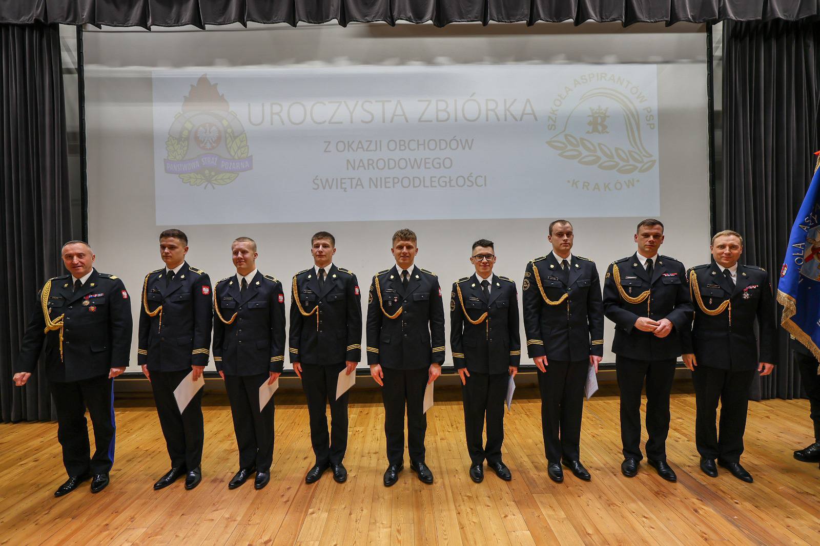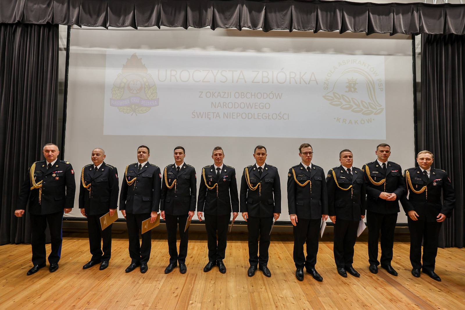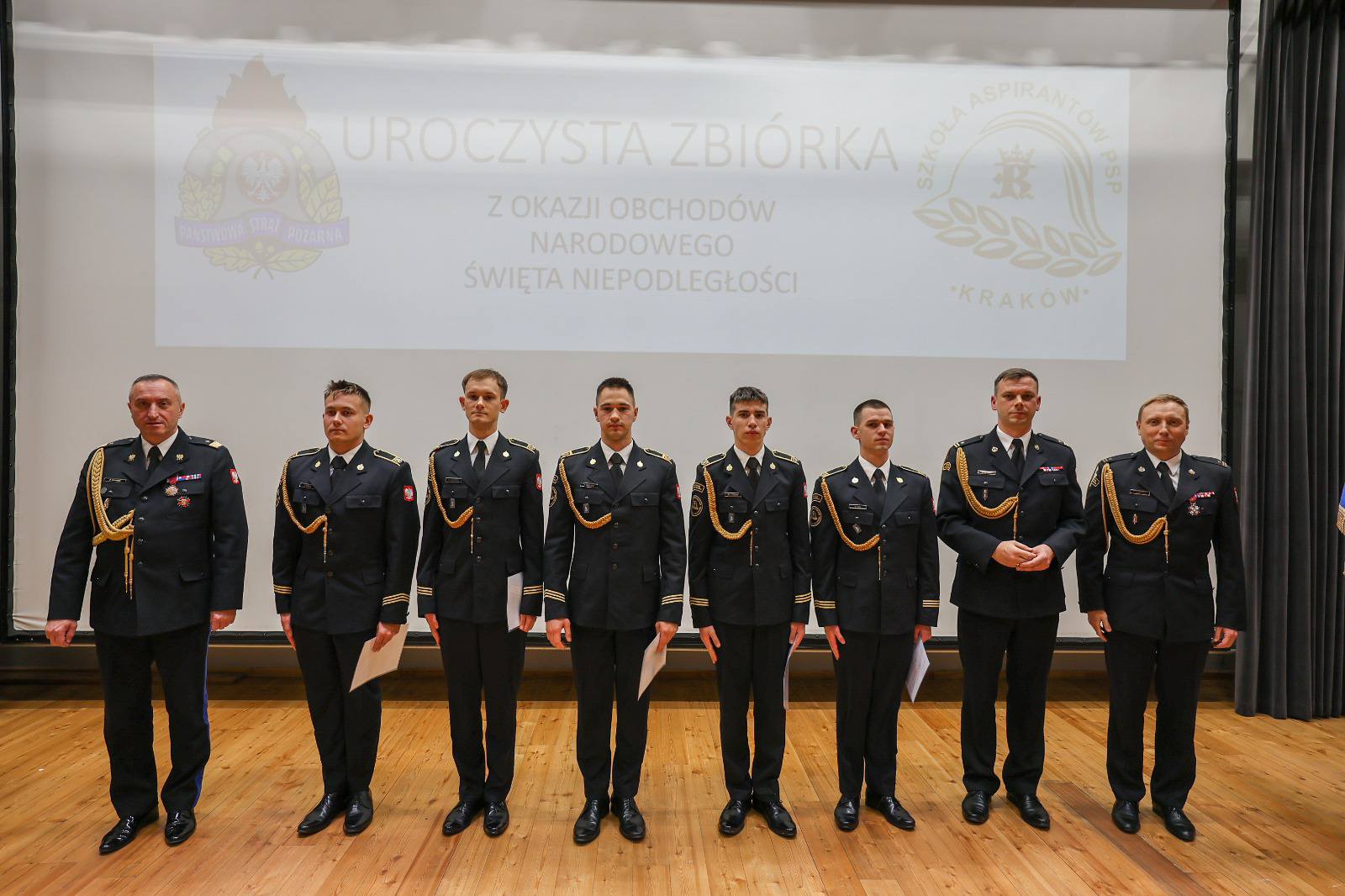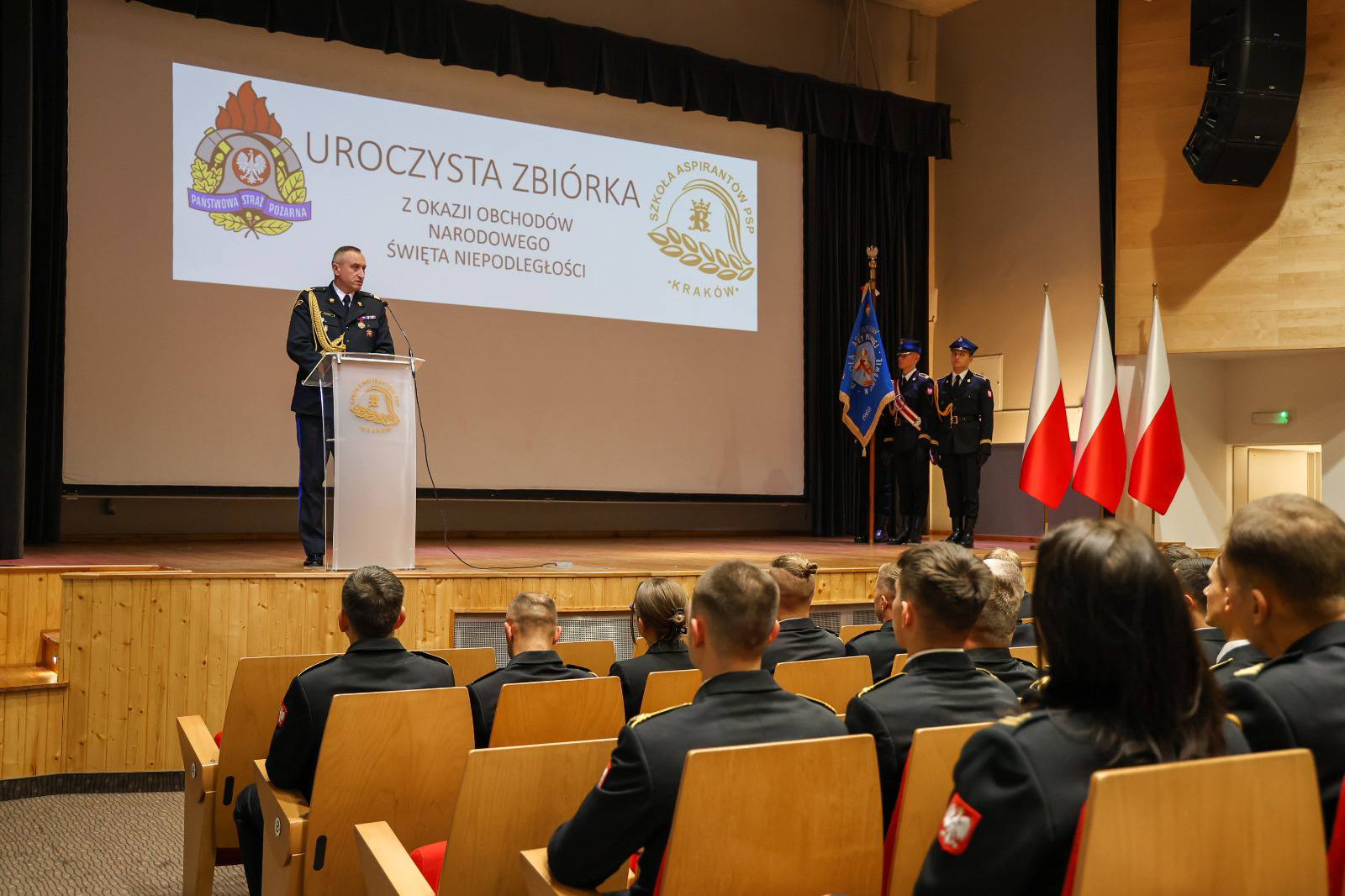 Uroczysta zbiórka z okazji Narodowego Święta Niepodległości w Szkole Aspirantów PSP w Krakowie