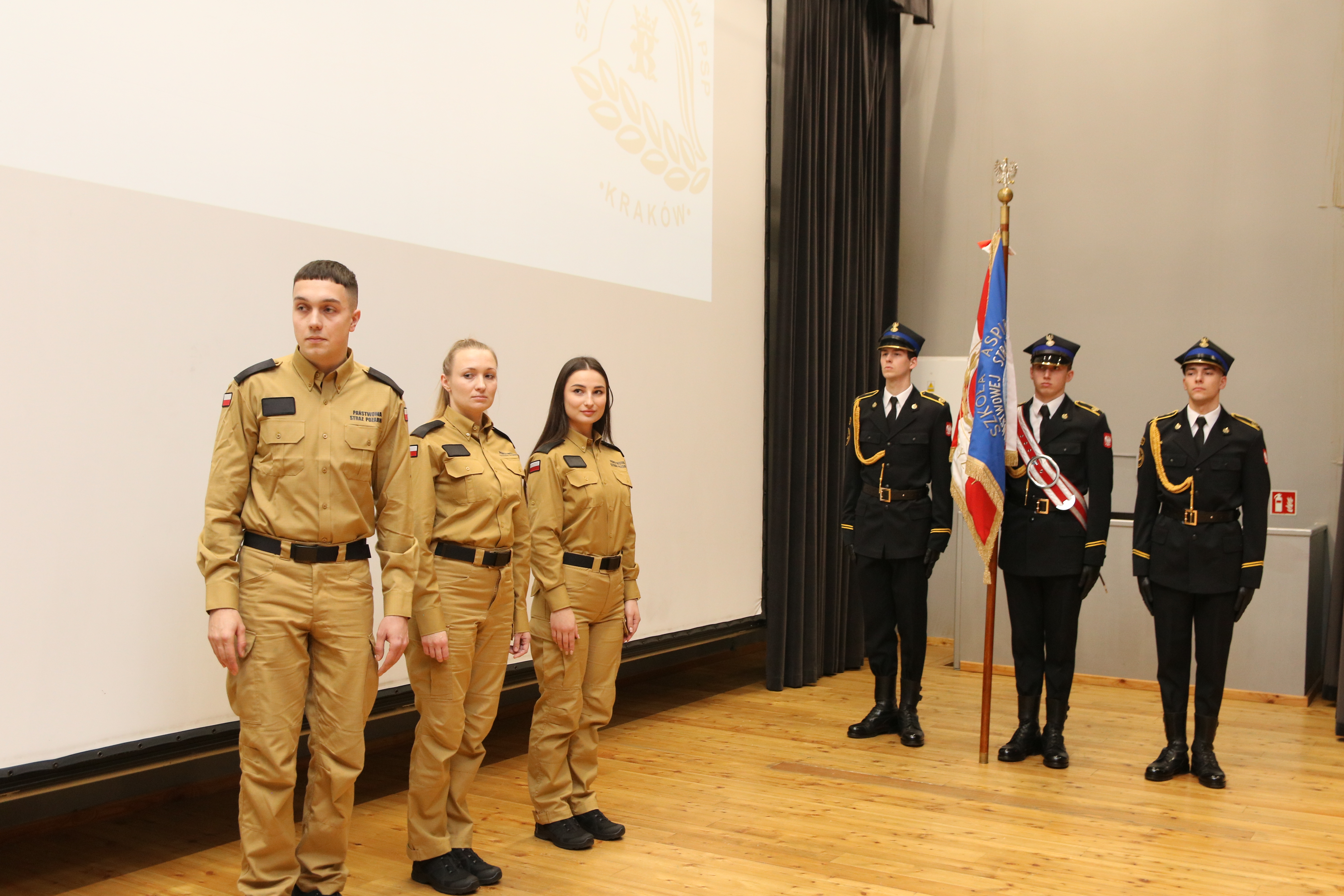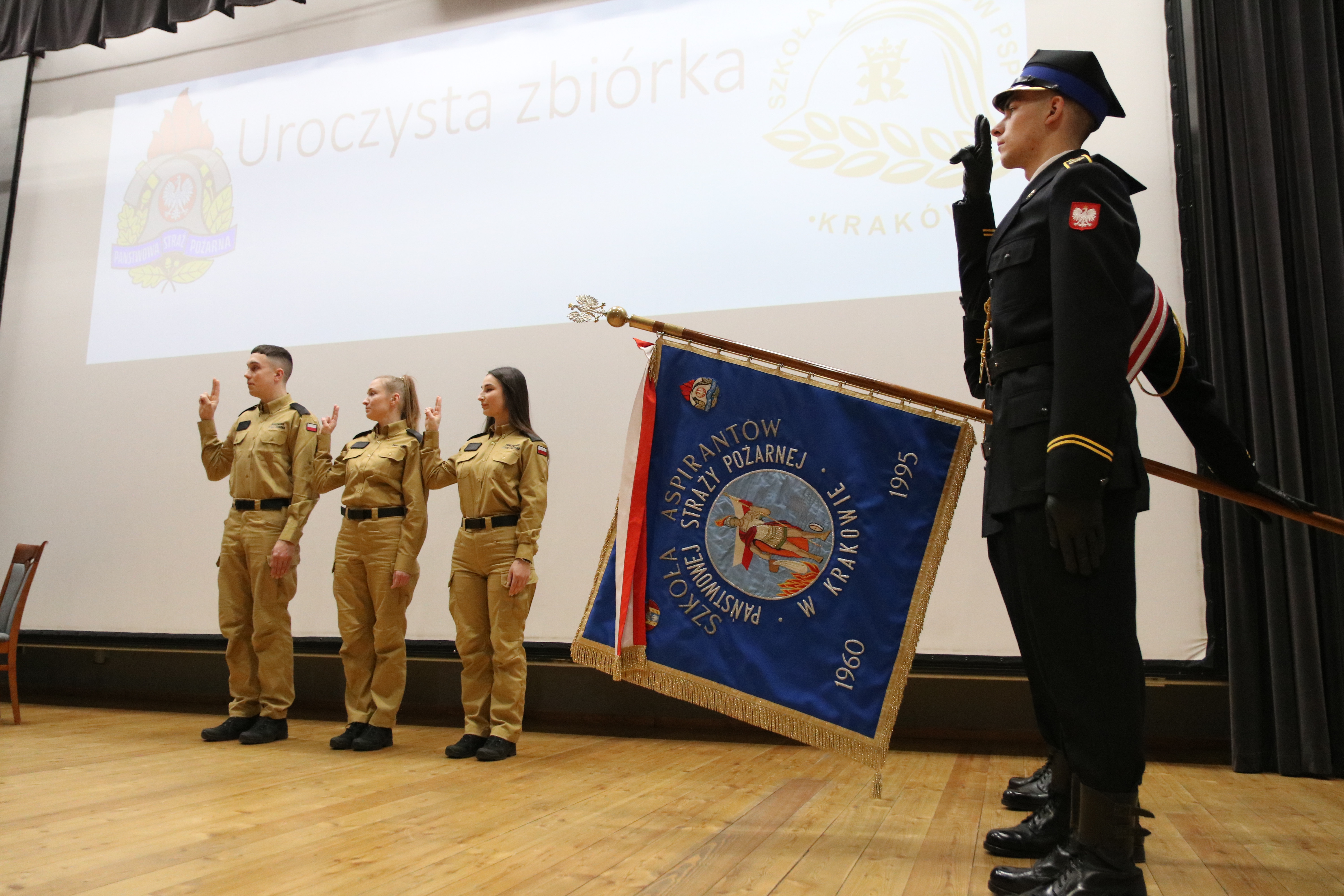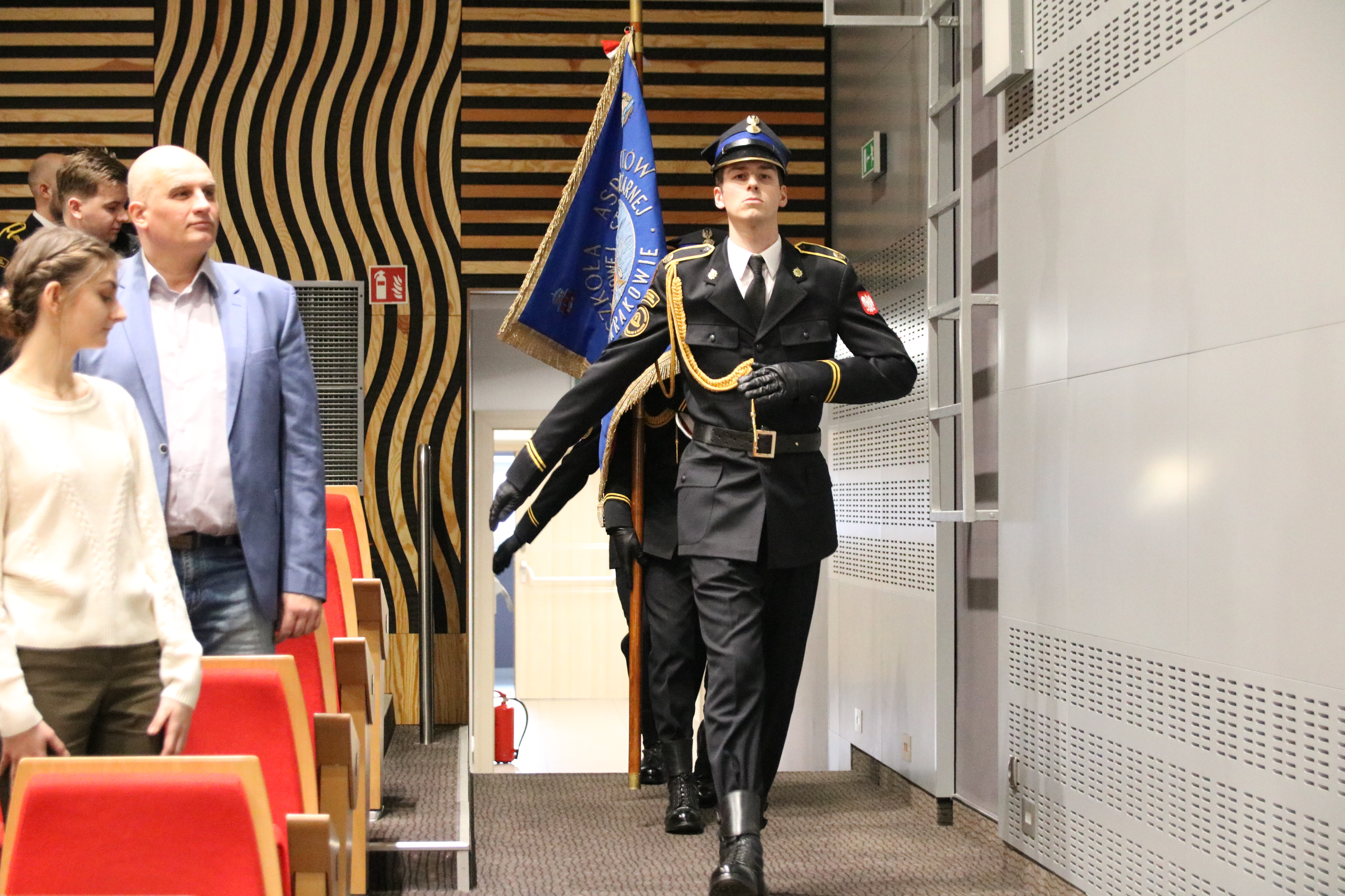 2 lutego 2024 roku w szczególny sposób zapisze się w pamięci czworga funkcjonariuszy Państwowej Straży Pożarnej. Tego dnia bowiem z kadrą, kadetami i murami Szkoły pożegnał się przechodzący na zaopatrzenie emerytalne st.asp. Mariusz Winkler a szeregi funkcjonariuszy PSP, poprzez złożenie ślubowania, zasiliły trzy osoby: str. Patryk Hebda, str. Faustyna Maniecka oraz str. Emilia Marzec.