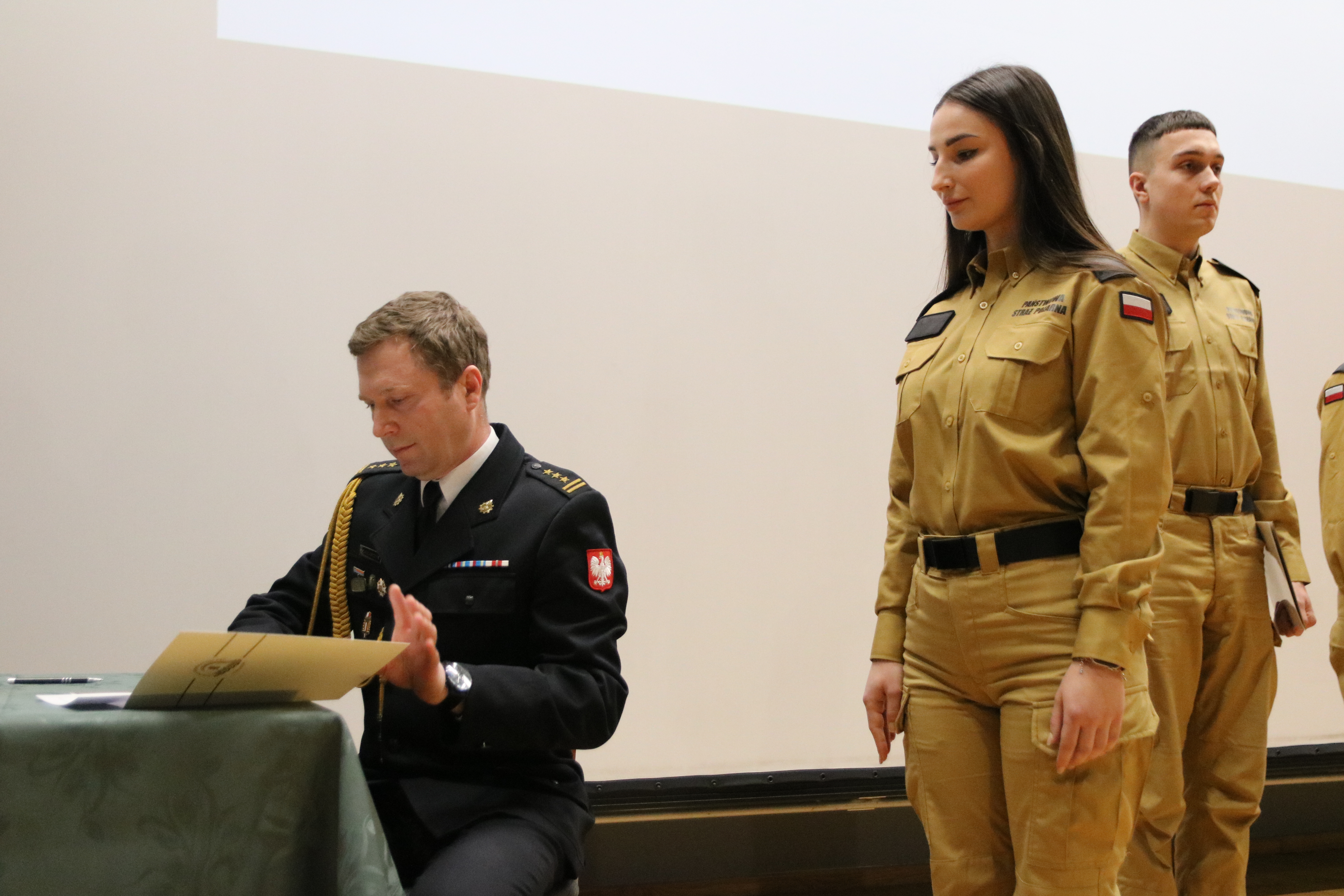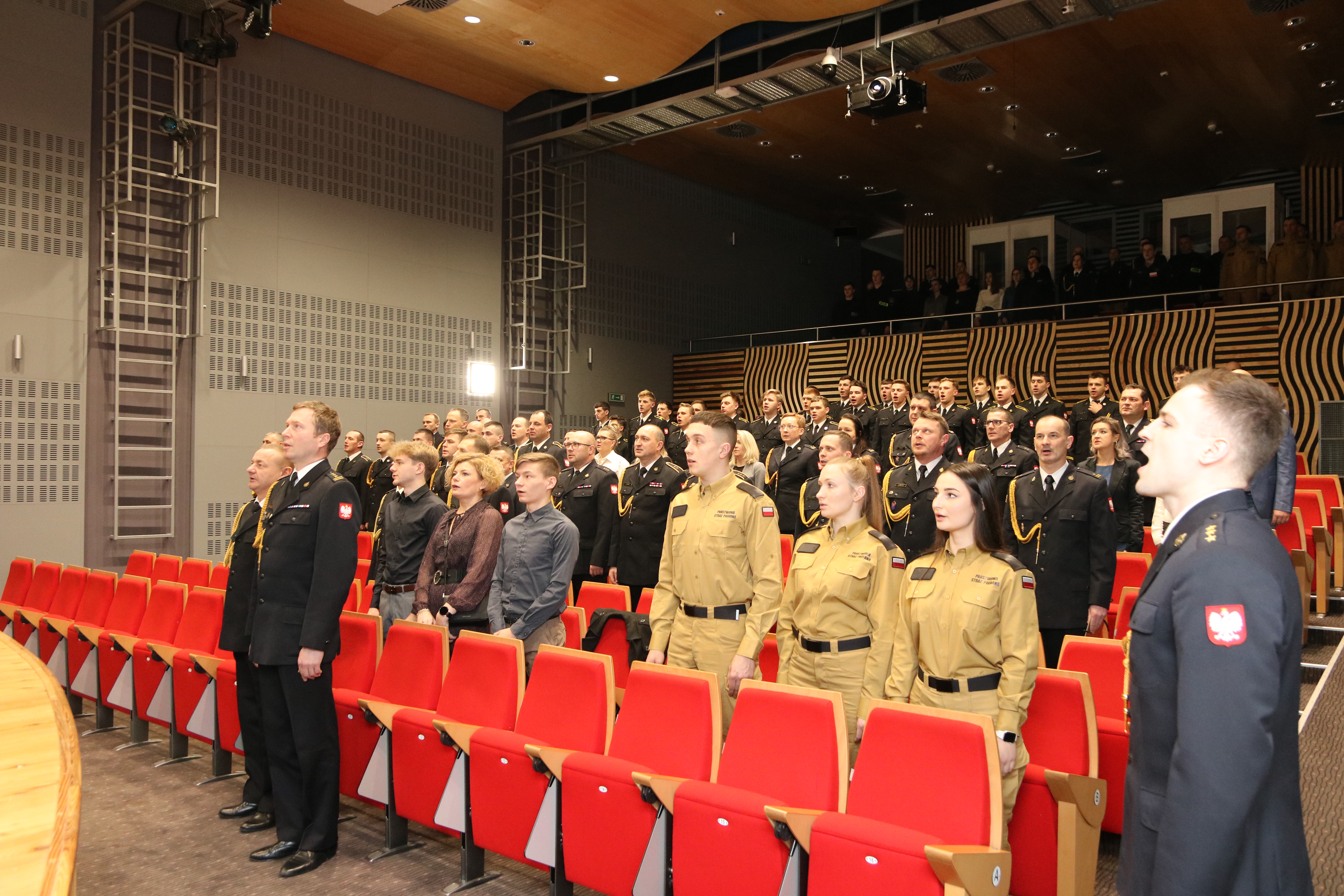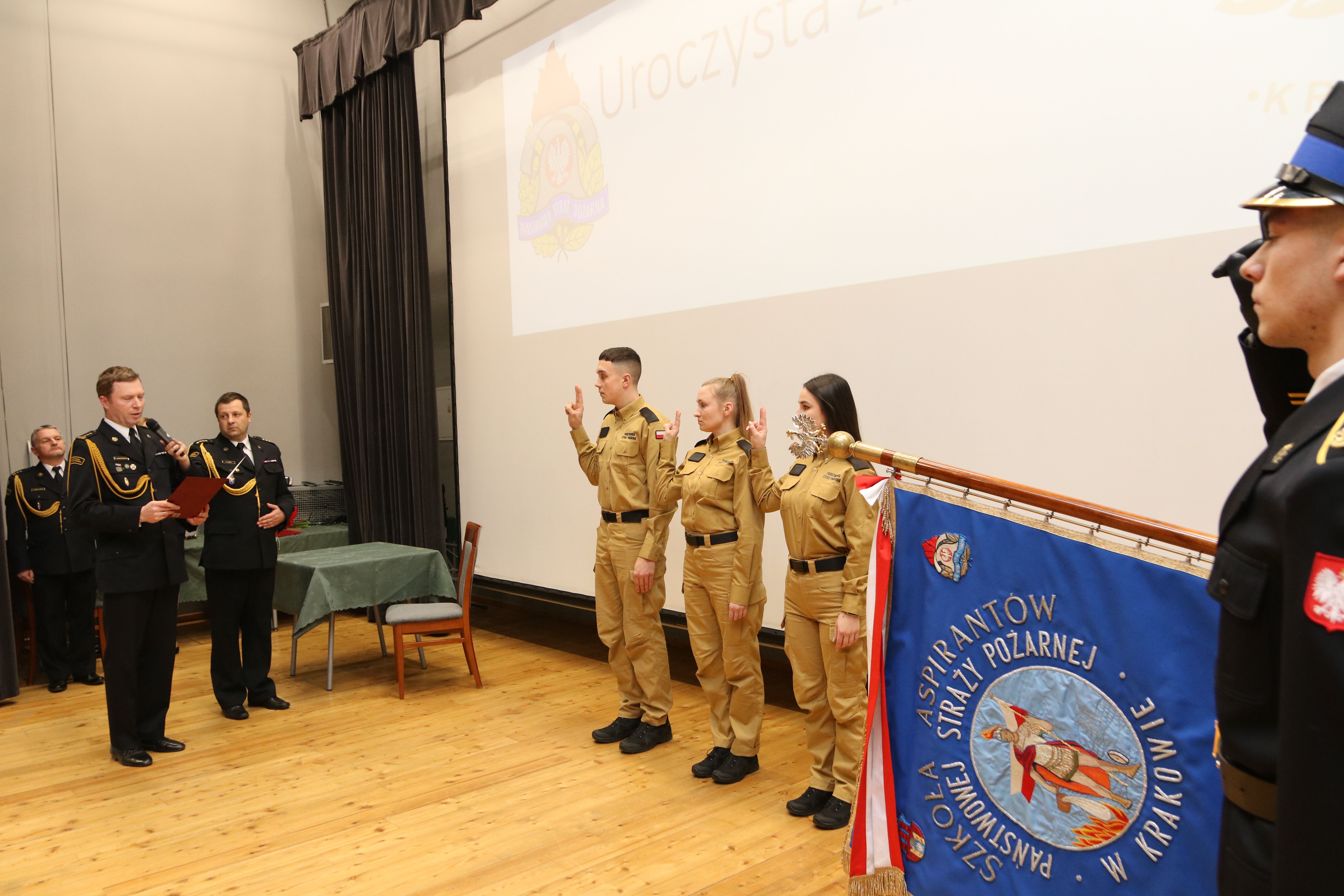 2 lutego 2024 roku w szczególny sposób zapisze się w pamięci czworga funkcjonariuszy Państwowej Straży Pożarnej. Tego dnia bowiem z kadrą, kadetami i murami Szkoły pożegnał się przechodzący na zaopatrzenie emerytalne st.asp. Mariusz Winkler a szeregi funkcjonariuszy PSP, poprzez złożenie ślubowania, zasiliły trzy osoby: str. Patryk Hebda, str. Faustyna Maniecka oraz str. Emilia Marzec.