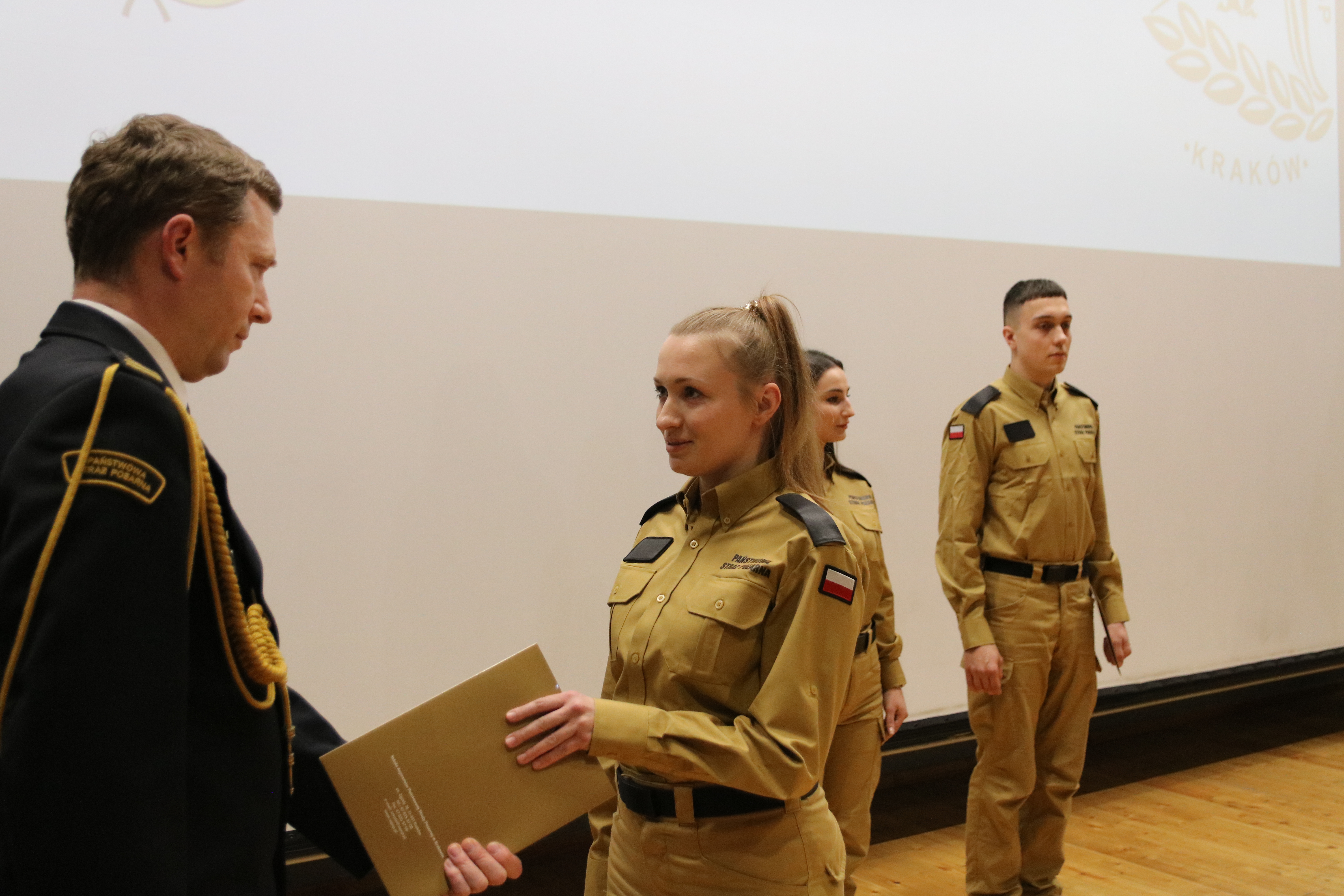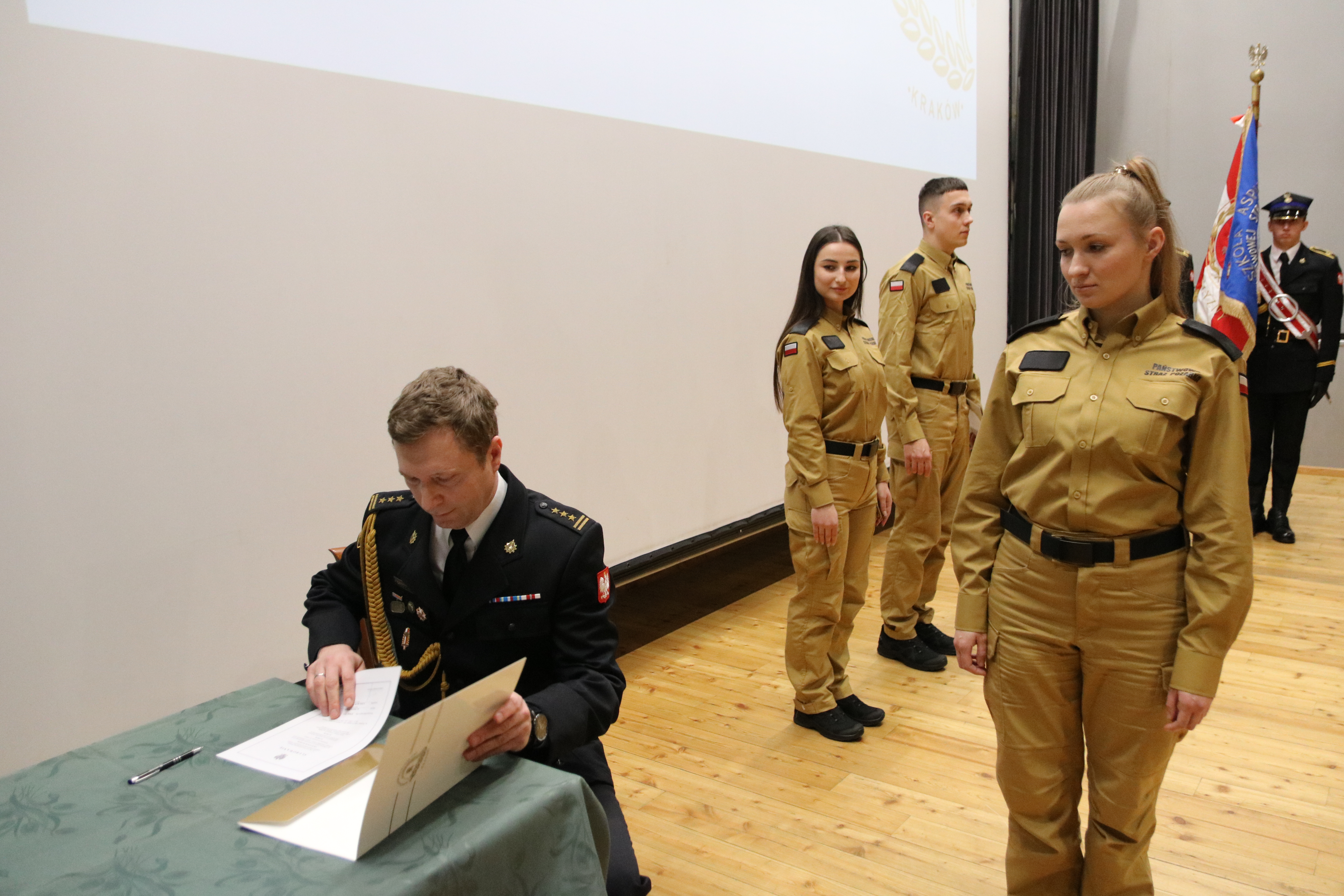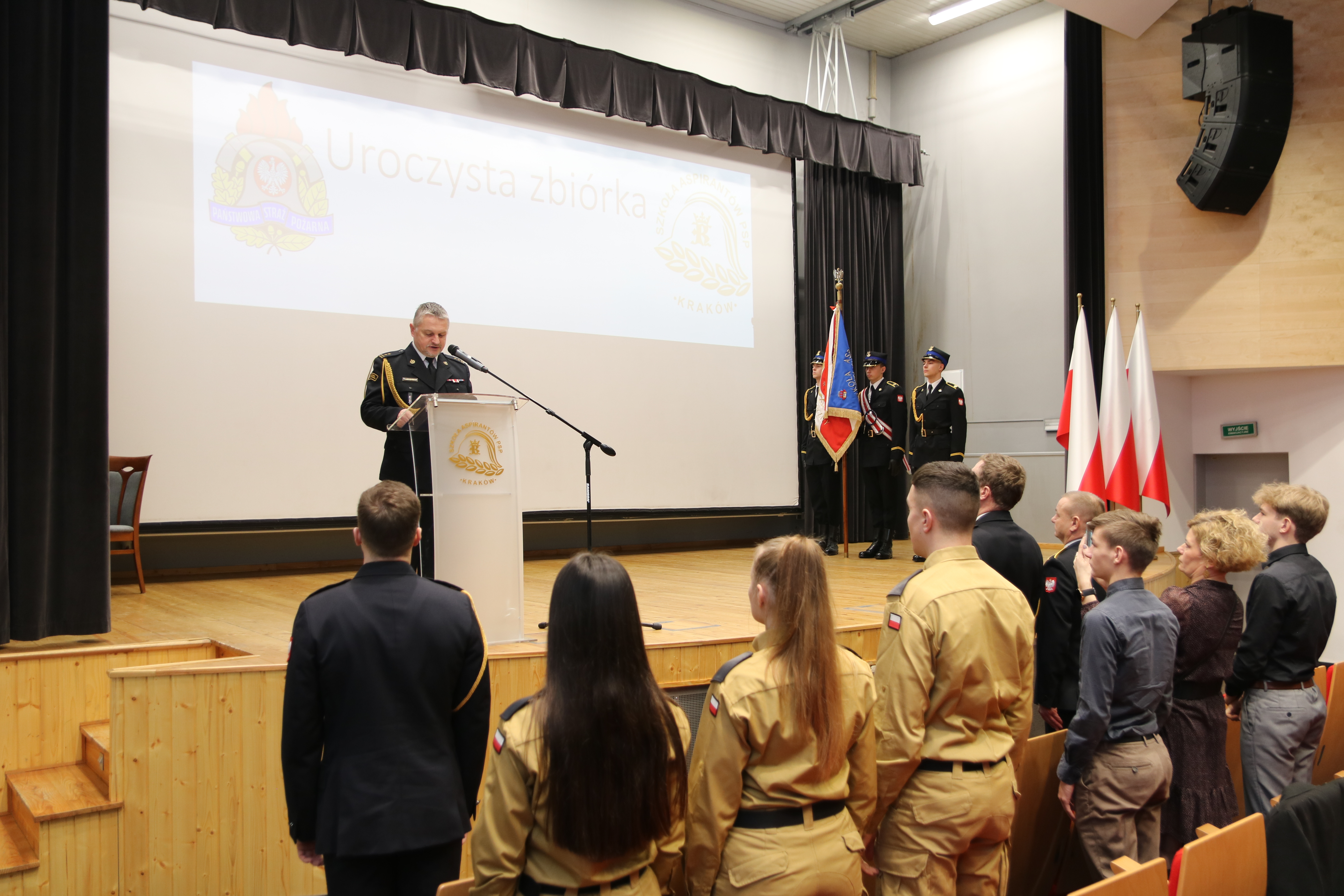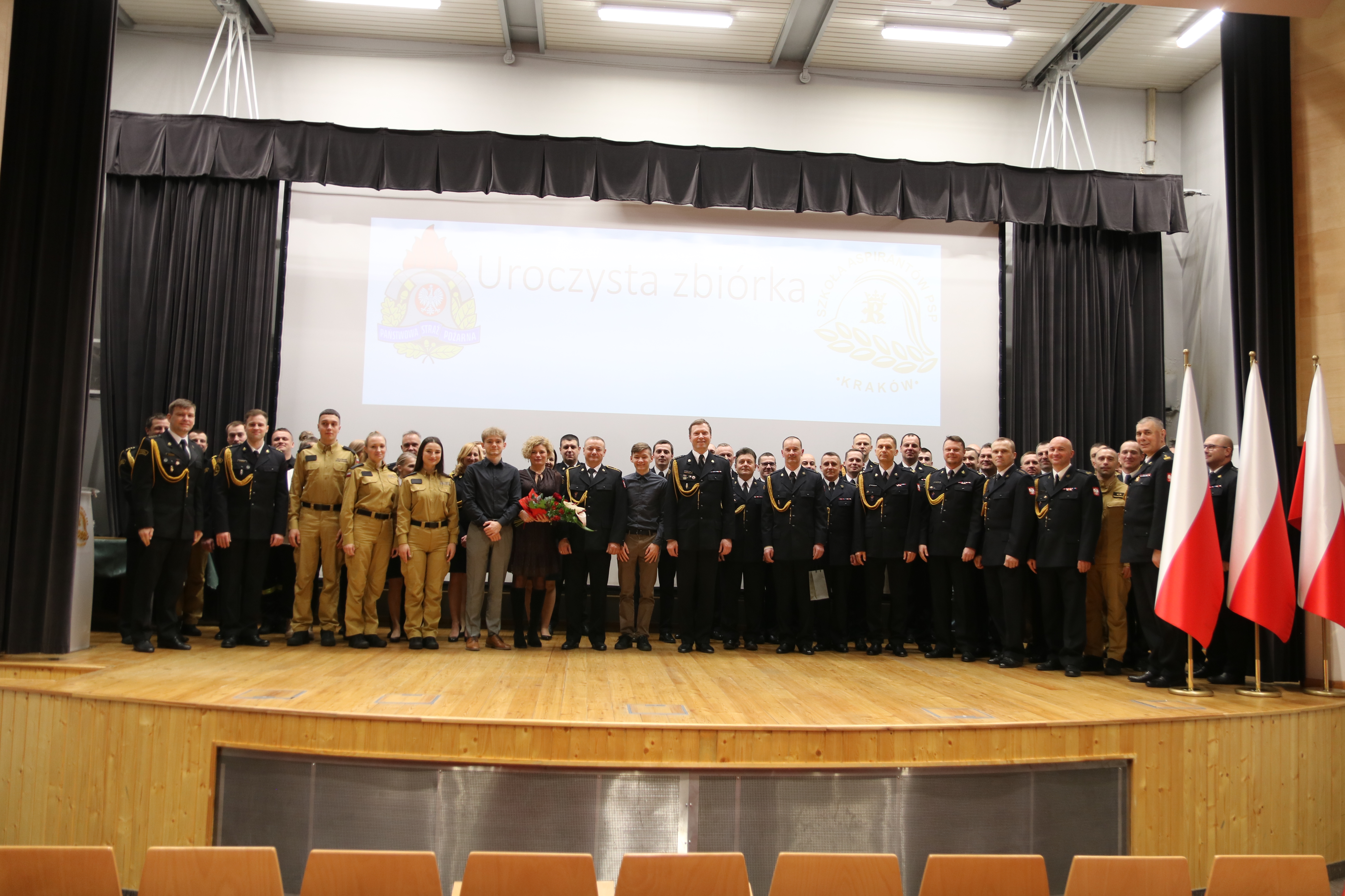 Uroczysta zbiórka z okazji pożegnania oraz ślubowania funkcjonariuszy SA PSP w Krakowie