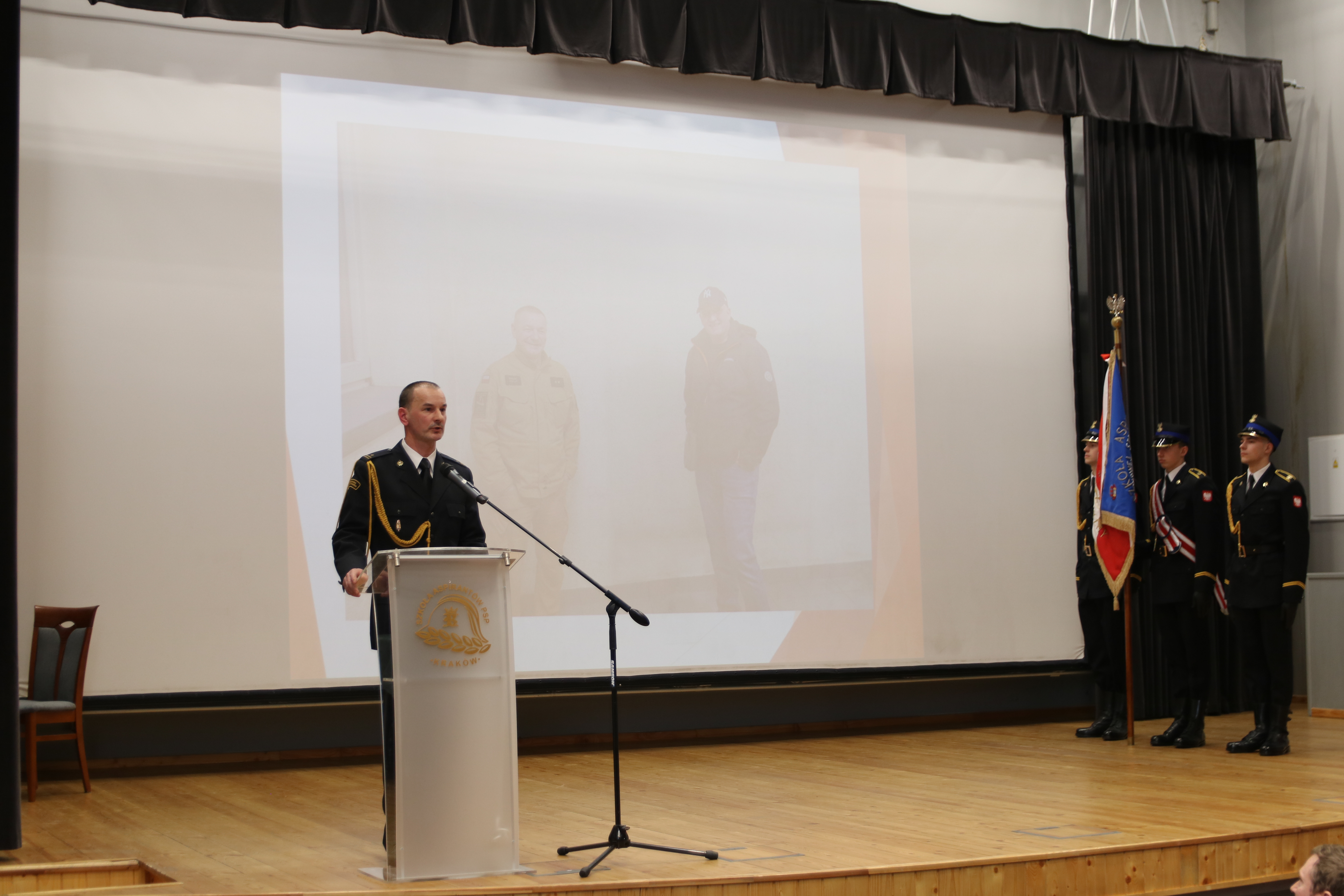 Jako pierwszy do zgromadzonych zwrócił się p.o. Komendant Szkoły st.bryg. Piotr Gancarczyk, swoimi przemyśleniami, refleksjami i wspomnieniami, podzielili się także dowódca Szkolnej JRG mł.bryg. Michał Gąska, dowódca zmiany mł.bryg. Grzegorz Bodziony oraz w pożegnalnym przemówieniu st.asp. Mariusz Winkler.