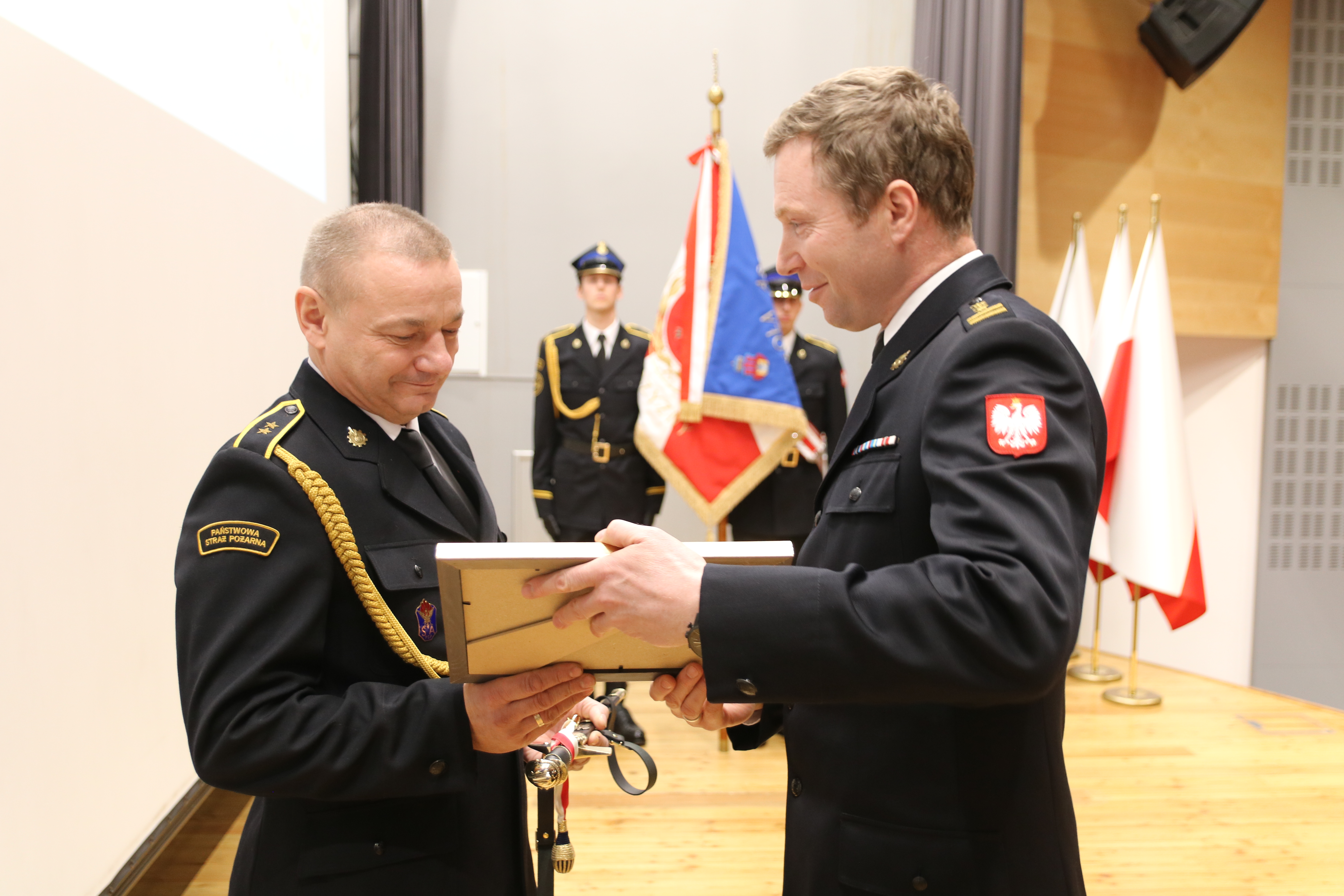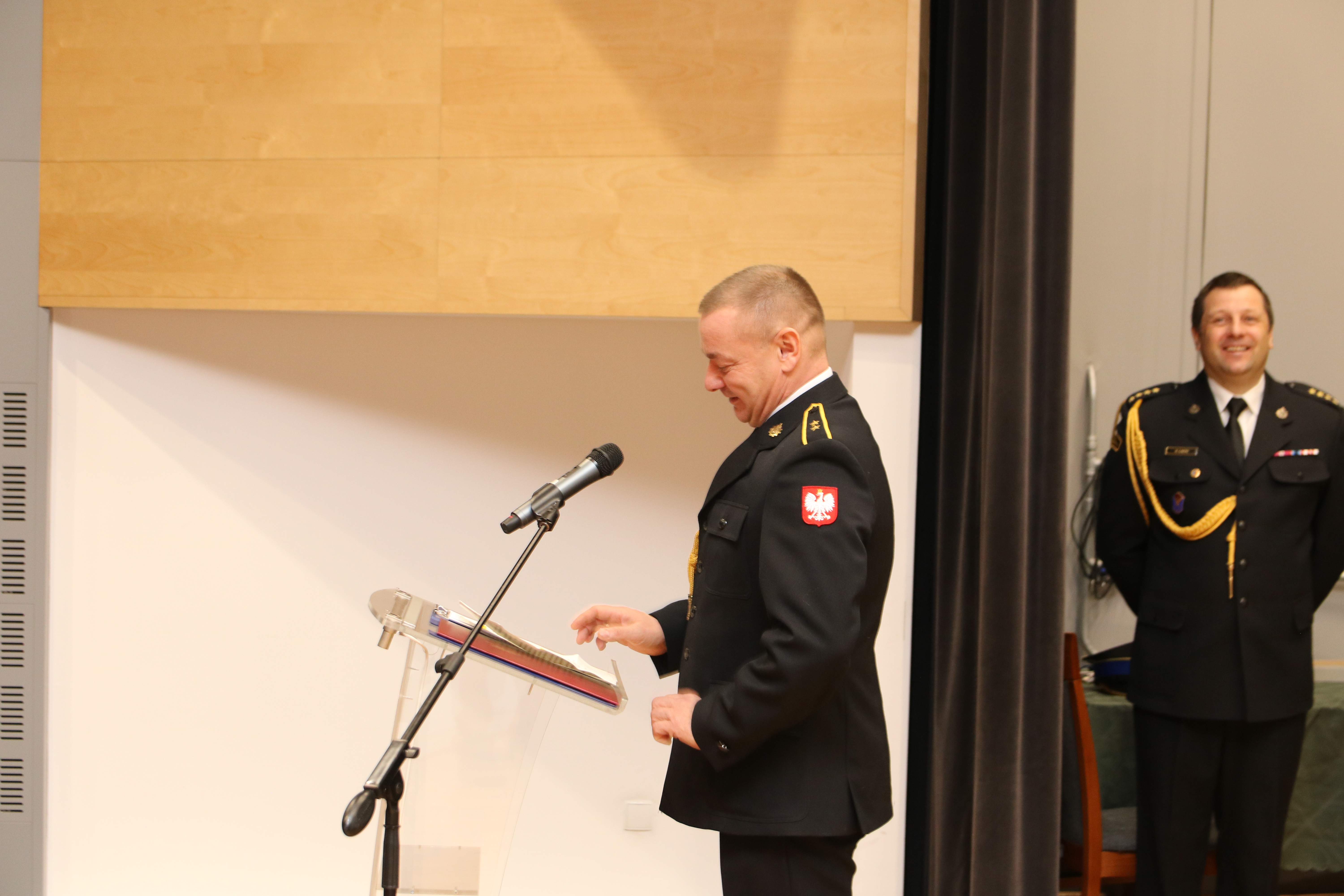 Bohaterem pierwszej części spotkania był opuszczający naszą formację st.asp. Mariusz Winkler, który z ust komendanta, przedstawiciela wydziału organizacyjno-kadrowego i bezpośrednich przełożonych miał okazję usłyszeć wiele ciepłych i nobilitujących słów dotyczących zarówno wzorowego przebiegu służby, jak i ponadprzeciętnego zaangażowania w realizację powierzonych zadań.