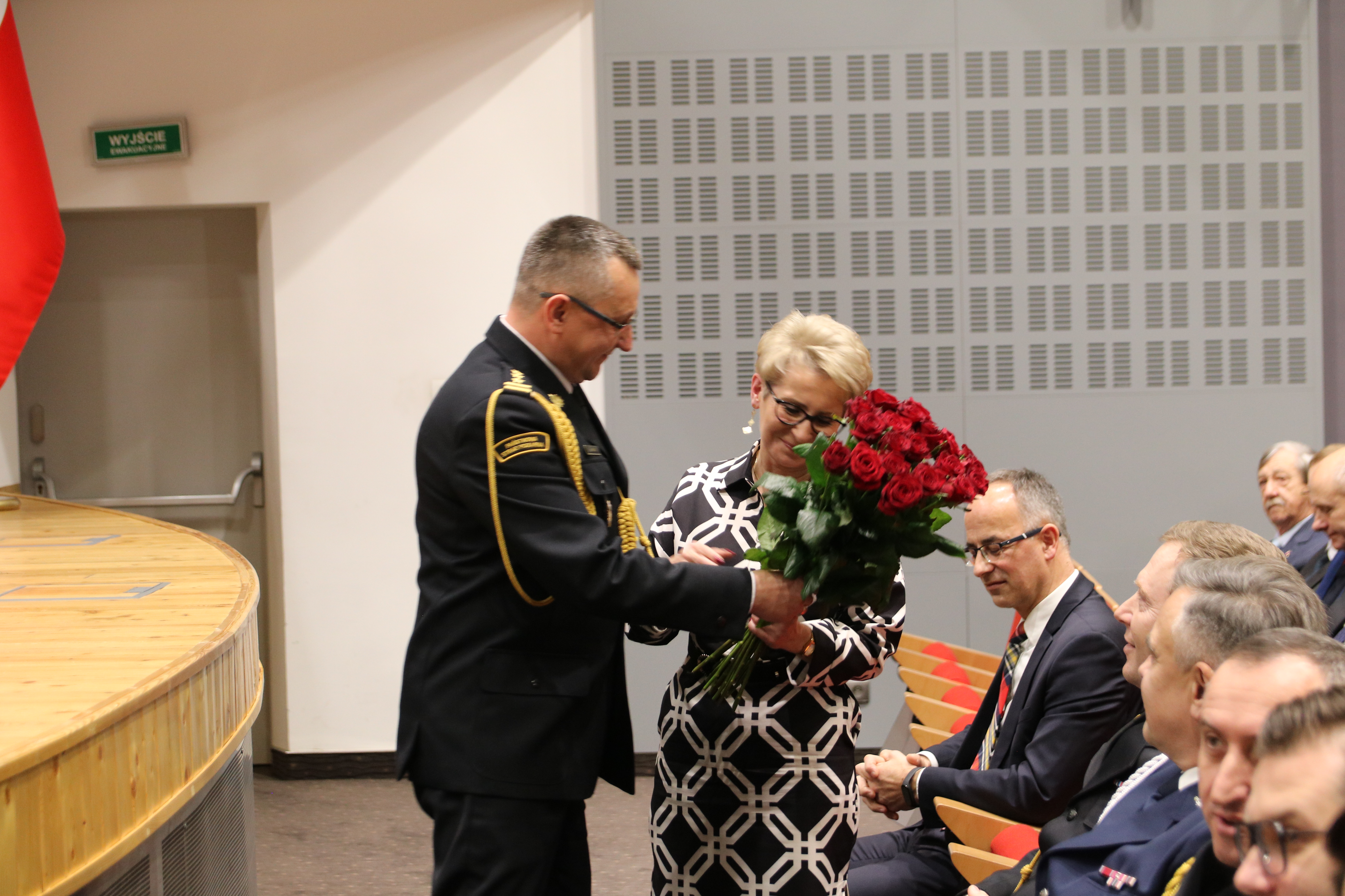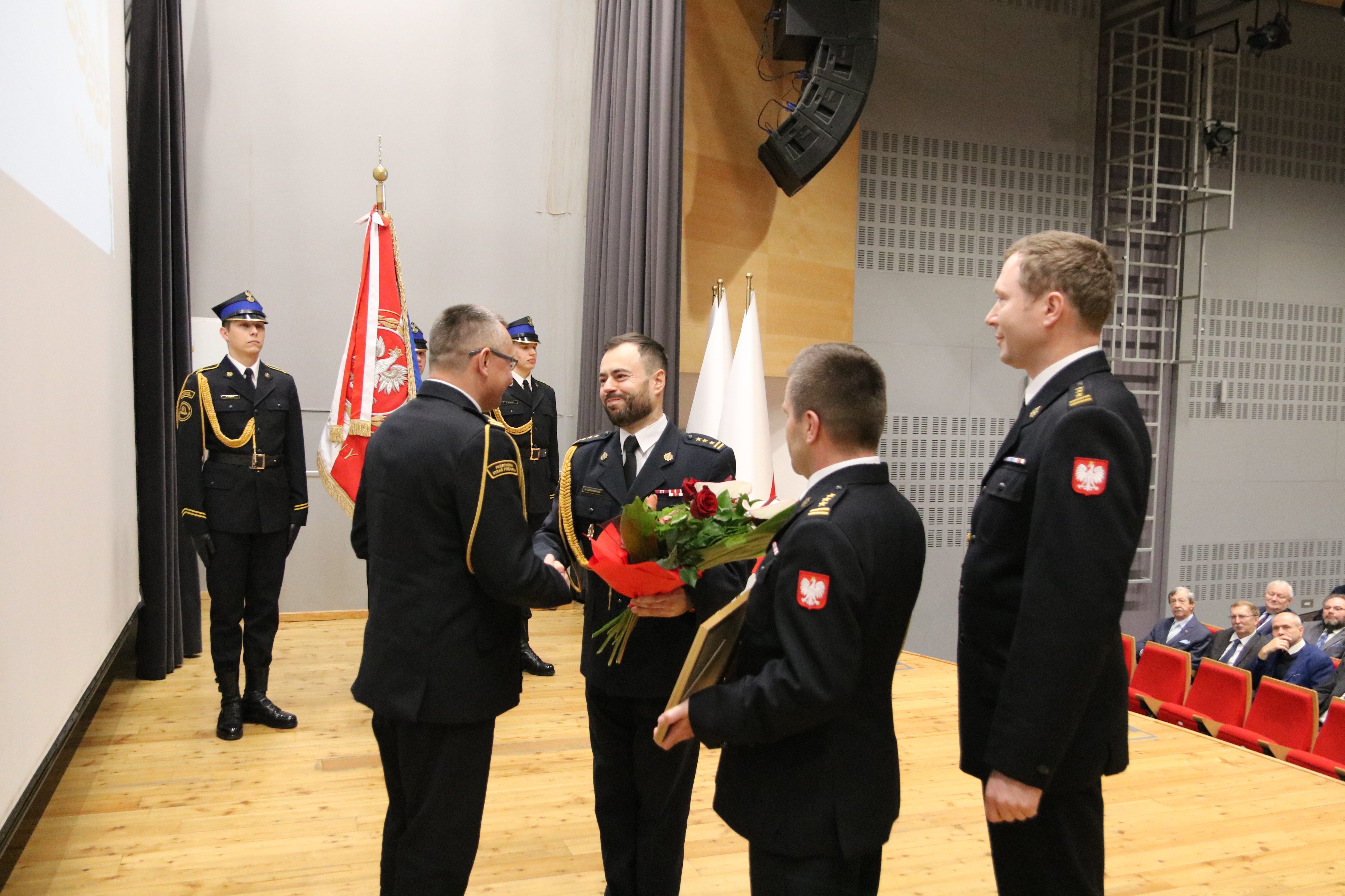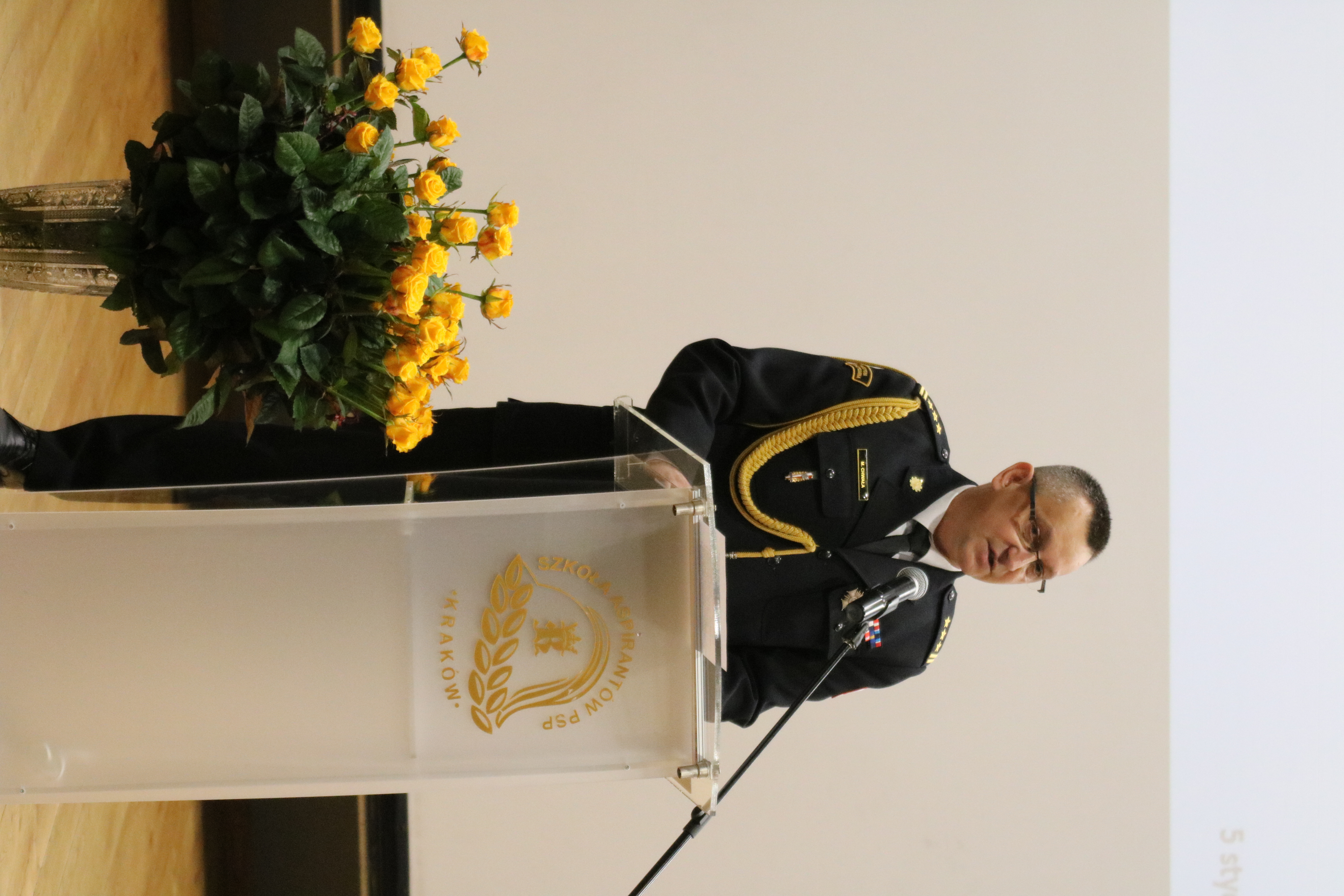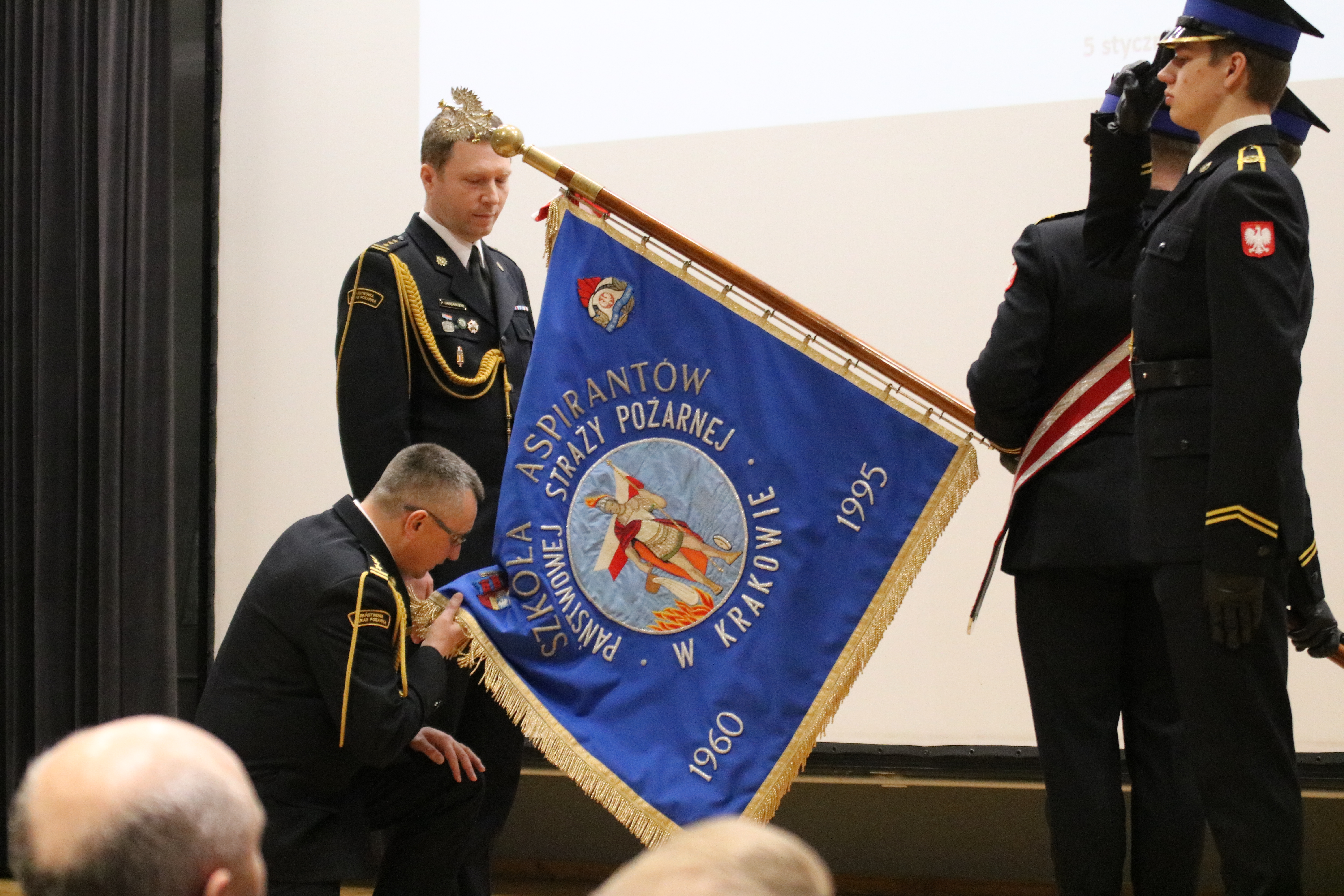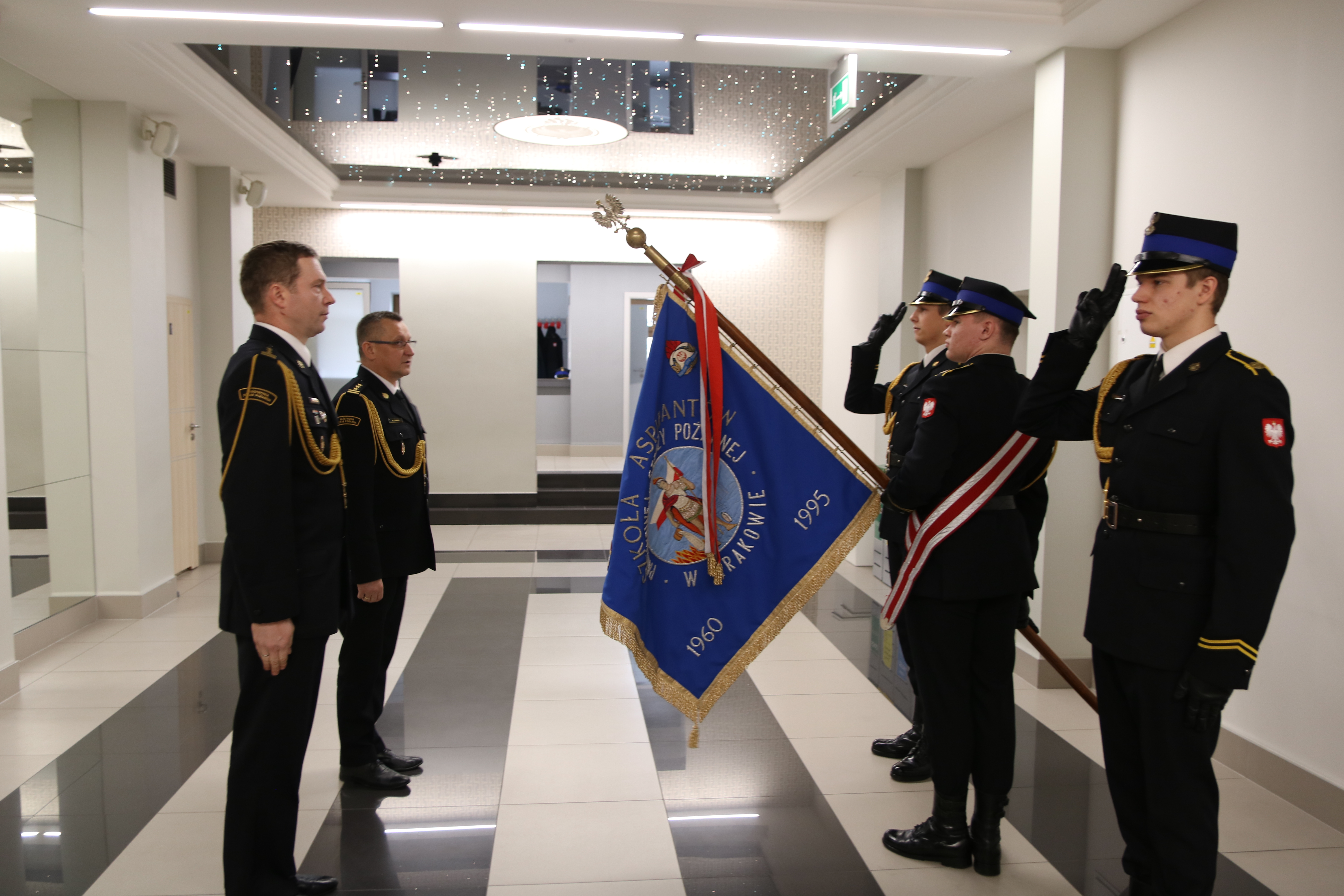 Kulminacyjnym momentem było odczytanie stosownej decyzji personalnej Komendanta Głównego Państwowej Straży Pożarnej oraz pożegnanie st.bryg. Marka Chwały ze sztandarem Szkoły.