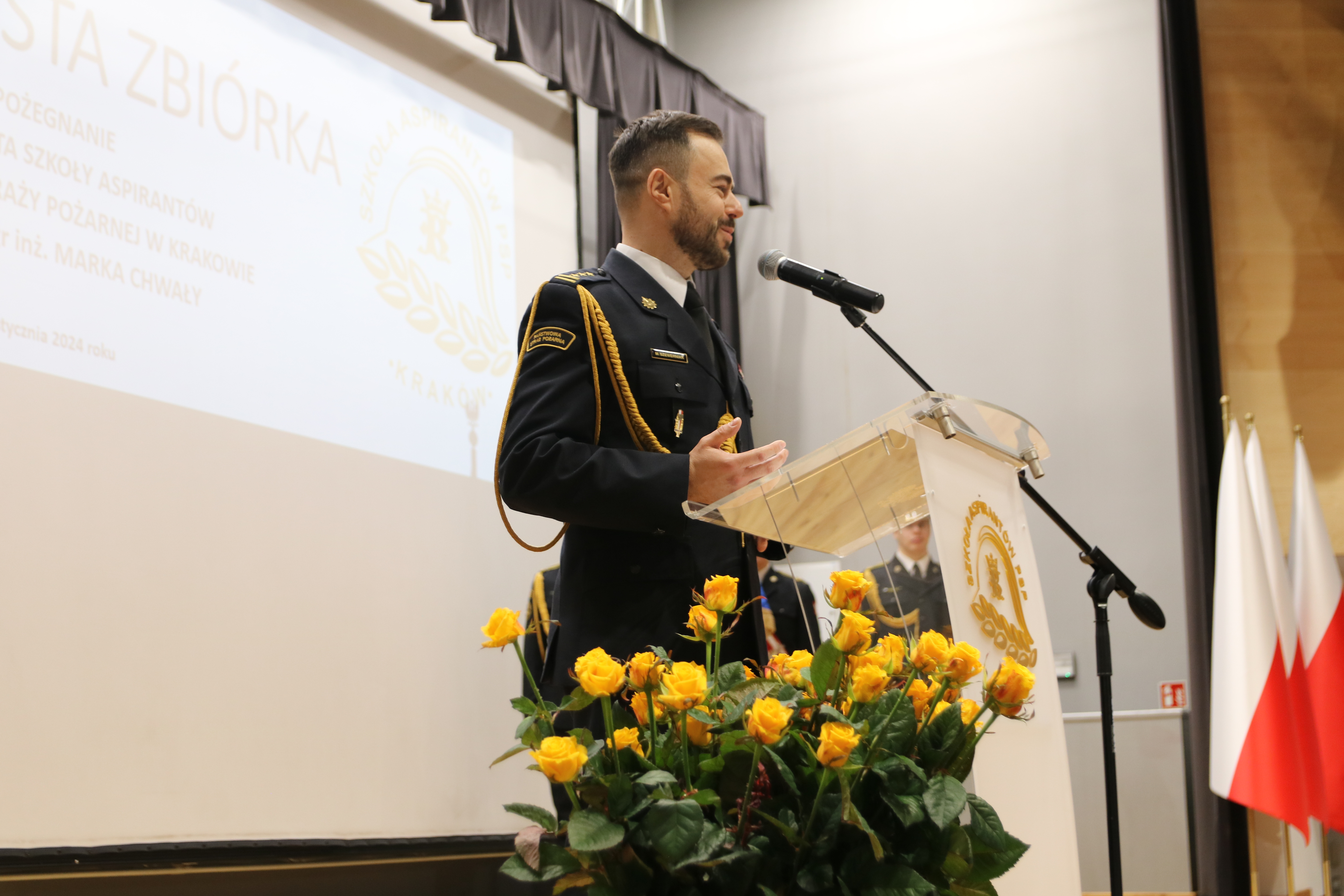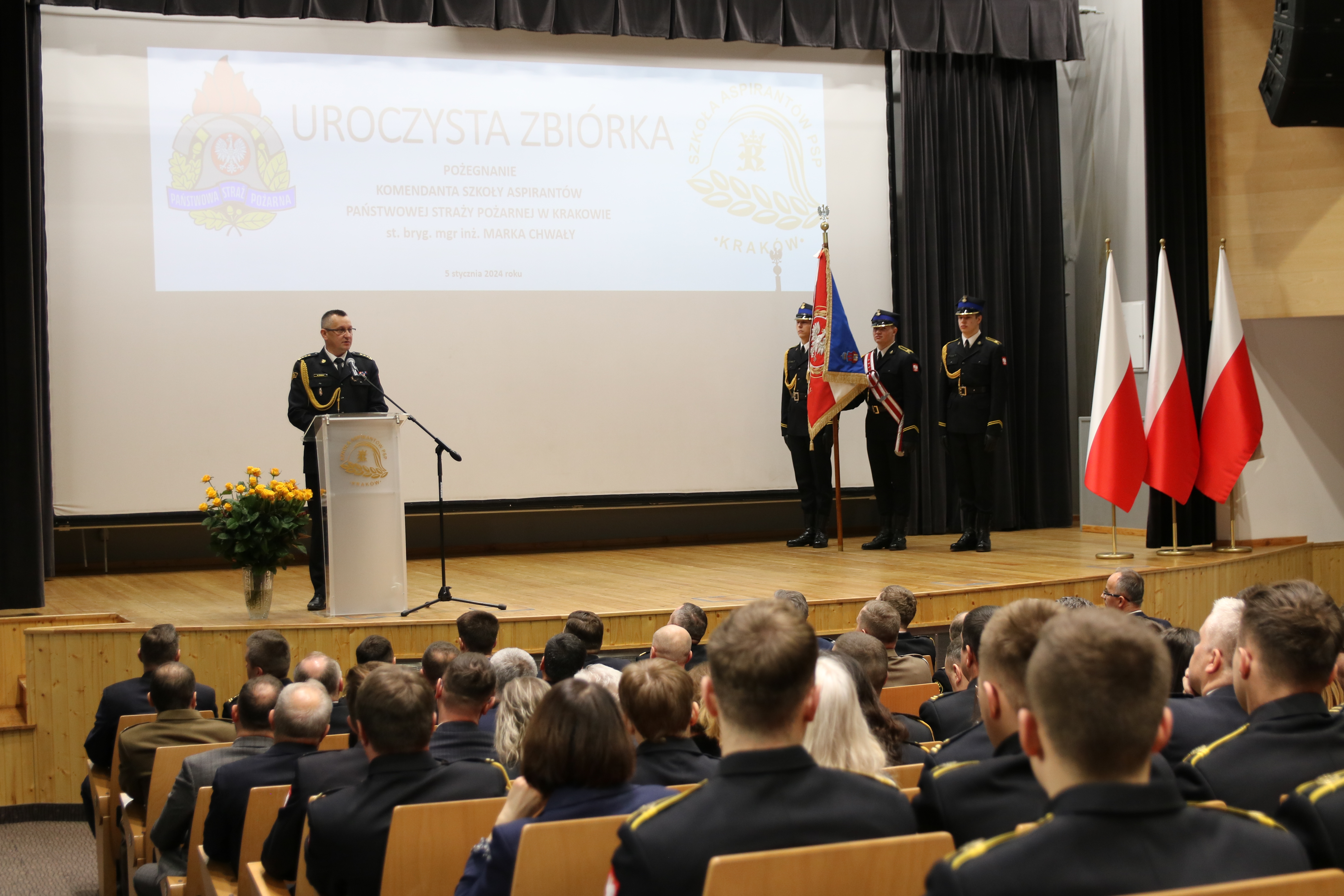 5 stycznia 2024 roku swoją służbę w Szkole Aspirantów, a zarazem w Państwowej Straży Pożarnej, zakończył st.bryg. Marek Chwała. Kończąc swoją pożarniczą karierę na stanowisku Komendanta Szkoły udowodnił, że ciężka praca i poznawanie zawodowego fachu od podszewki, jest receptą na życiowy sukces.