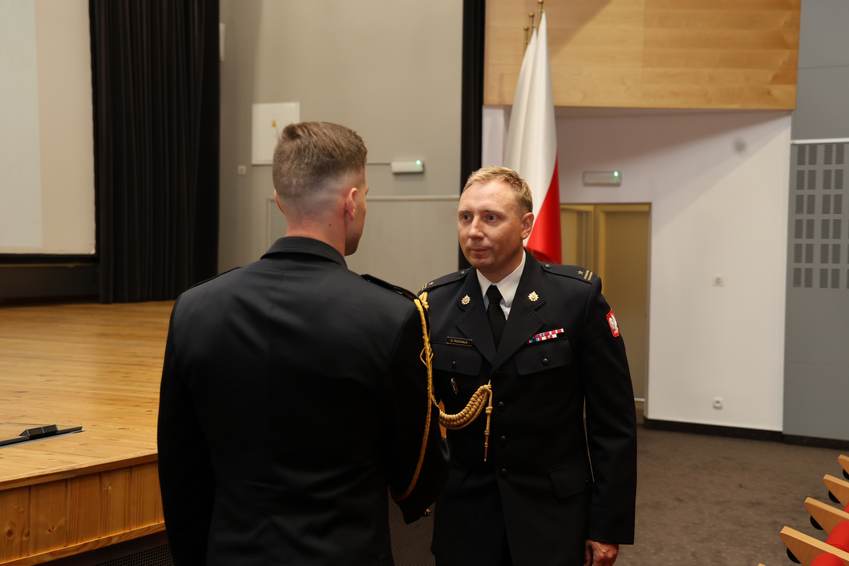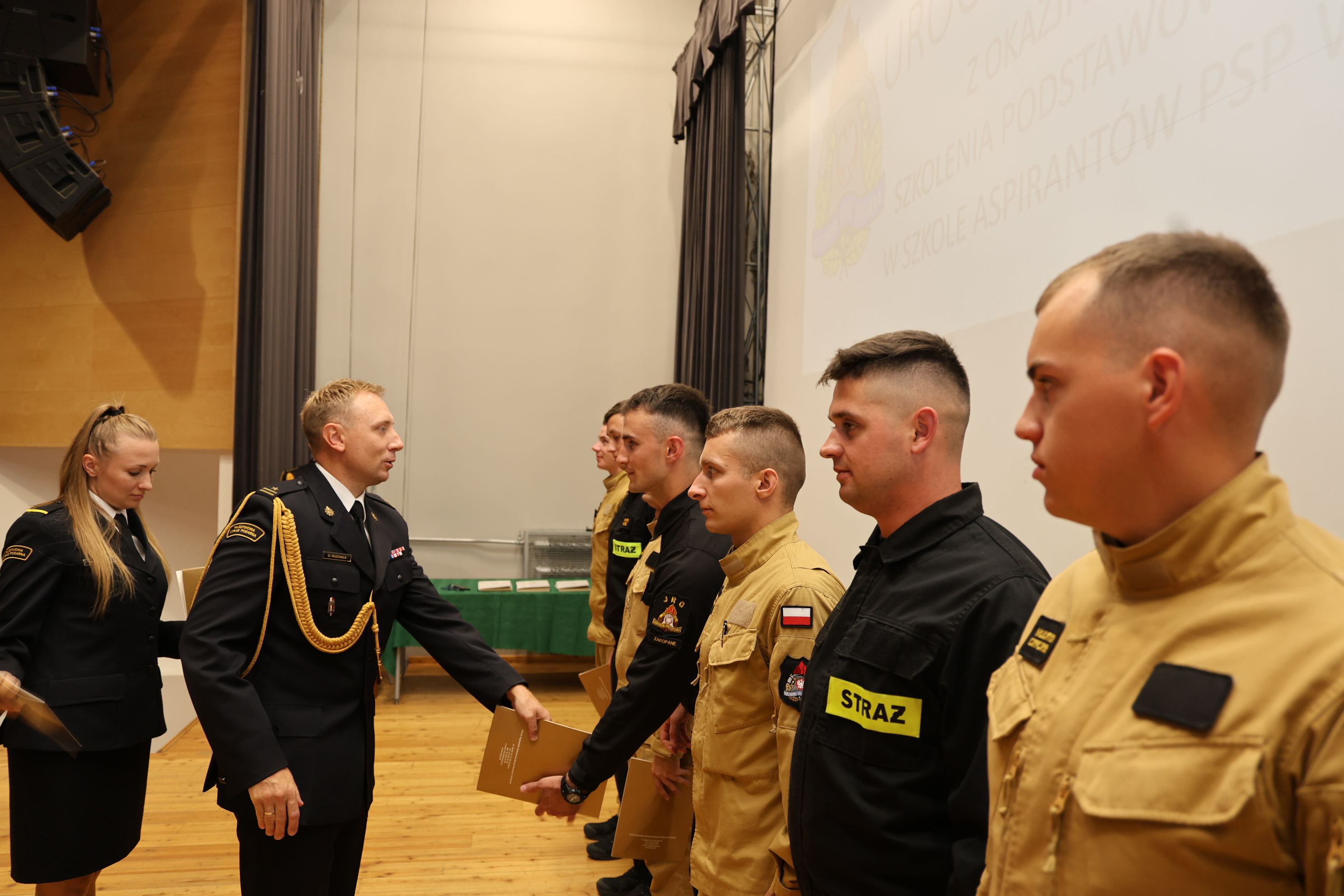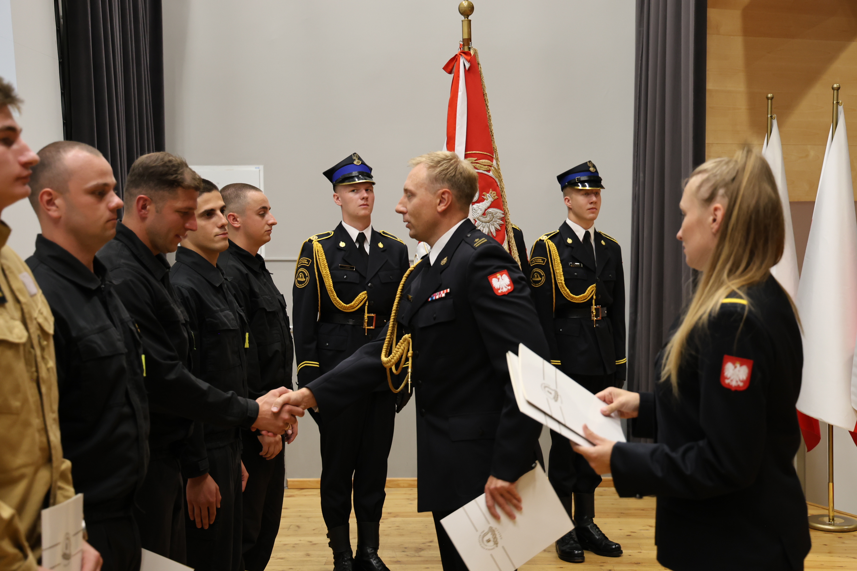 Wraz z absolwentami cieszymy się, że wszyscy dotarli do chwili, w której mogli z rąk Zastępcy Komendanta Szkoły mł.bryg. Dariusza Ruchały odebrać stosowne świadectwa, a wyróżniający się wzorową postawą i nienagannym zachowaniem, także listy gratulacyjne i indywidualne podziękowania. On też w ciepłych słowach podziękował uczestnikom za ogromny nakład pracy, również poza zajęciami dydaktycznymi, a kadrze za profesjonalizm połączony z elastycznością i umiejętnością dostosowywania się zmieniających okoliczności i wyzwań, przed którymi każdego dnia staje Szkoła.
