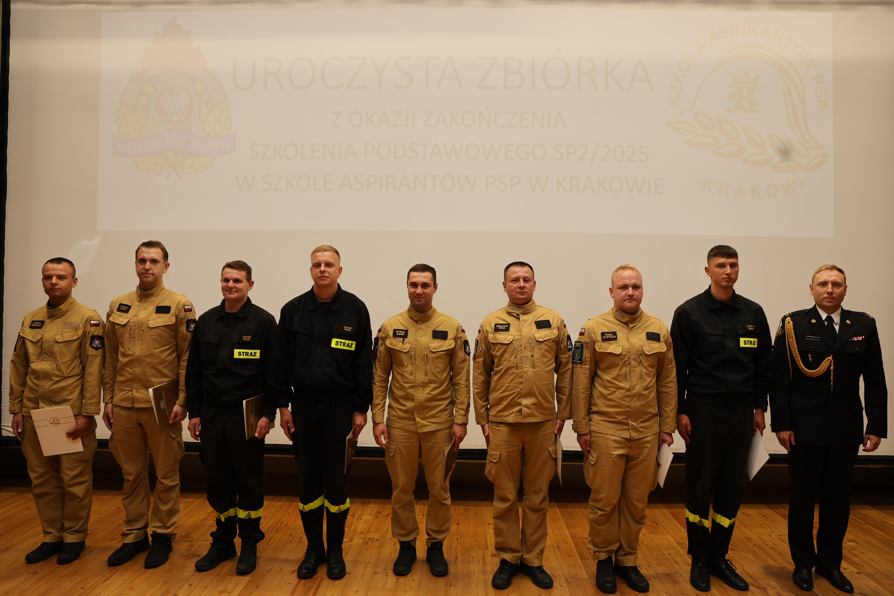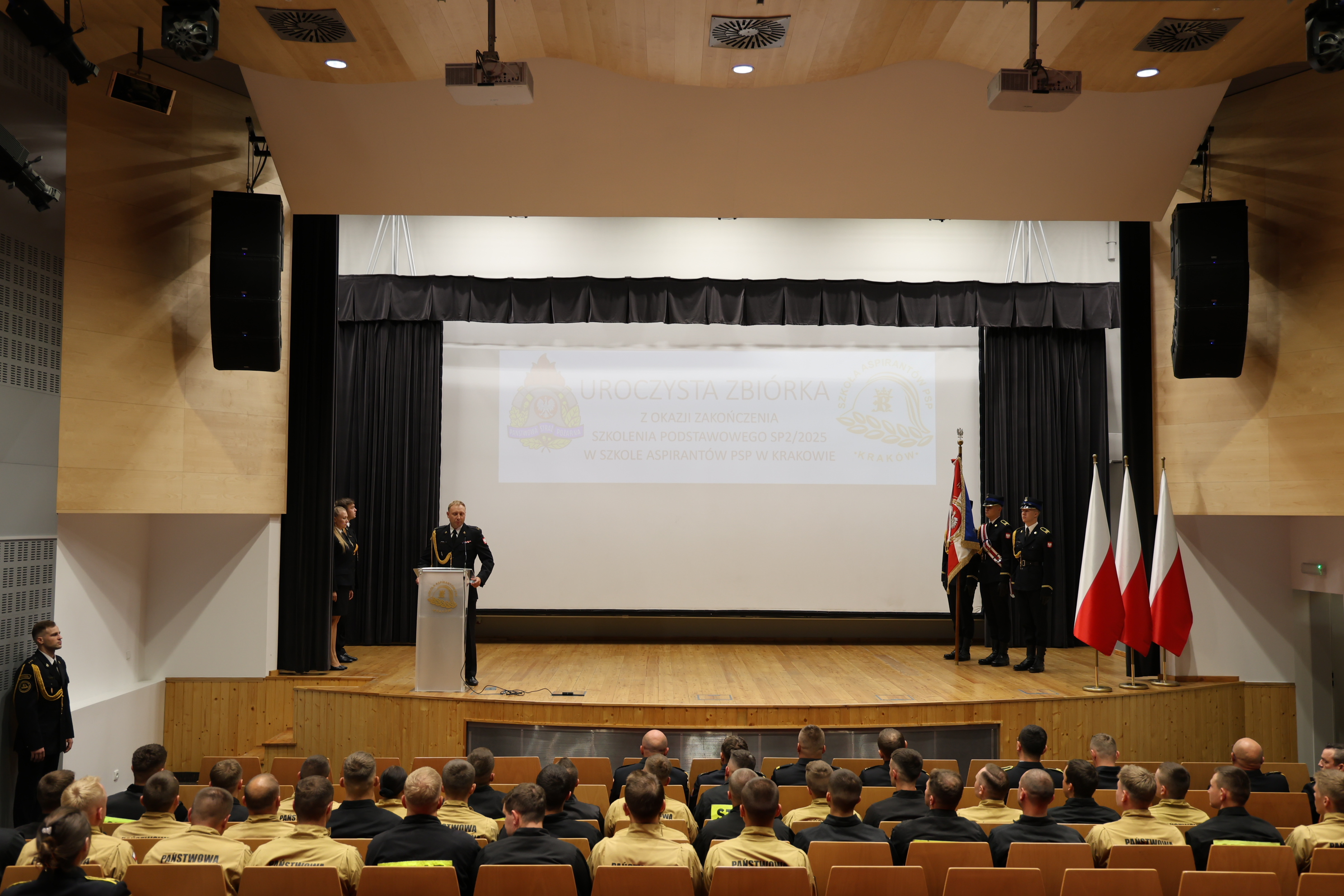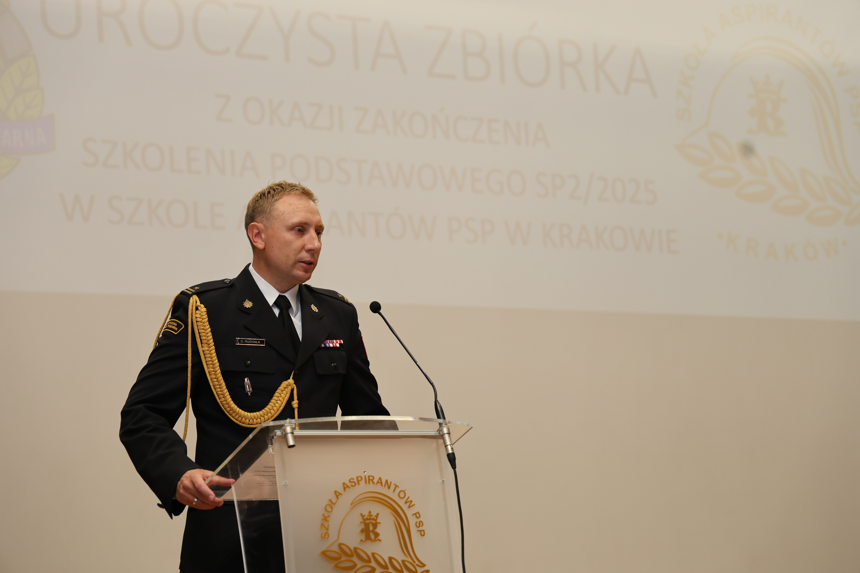 18 lipca 2025 roku, z obecnością przedstawicieli kierownictwa Szkoły i kadry dydaktyczno-wychowawczej, odbyło się uroczyste zakończenie szkolenia podstawowego w zawodzie strażak funkcjonującego w Szkole pod kryptonimem SP 2/25. W jego trakcie, od początku kwietnia br., tajniki pożarniczego rzemiosła poznawało 36 rozpoczynających swoją służbę w Państwowej Straży Pożarnej funkcjonariuszy. W tym czasie posiedli oni wiedzę i umiejętności niezbędne do wykonywania czynności ratowniczych na poziomie podstawowym. W ciągu blisko 500 godzin zajęć teoretycznych i praktycznych, zaliczeń oraz egzaminów słuchacze udowodnili, że wybór tak odpowiedzialnego zawodu, nie był dziełem przypadku. Ich zaangażowanie i dociekliwość, pomimo często niesprzyjających wysiłkowi fizycznemu warunków atmosferycznych panujących na przełomie czerwca i lipca, trwającego sezonu wakacyjnego i urlopowego, motywowała nas wszystkich do wytężonej pracy.