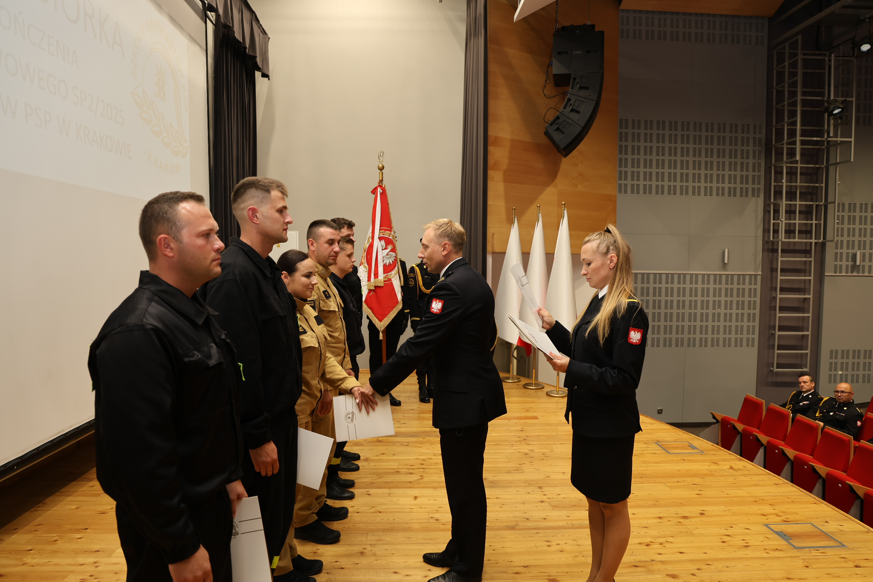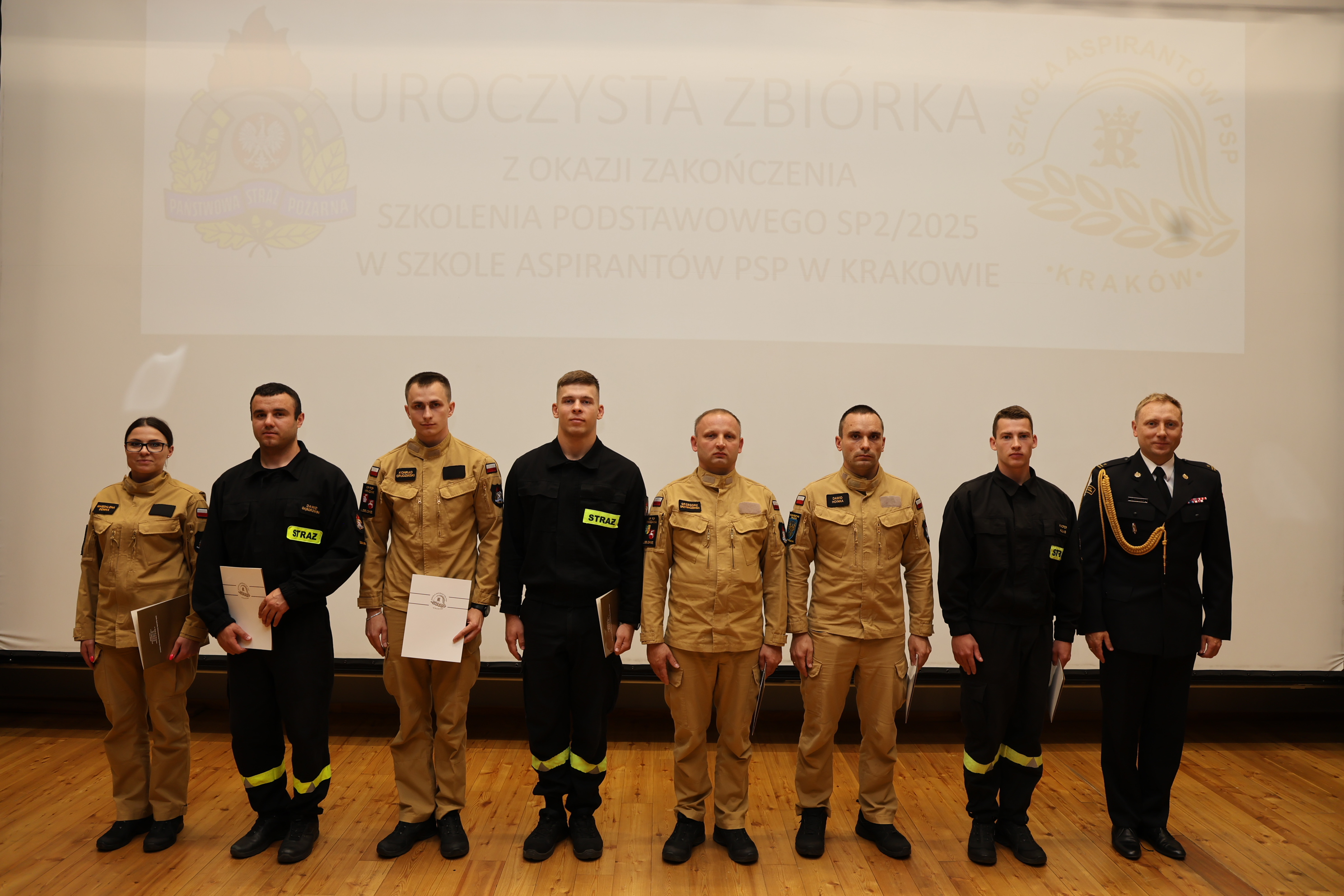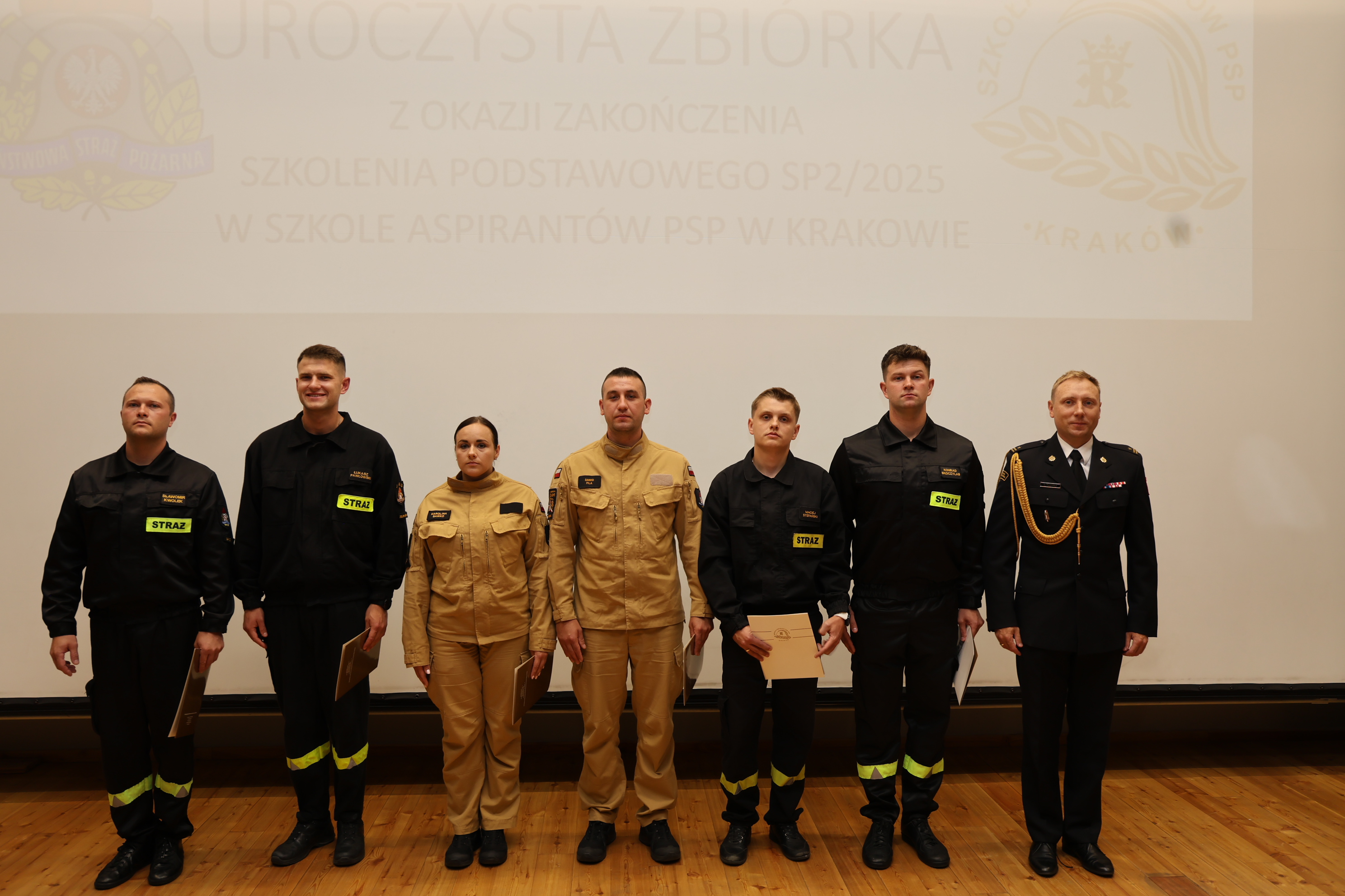 18 lipca 2025 roku, z obecnością przedstawicieli kierownictwa Szkoły i kadry dydaktyczno-wychowawczej, odbyło się uroczyste zakończenie szkolenia podstawowego w zawodzie strażak funkcjonującego w Szkole pod kryptonimem SP 2/25. W jego trakcie, od początku kwietnia br., tajniki pożarniczego rzemiosła poznawało 36 rozpoczynających swoją służbę w Państwowej Straży Pożarnej funkcjonariuszy. W tym czasie posiedli oni wiedzę i umiejętności niezbędne do wykonywania czynności ratowniczych na poziomie podstawowym. W ciągu blisko 500 godzin zajęć teoretycznych i praktycznych, zaliczeń oraz egzaminów słuchacze udowodnili, że wybór tak odpowiedzialnego zawodu, nie był dziełem przypadku. Ich zaangażowanie i dociekliwość, pomimo często niesprzyjających wysiłkowi fizycznemu warunków atmosferycznych panujących na przełomie czerwca i lipca, trwającego sezonu wakacyjnego i urlopowego, motywowała nas wszystkich do wytężonej pracy.