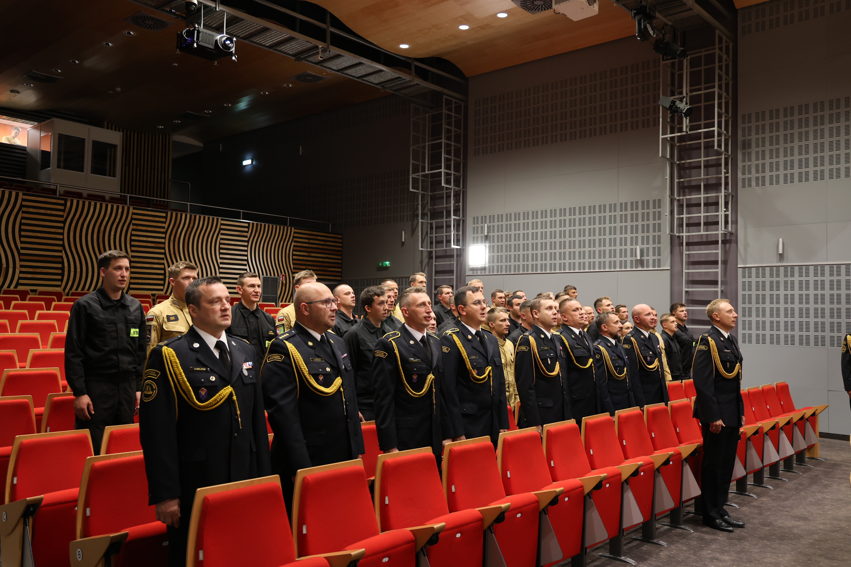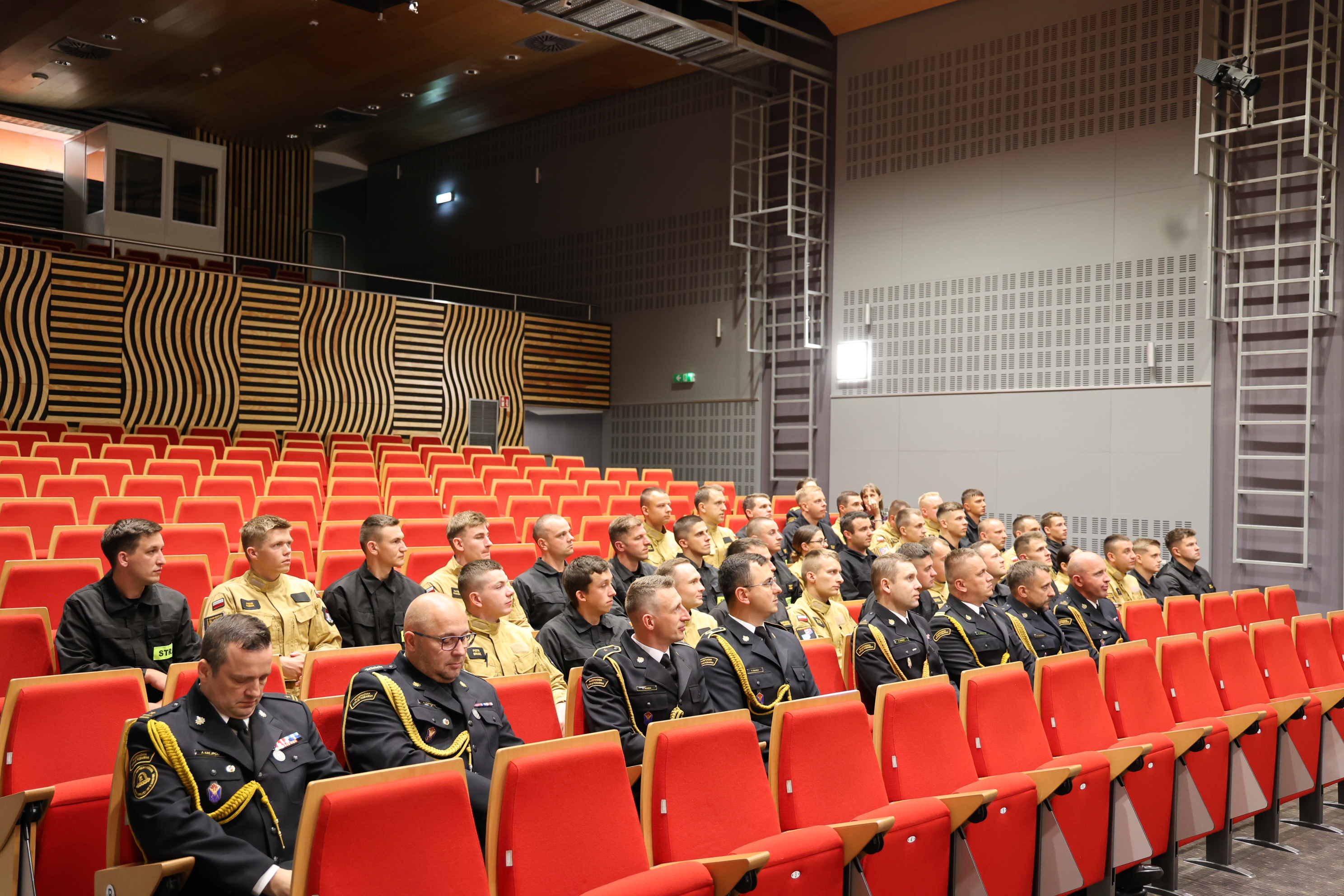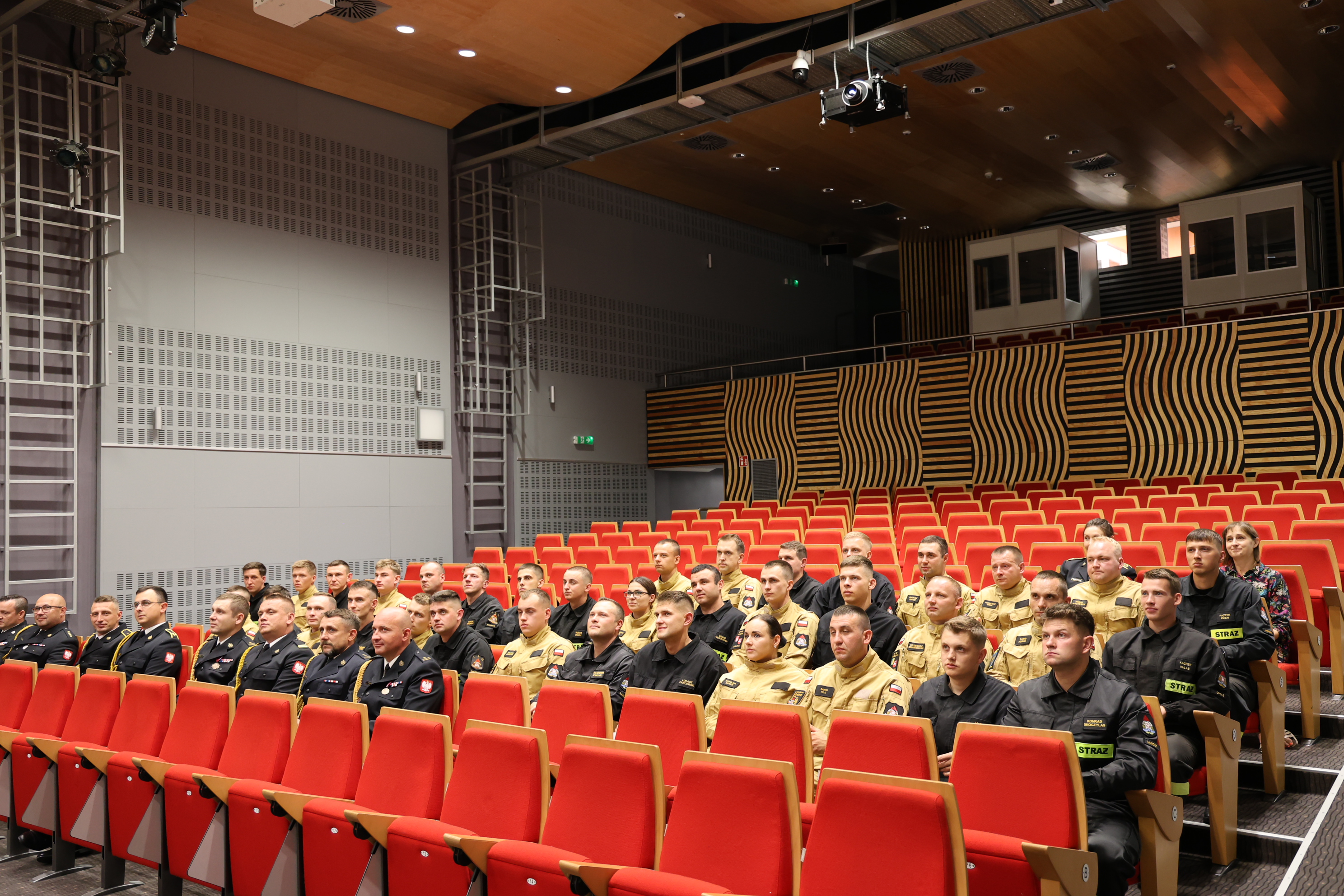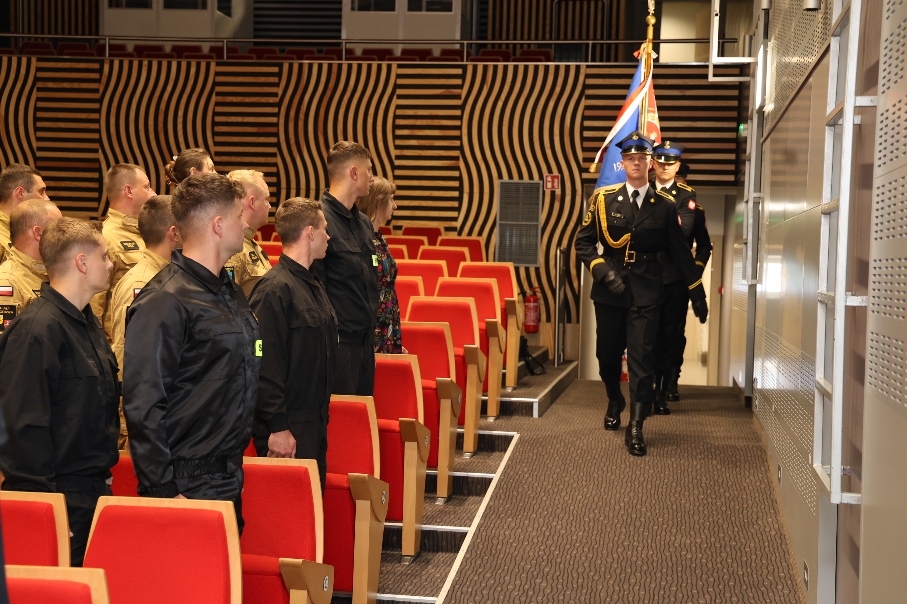 Zorganizowane przez Wydział Pododdziałów Szkolnych w naszej auli spotkanie, zgodnie z ceremoniałem pożarniczym rozpoczęte od wprowadzenia sztandaru i odśpiewania hymnu, obfitowało także w miłe słowa ze strony słuchaczy. Ich przedstawiciel, str. Łukasz Pawłowski, w czasie okolicznościowego przemówienia prócz podziękowań podzielił się także refleksjami na temat pozytywnej atmosfery, wyrozumiałości i ogromnej przychylności, z jaką spotkali się w naszych murach.