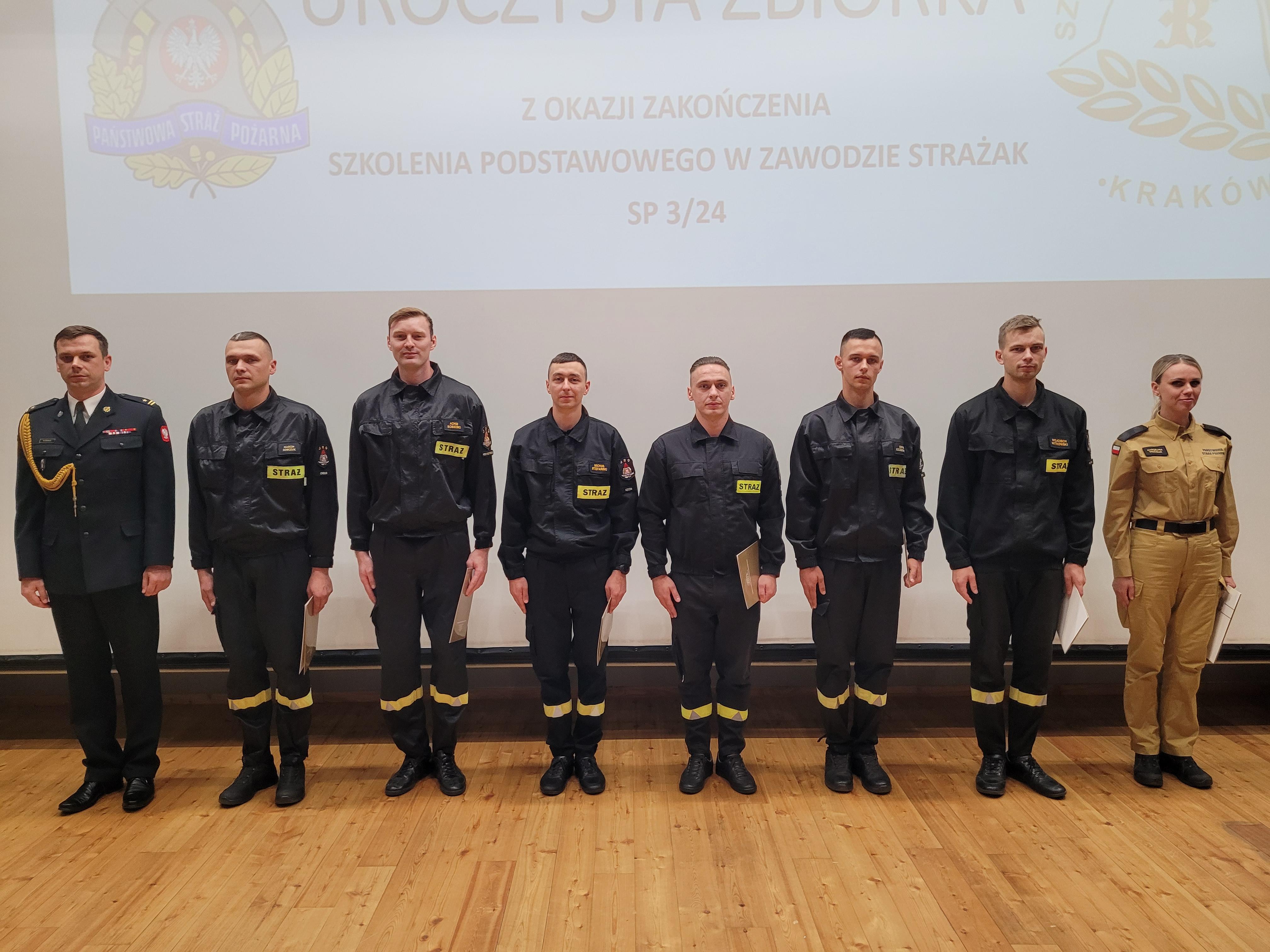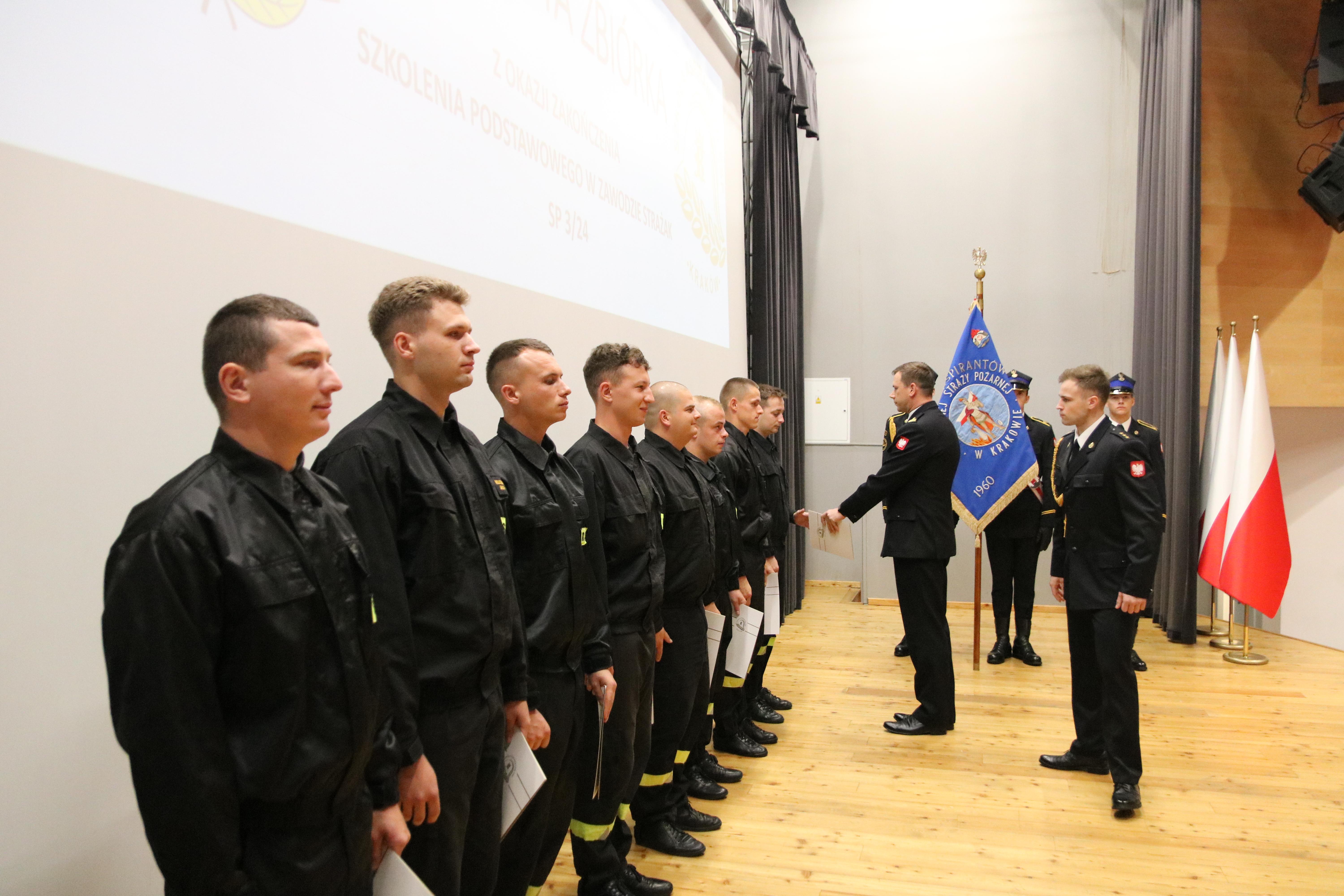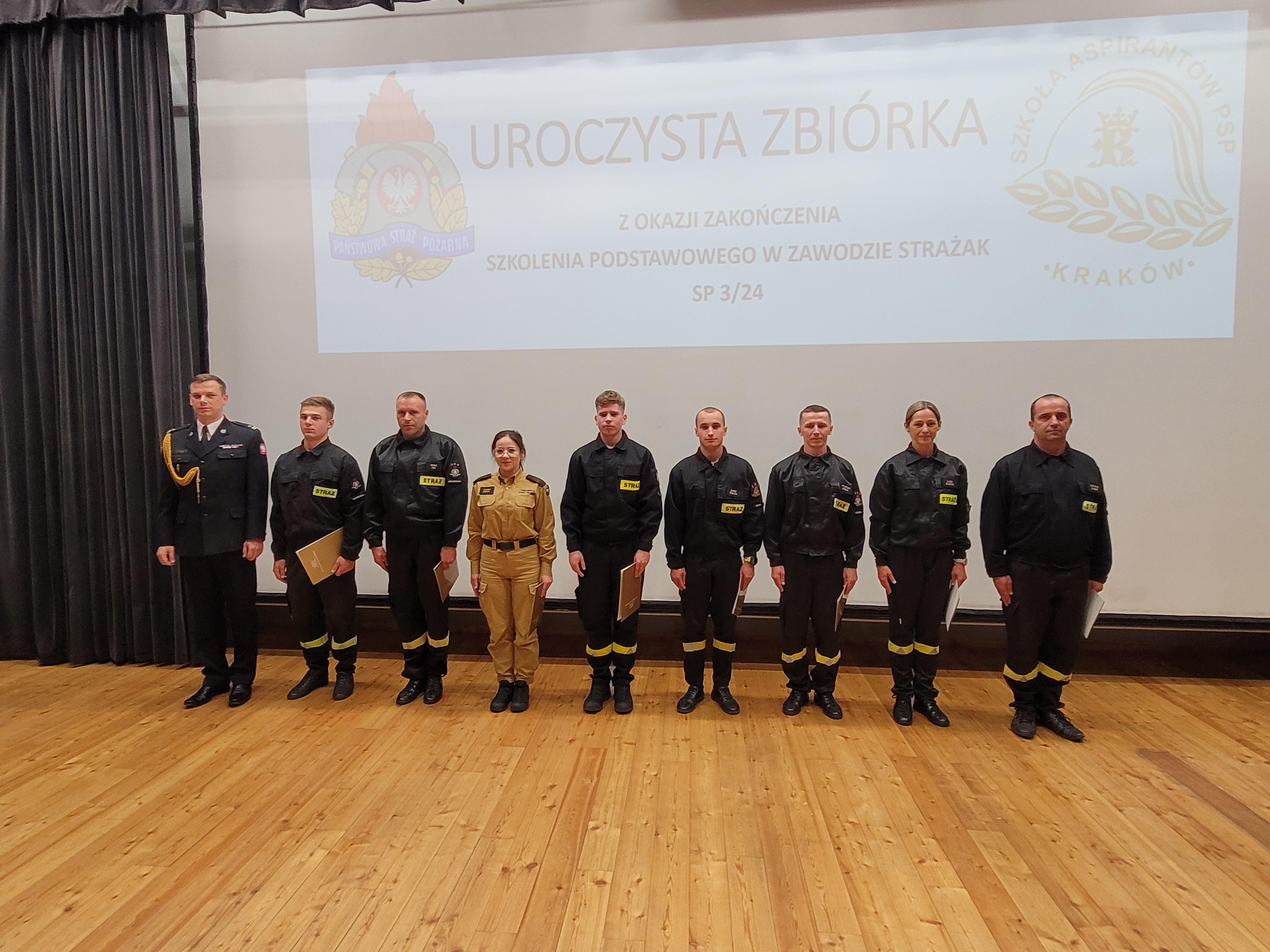 13 sierpnia 2024 roku odbyło się uroczyste zakończenie szkolenia podstawowego w zawodzie strażak funkcjonującego w Szkole pod kryptonimem SP 3/24. W jego trakcie, od początku maja br., tajniki pożarniczego rzemiosła poznawało łącznie 35 osób, w tym 26 pełniących służbę w Państwowej Straży Pożarnej i 4 zatrudnione w innych jednostkach ochrony przeciwpożarowej. W tym czasie posiadły one wiedzę i umiejętności niezbędne do wykonywania czynności ratowniczych na poziomie podstawowym. W ciągu blisko 500 godzin zajęć teoretycznych i praktycznych, zaliczeń oraz egzaminów słuchacze udowodnili, że wybór tak odpowiedzialnego zawodu, nie był dziełem przypadku. Ich zaangażowanie i dociekliwość, pomimo często niesprzyjających wysiłkowi fizycznemu warunków atmosferycznych, trwającego sezonu wakacyjnego i urlopowego, motywowała nas wszystkich do wytężonej pracy.