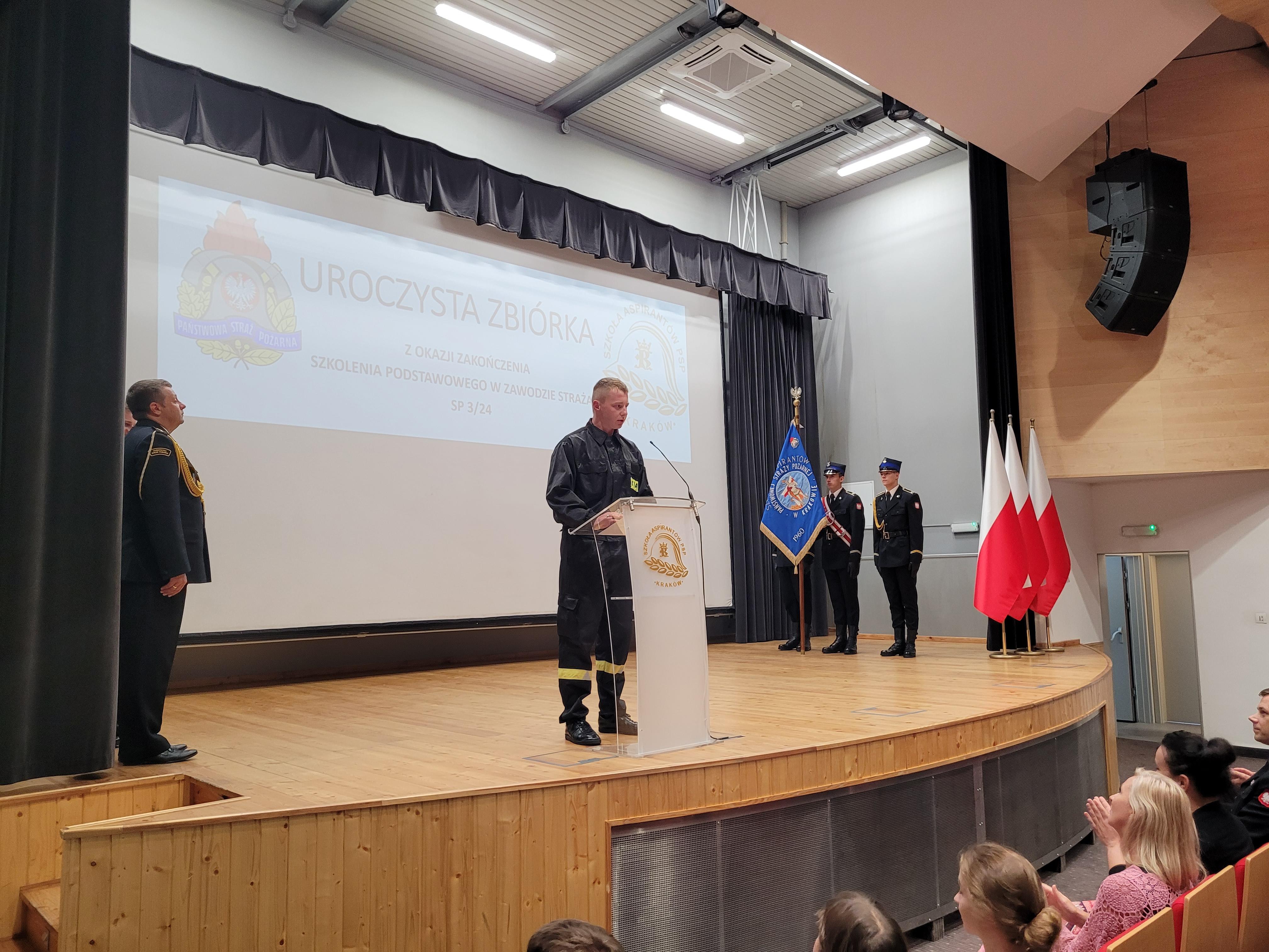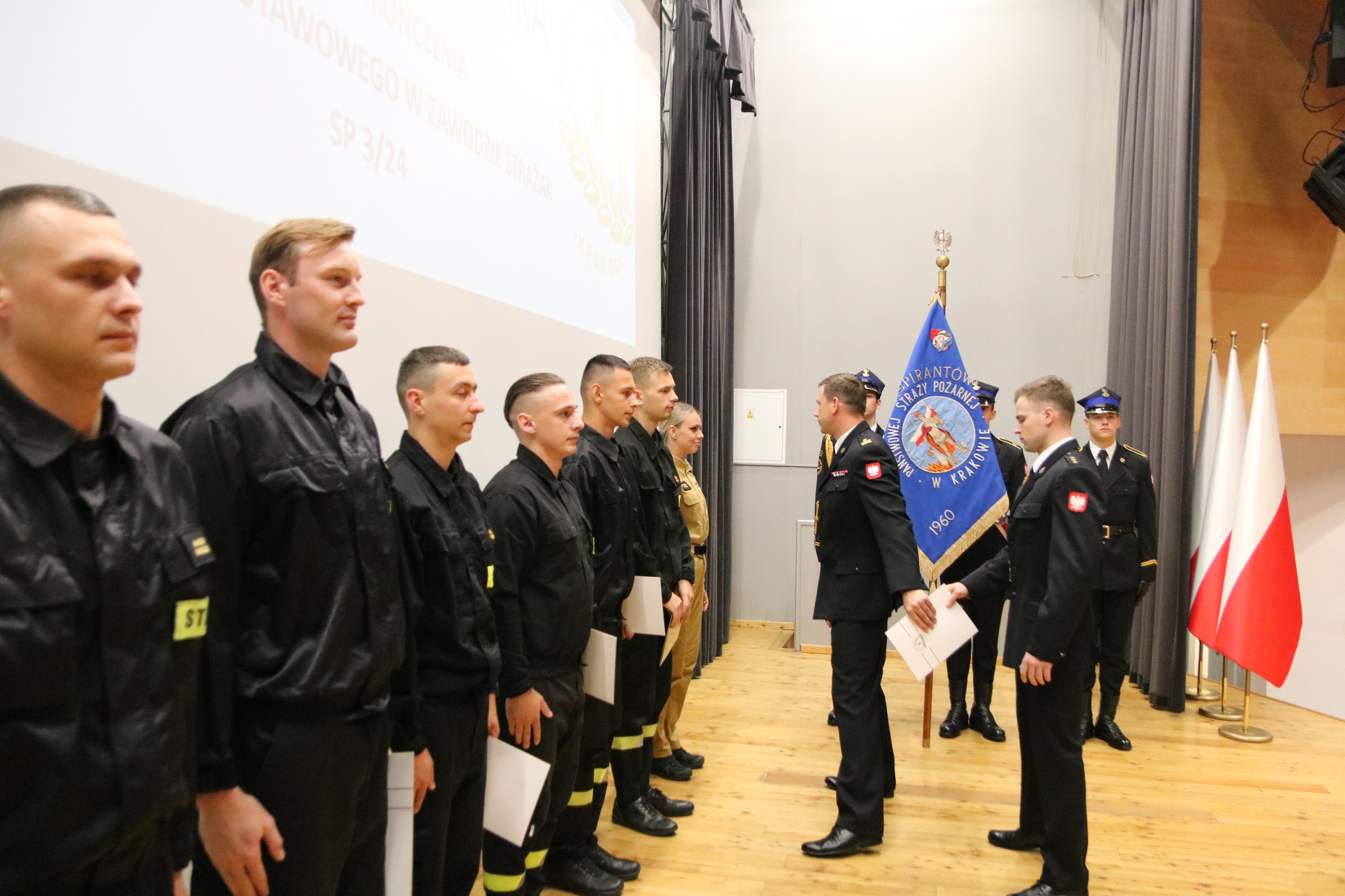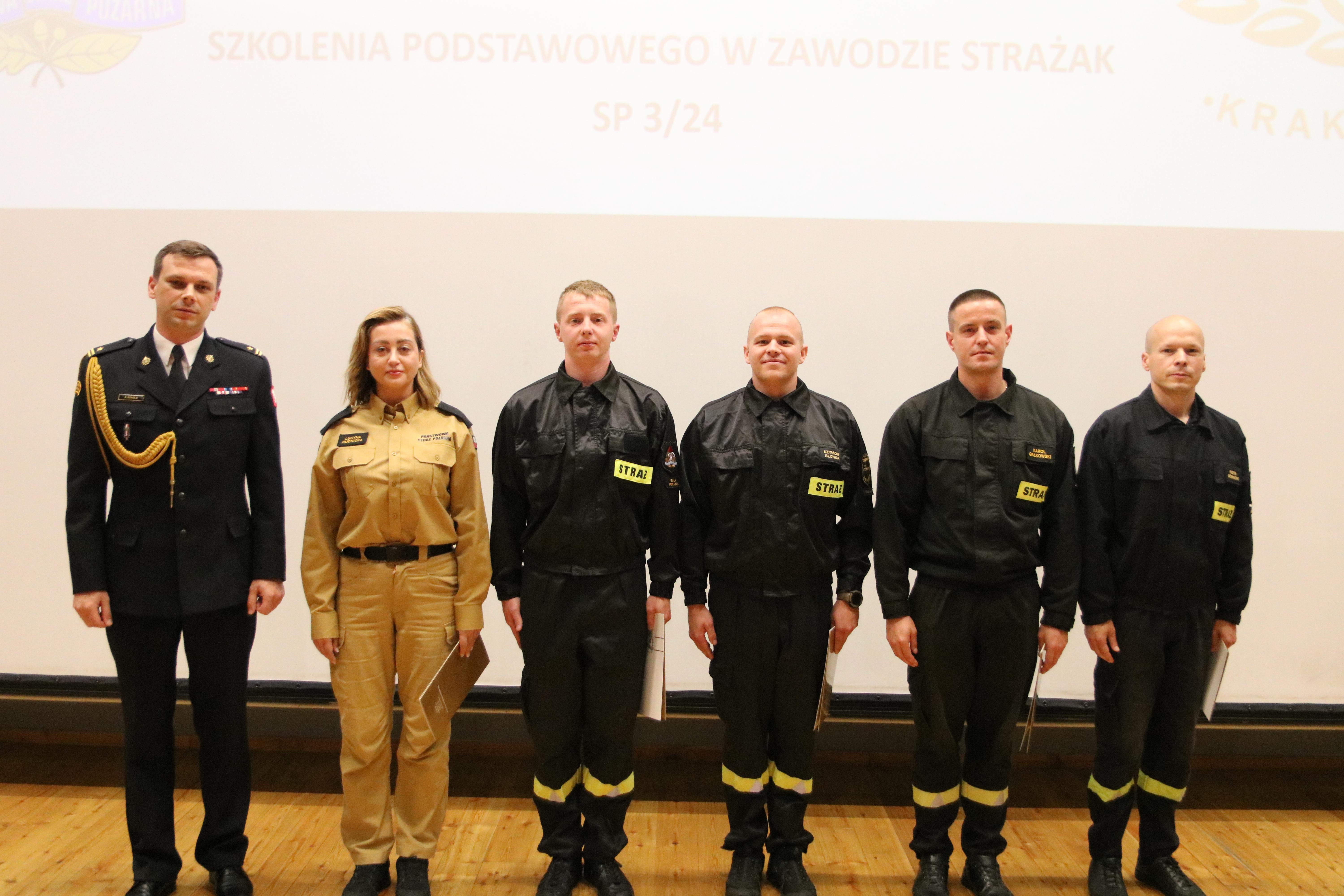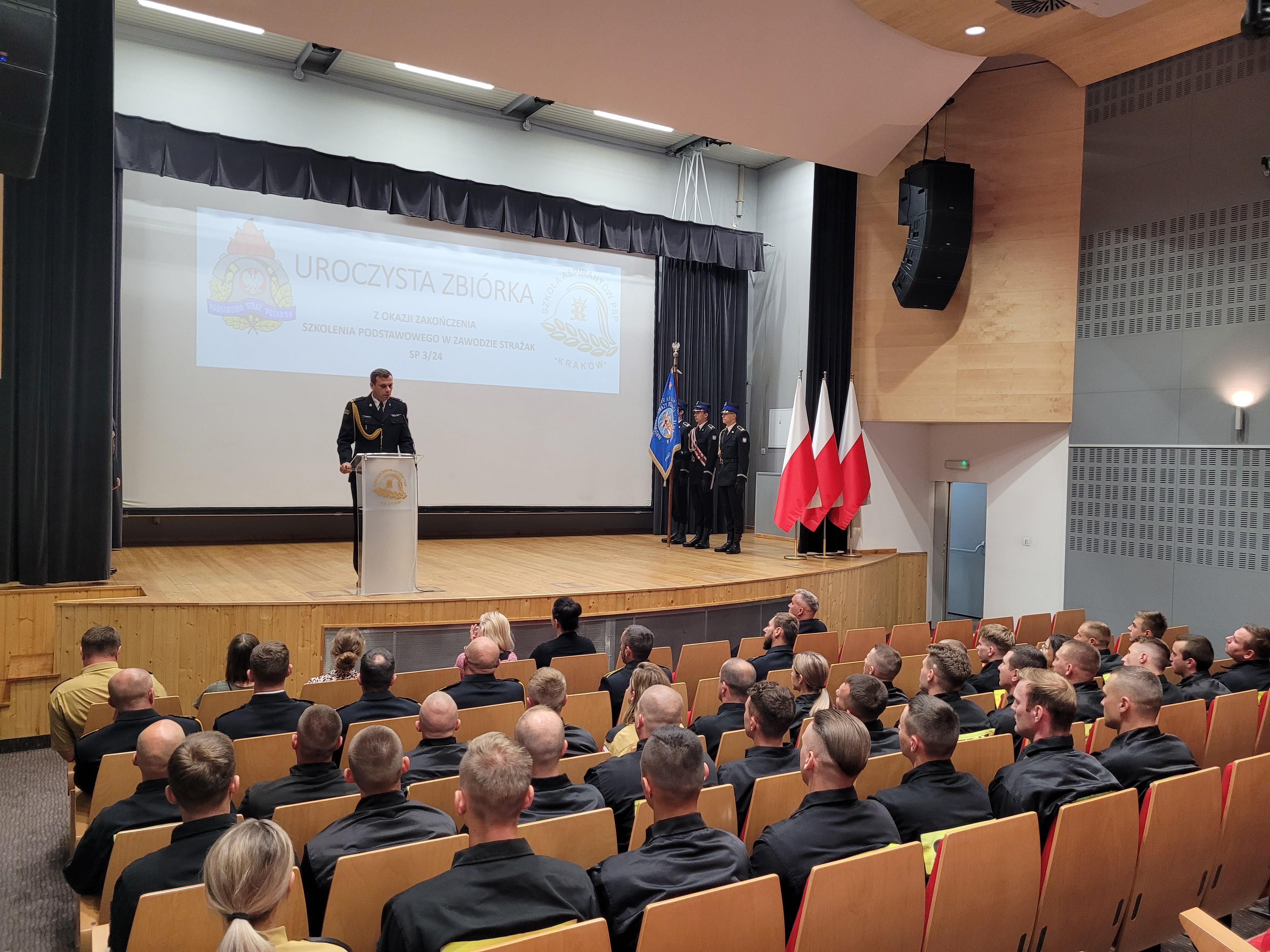 13 sierpnia 2024 roku odbyło się uroczyste zakończenie szkolenia podstawowego w zawodzie strażak funkcjonującego w Szkole pod kryptonimem SP 3/24. W jego trakcie, od początku maja br., tajniki pożarniczego rzemiosła poznawało łącznie 35 osób, w tym 26 pełniących służbę w Państwowej Straży Pożarnej i 4 zatrudnione w innych jednostkach ochrony przeciwpożarowej. W tym czasie posiadły one wiedzę i umiejętności niezbędne do wykonywania czynności ratowniczych na poziomie podstawowym. W ciągu blisko 500 godzin zajęć teoretycznych i praktycznych, zaliczeń oraz egzaminów słuchacze udowodnili, że wybór tak odpowiedzialnego zawodu, nie był dziełem przypadku. Ich zaangażowanie i dociekliwość, pomimo często niesprzyjających wysiłkowi fizycznemu warunków atmosferycznych, trwającego sezonu wakacyjnego i urlopowego, motywowała nas wszystkich do wytężonej pracy.