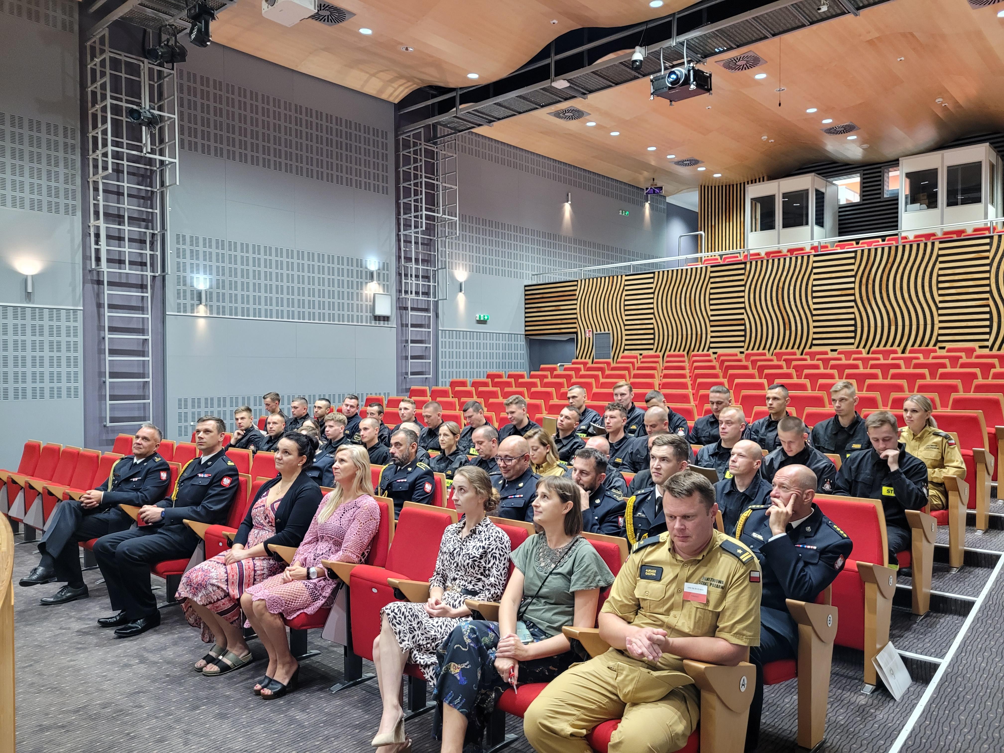 Zorganizowane przez Wydział Pododdziałów Szkolnych w naszej auli spotkanie, zgodnie z ceremoniałem pożarniczym rozpoczęte od wprowadzenia sztandaru i odśpiewania hymnu, obfitowało w miłe słowa, podziękowania i życzenia. Istotnym jest, że padły one zarówno ze strony kierownictwa Szkoły, jak i przedstawiciela uczestników – słuchacza Pawła Szałuchy.