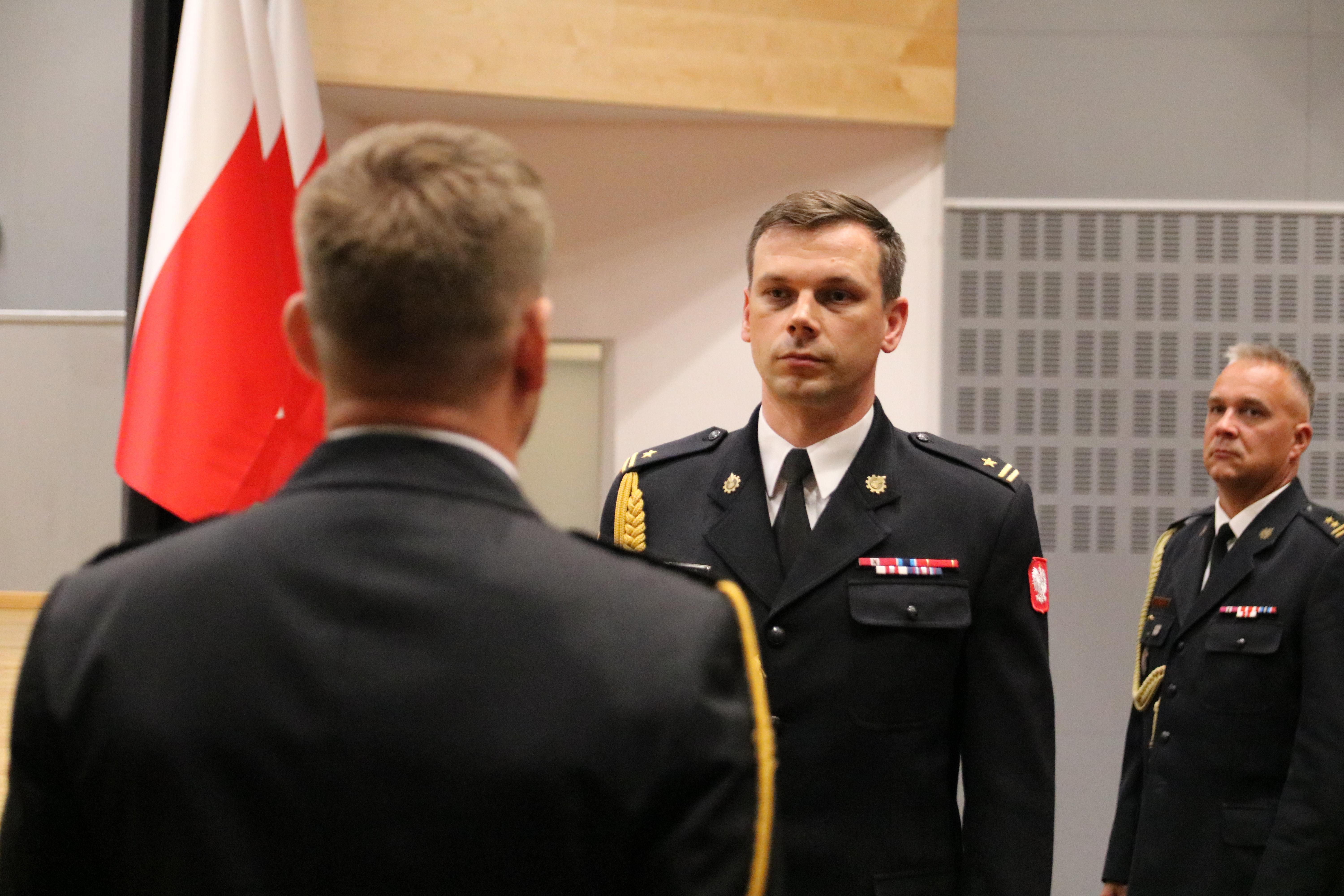 Dowódcą uroczystej zbiórki był st.kpt. Michał Kuczera, poprowadził ją st.kpt. Bartłomiej Łącki, a we wręczaniu dokumentów pomagał kpt. Mateusz Niepsuj.