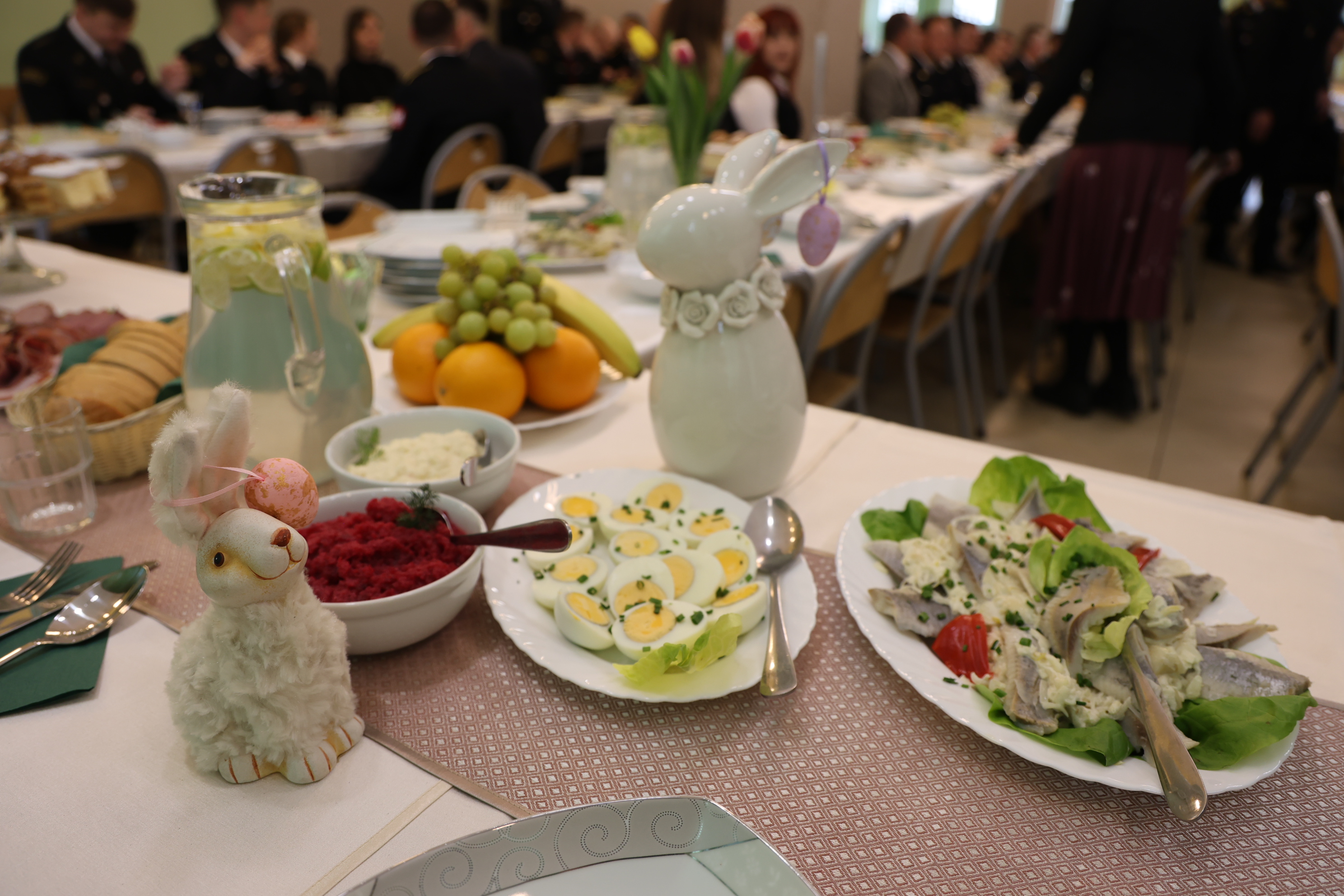 Spotkanie było okazją do wspólnego zatrzymania się w codziennym biegu służby i pracy. Uroczystość uświetniła obecność księży kapelanów, którzy dokonali poświęcenia pokarmów oraz odmówili modlitwę w intencji całej społeczności szkolnej.