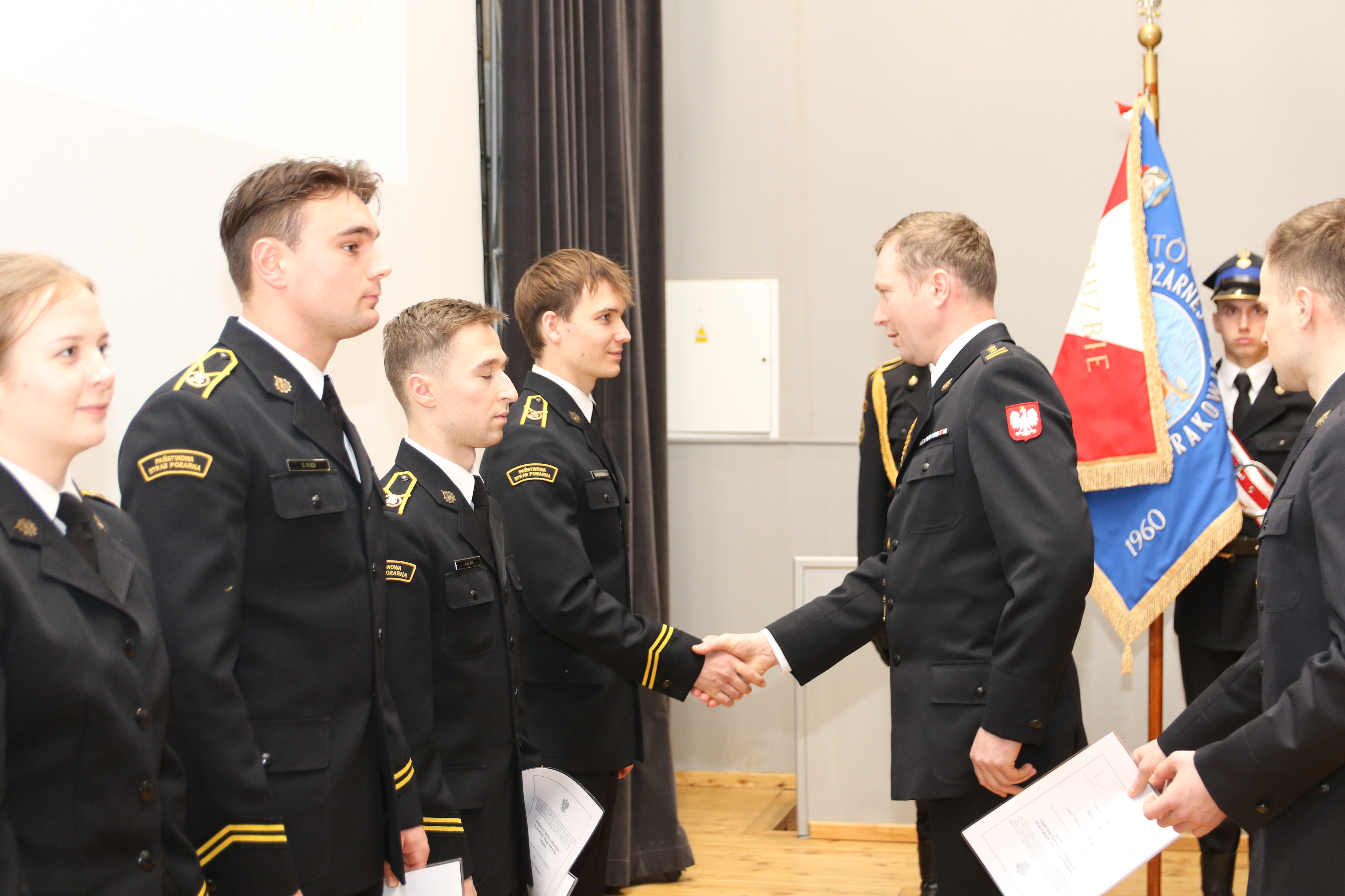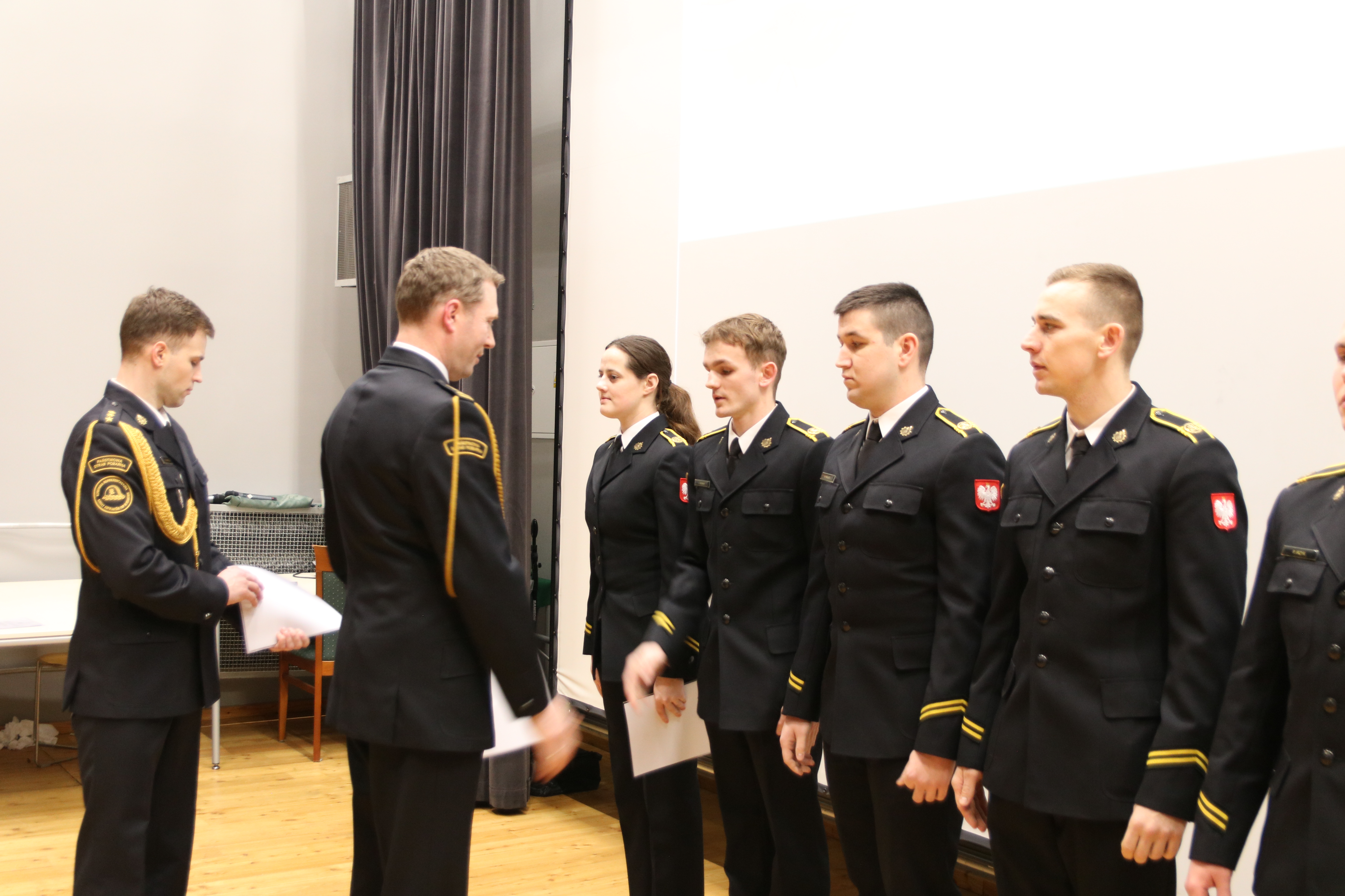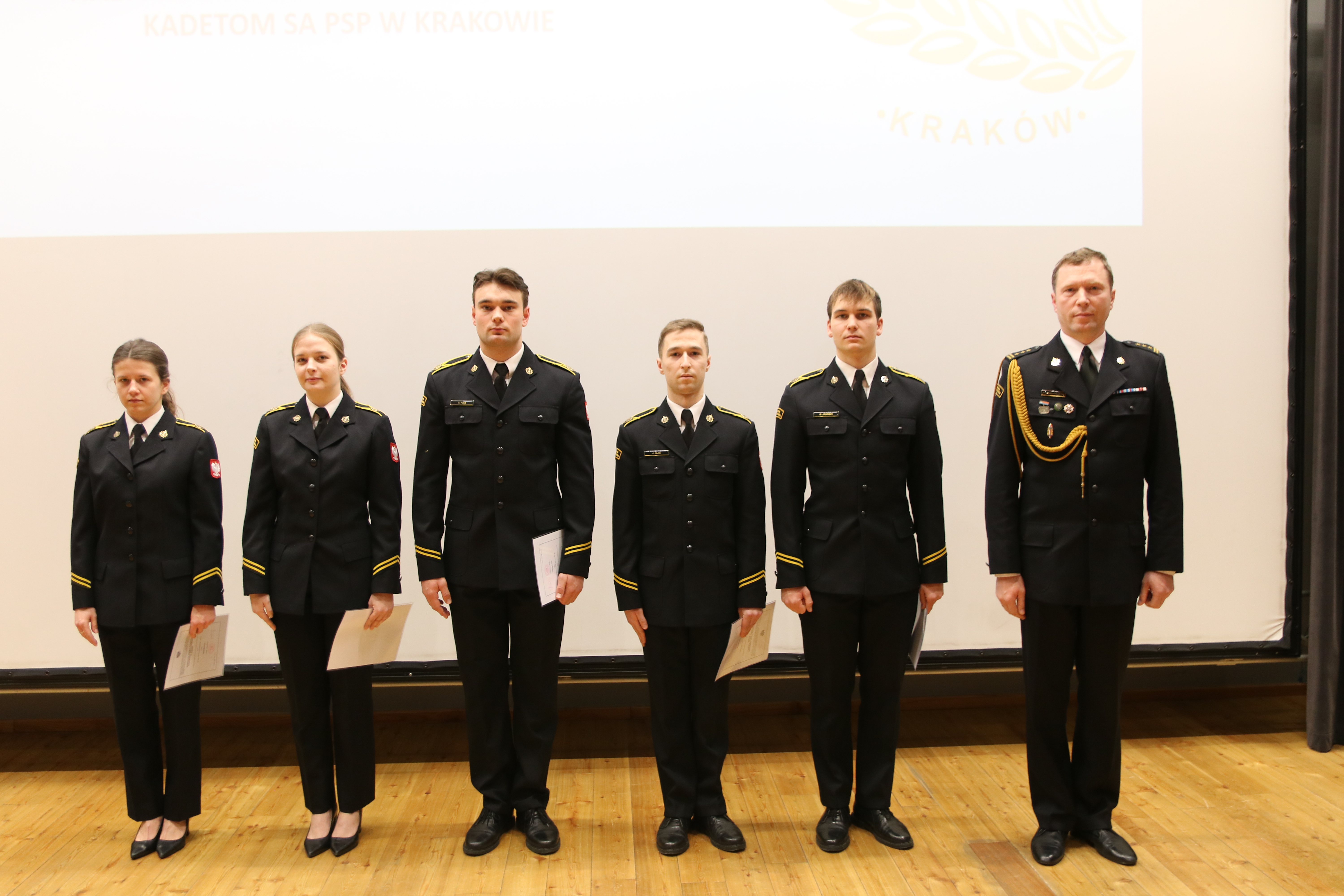 08 lutego 2024 roku w szkolnej auli odbyła się uroczysta zbiórka z okazji wręczenia aktów nadania wyższych stopni służbowych kadetkom i kadetom I oraz II kompanii XXXII i XXXIII turnusu kształcenia dziennego Szkoły Aspirantów Państwowej Straży Pożarnej w Krakowie. Za osiągnięcie bardzo dobrych wyników w nauce i wzorowe pełnienie służby w czasie I i III semestru wyróżnione zostały 23 osobowy.