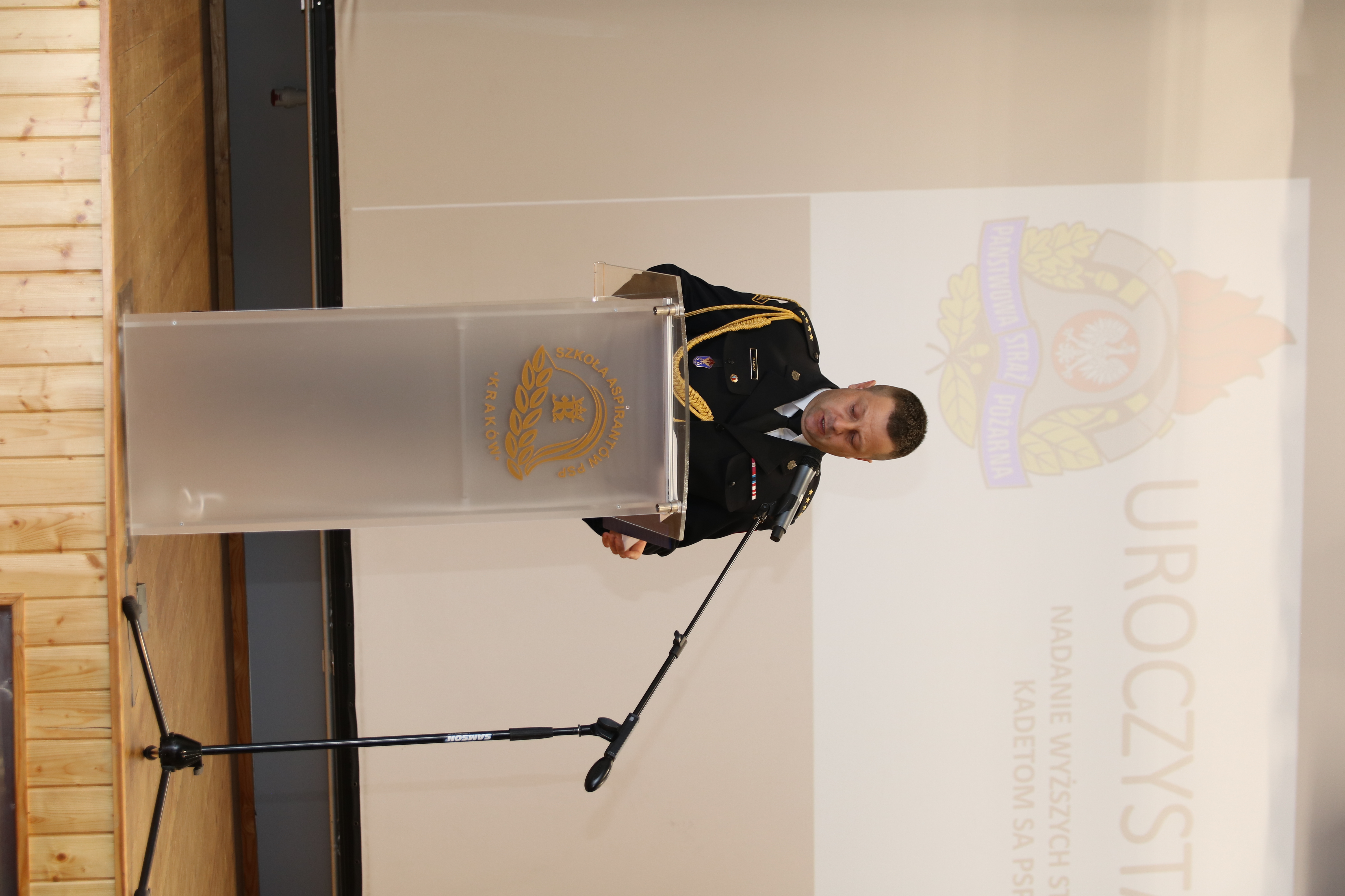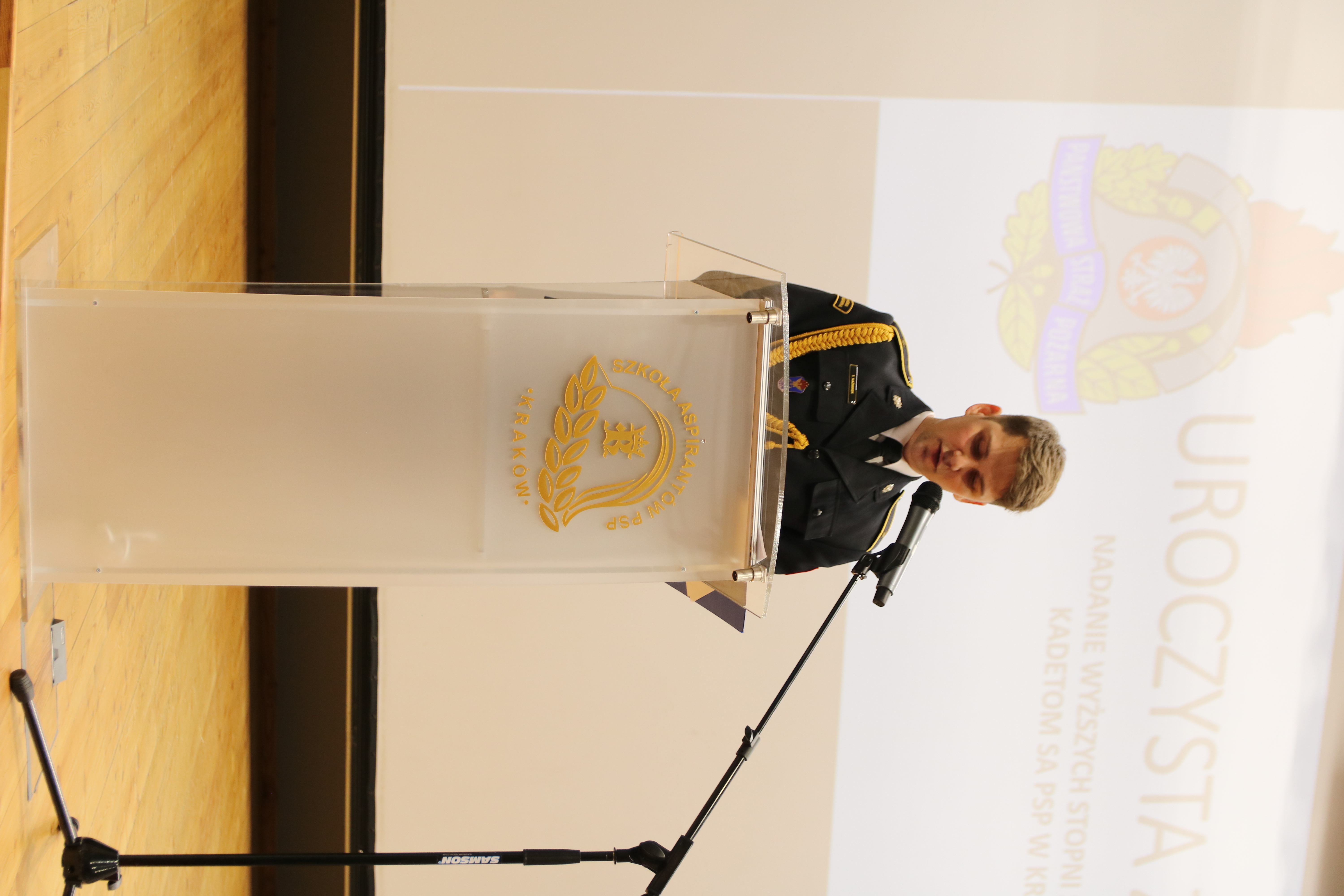 Uroczystość, w której prócz słuchaczy uczestniczyli także przedstawiciele kadry kierowniczej i dydaktycznej, rozpoczęła się od złożenia meldunku p.o. Komendanta Szkoły Aspirantów PSP w Krakowie st. bryg. Piotrowi Gancarczykowi, wprowadzenia sztandaru i odśpiewania hymnu. Po okolicznościowym przemówieniu Komendanta, odczytaniu rozkazów personalnych, akty awansu na wyższe stopnie służbowe odebrali: