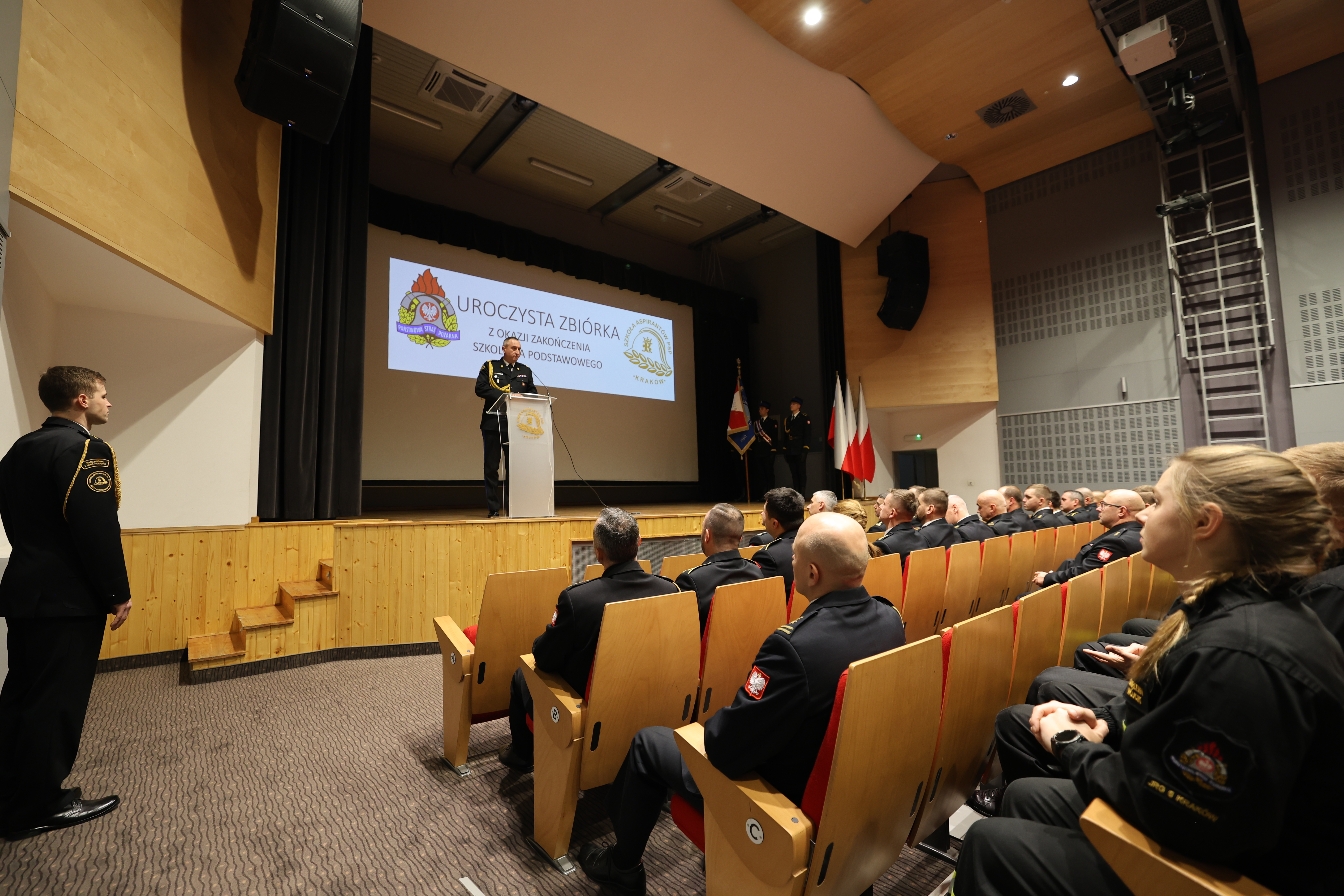 Uroczystość rozpoczęła się od powitania przez komendanta Szkoły, nadbryg. Piotra Filipka. W swoim wystąpieniu podkreślił wagę odpowiedniego przygotowania przyszłych strażaków i znaczenie szkoleń w kształtowaniu ich kompetencji. Zaznaczył, że ukończenie kursu to dopiero początek zawodowej drogi, która wymaga nieustannego doskonalenia i zaangażowania. Gratulując uczestnikom wyraził dumę z ich postępów i podziękował za wysiłek, który włożyli w zdobywanie wiedzy i umiejętności.