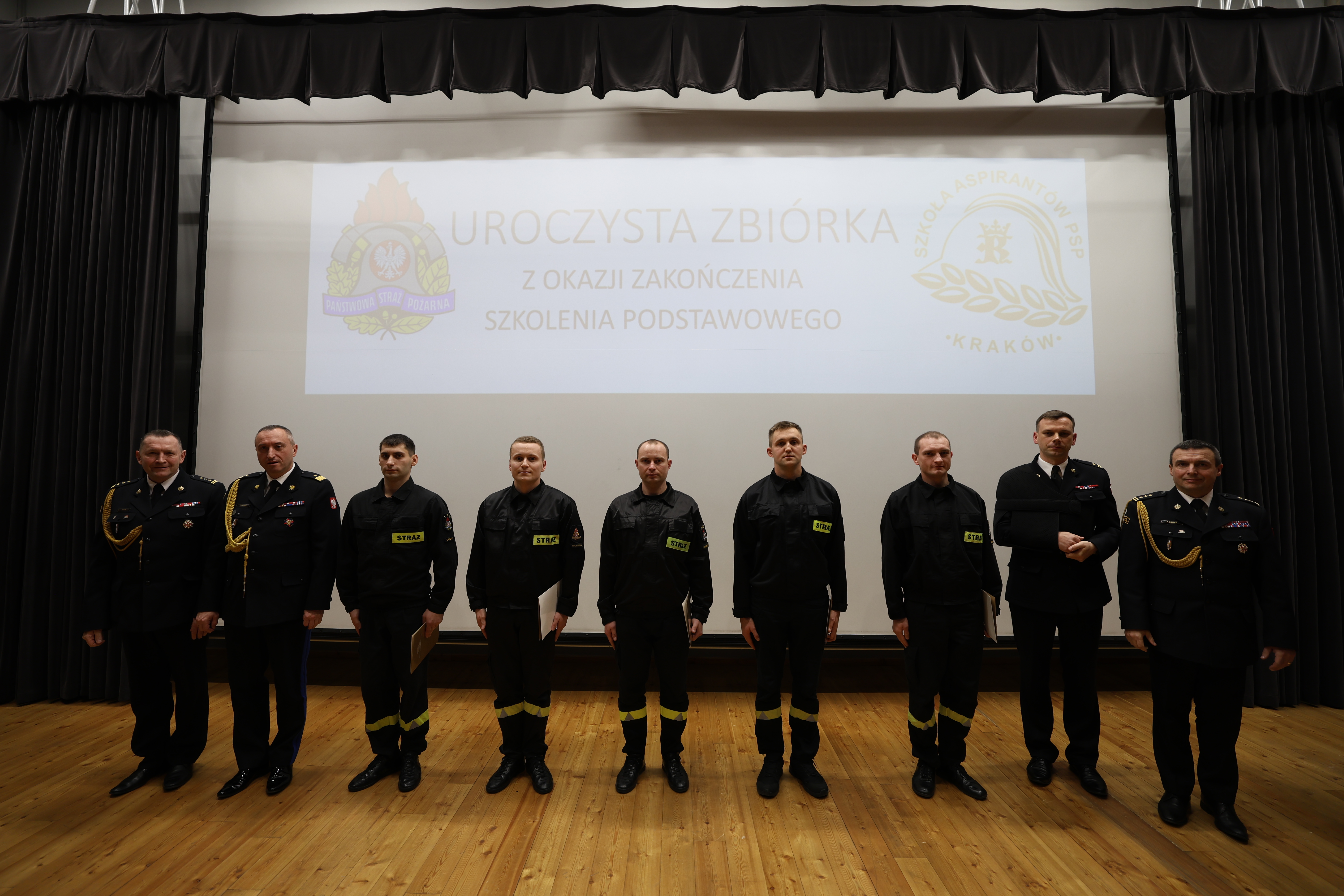 19 grudnia 2024 roku w Szkole Aspirantów Państwowej Straży Pożarnej w Krakowie odbyła się uroczystość zakończenia szkoleń podstawowych dla słuchaczy kursów SP 5/24 oraz SP 6/24. W ceremonii wzięli udział zaproszeni goście, w tym przedstawiciele Komendy Wojewódzkiej PSP oraz naczelnicy ośrodków szkolenia w Krakowie i Nisku. Był to szczególny dzień, który symbolizował zwieńczenie ciężkiej pracy słuchaczy i ich przygotowanie do pełnienia odpowiedzialnej służby w Państwowej Straży Pożarnej i innych jednostkach ochrony przeciwpożarowej.