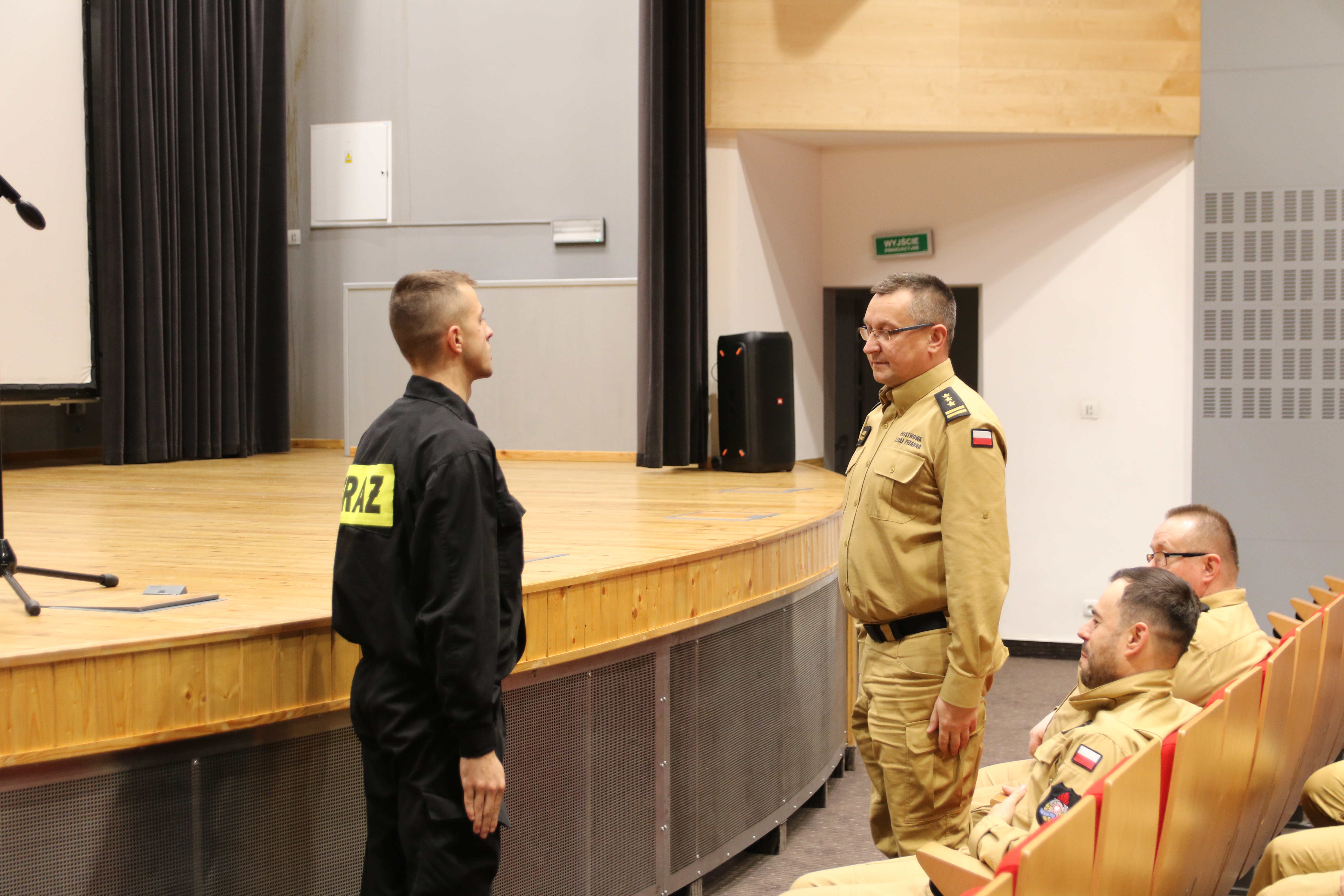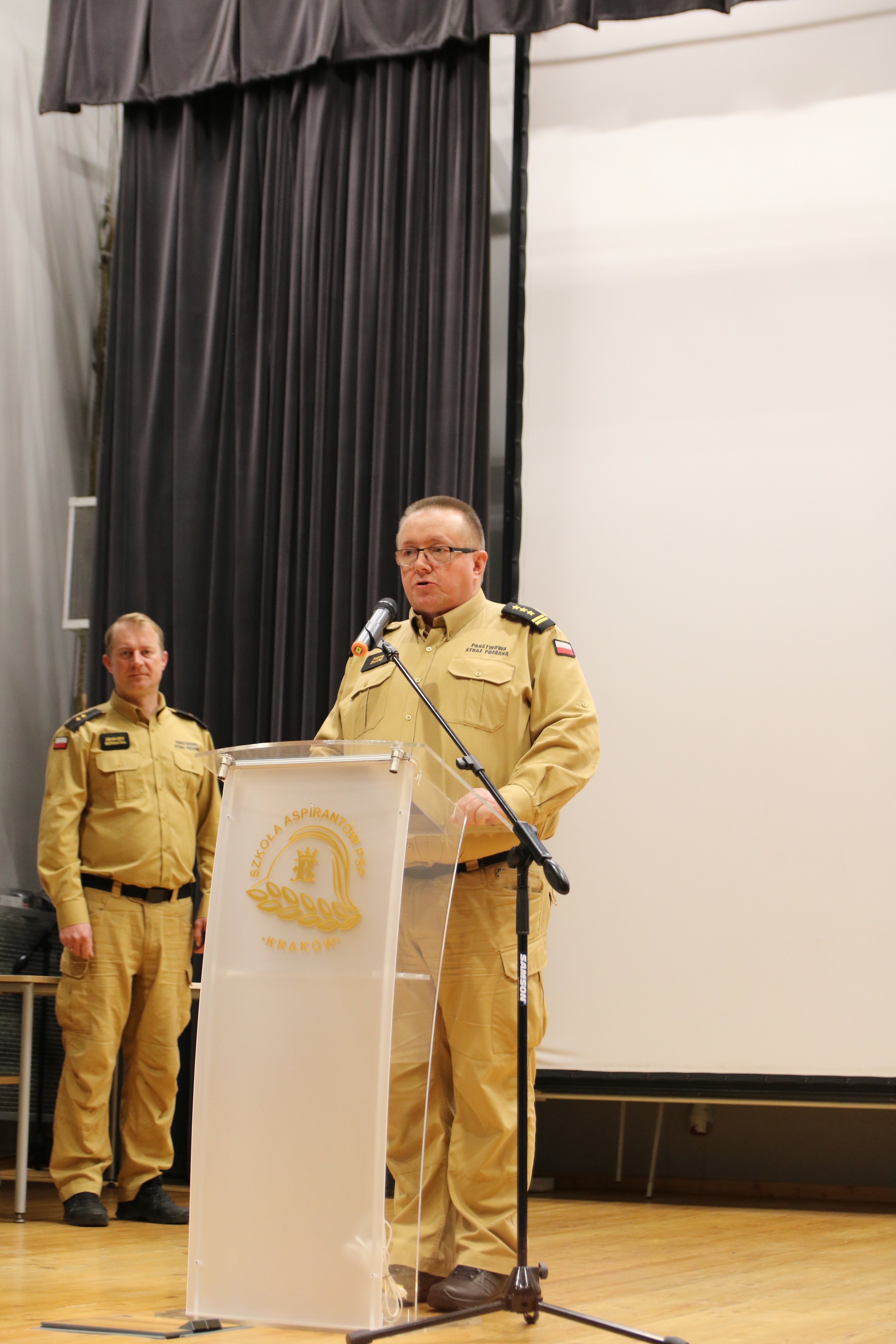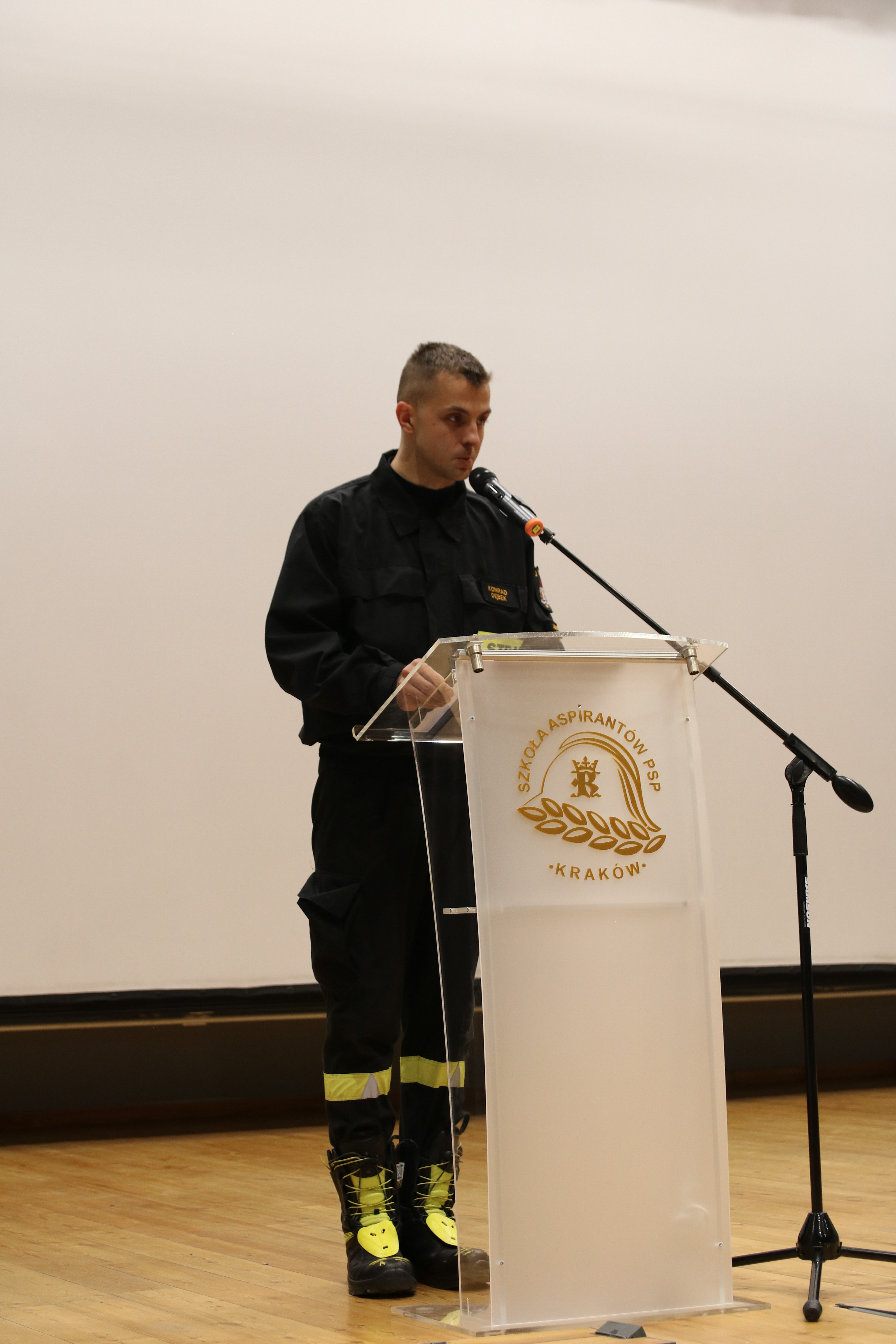 21 grudnia 2023 roku, w auli Szkoły Aspirantów PSP w Krakowie, odbyła się zbiórka z okazji zakończenia szkolenia podstawowego w zawodzenie strażak nr SP 4/23, które zrealizowane zostało na bazie Ośrodka Szkolenia KW PSP w Lublinie. W wieńczącym 70 dni szkoleniowych spotkaniu, tuż po zakończeniu przeprowadzonych na poligonie egzaminów, uczestniczyli przedstawiciele kierownictwa Szkoły, kadry dydaktycznej oraz funkcjonariusze WOSz.