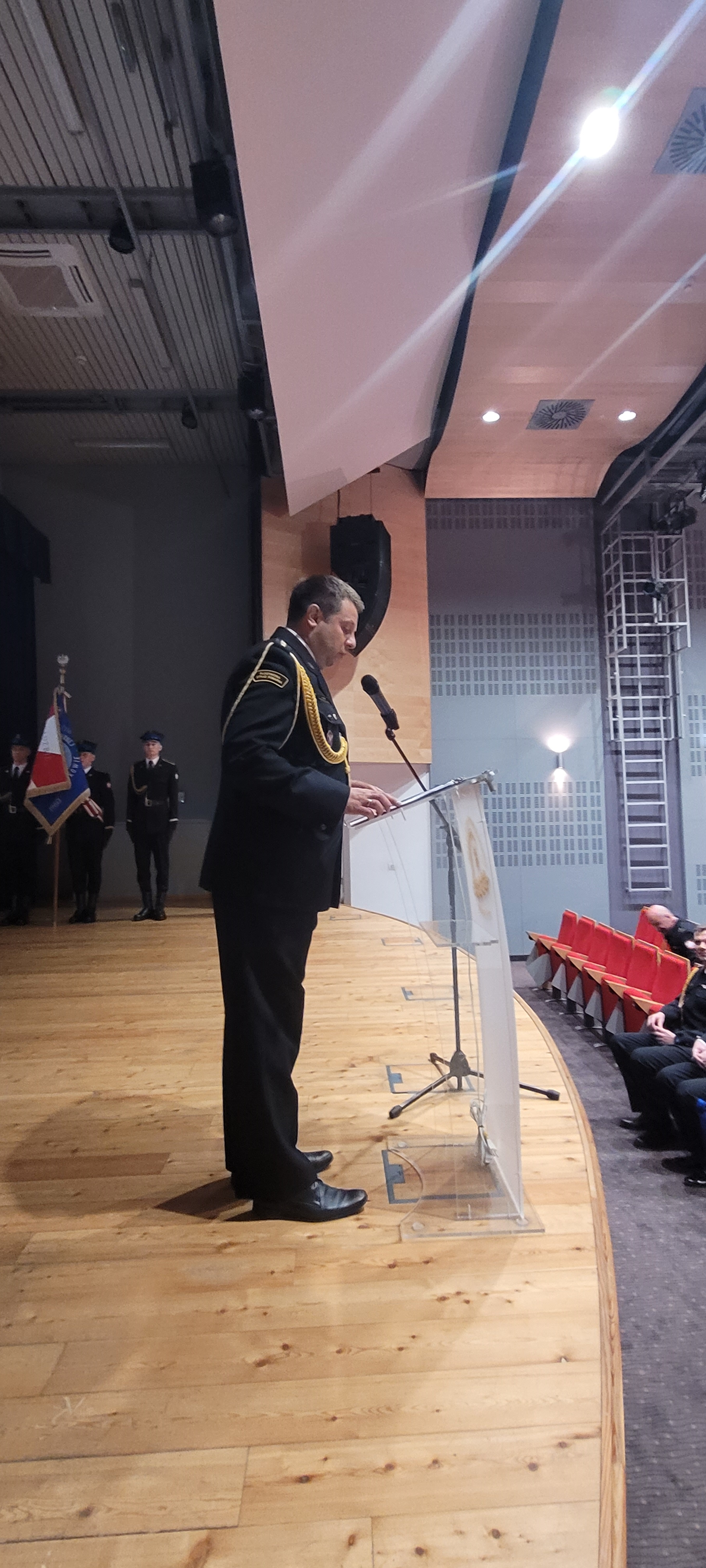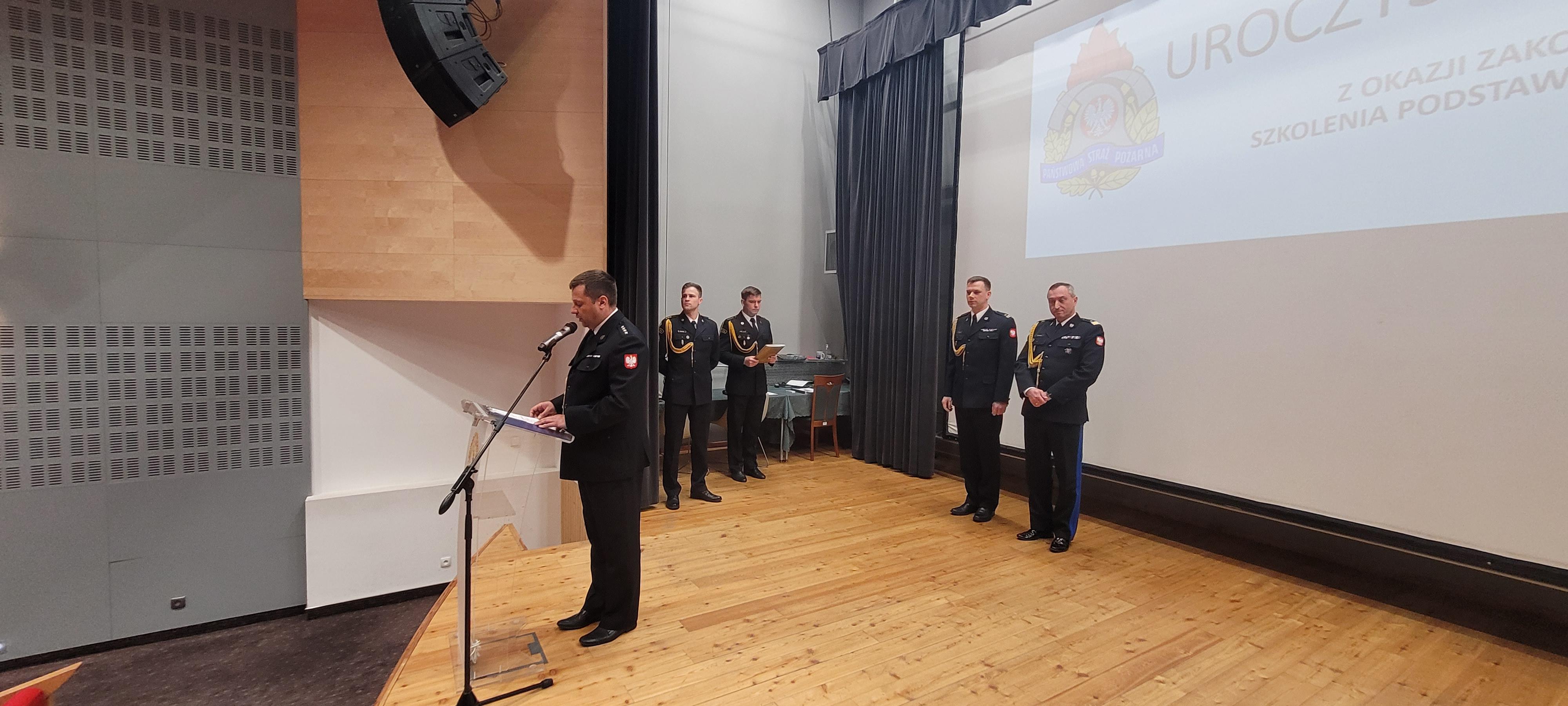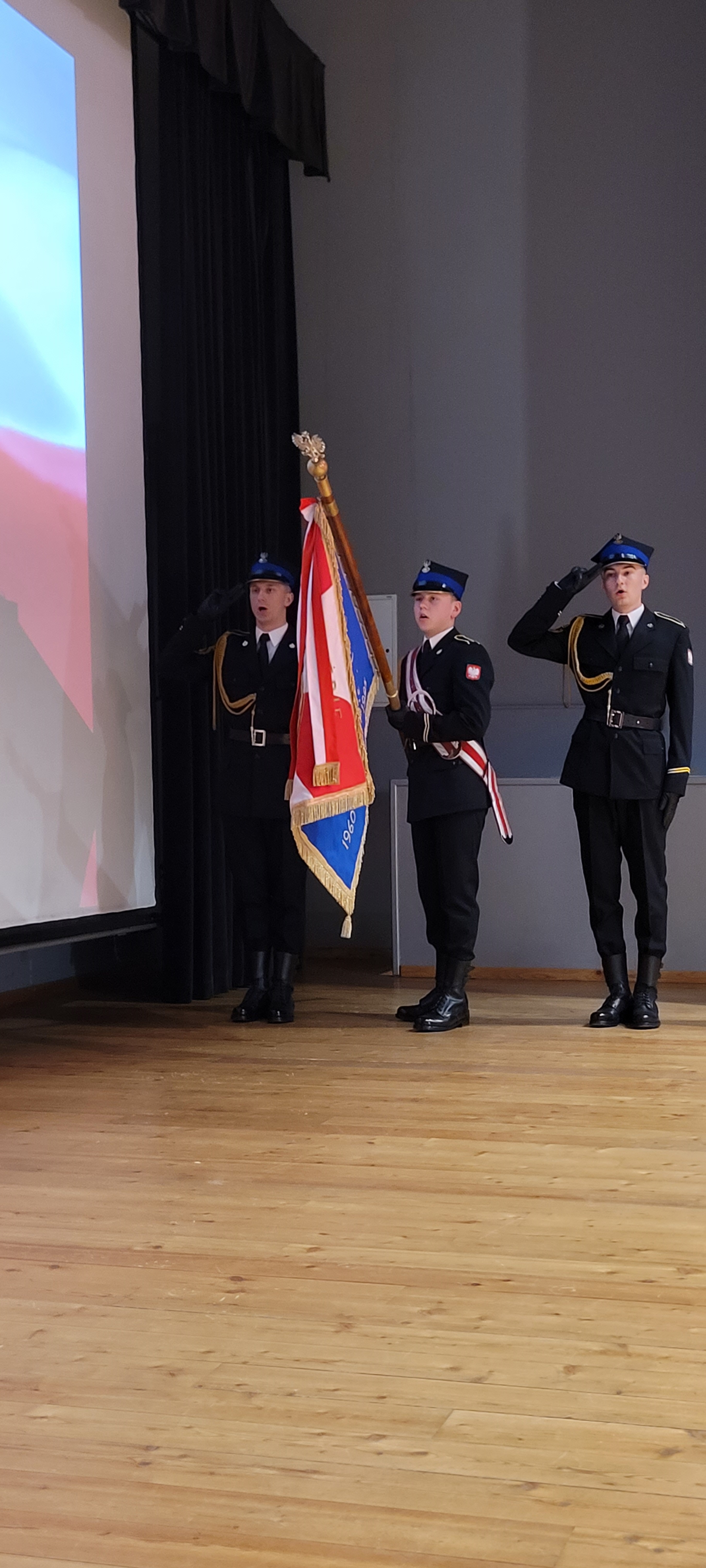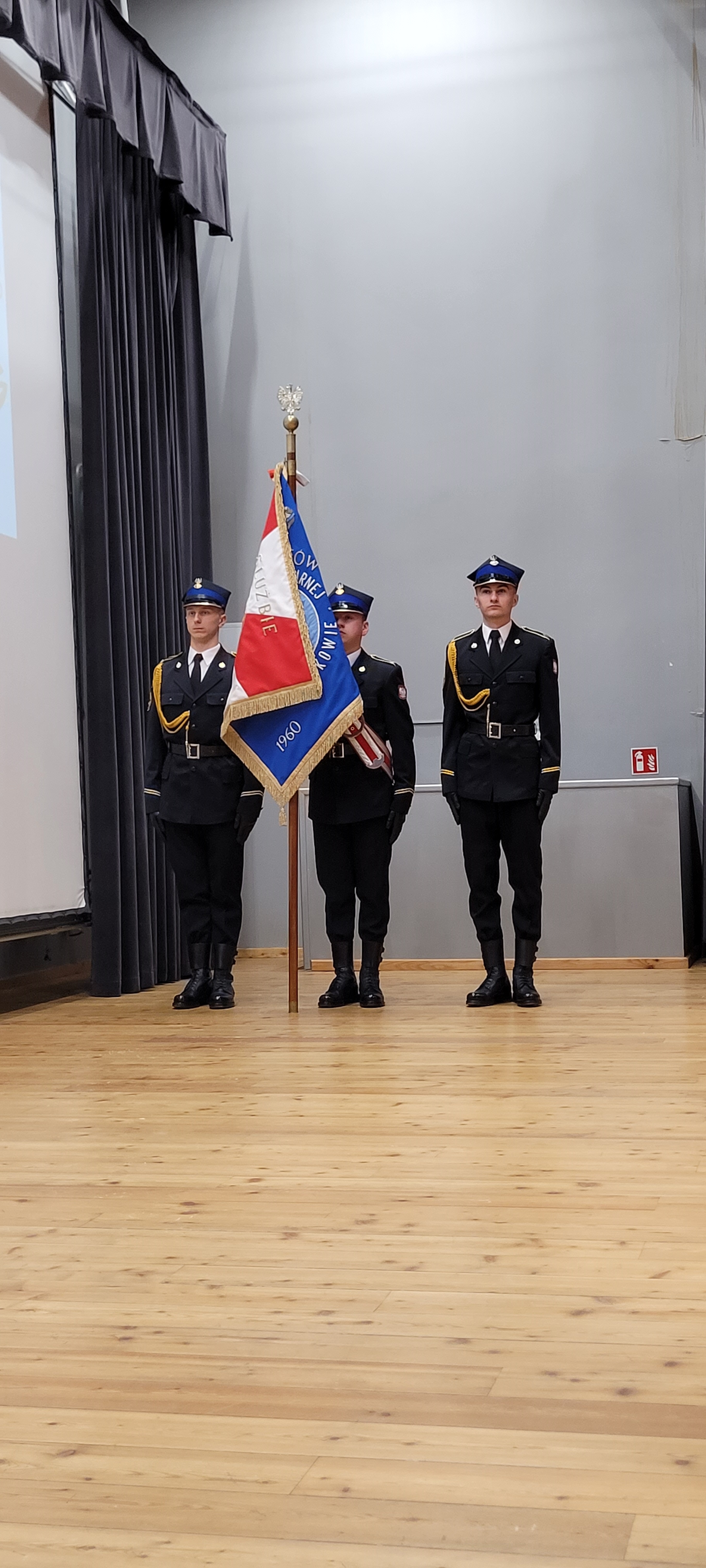 Od złożenia meldunku, wprowadzania pocztu sztandarowego oraz odegrania i odśpiewania hymnu państwowego rozpoczęła się uroczysta zbiórka z okazji zakończania pierwszej w tym roku edycji szkolenia podstawowego w zawodzie strażak.